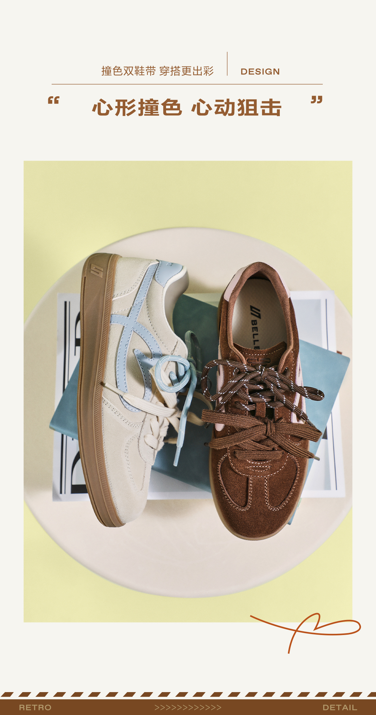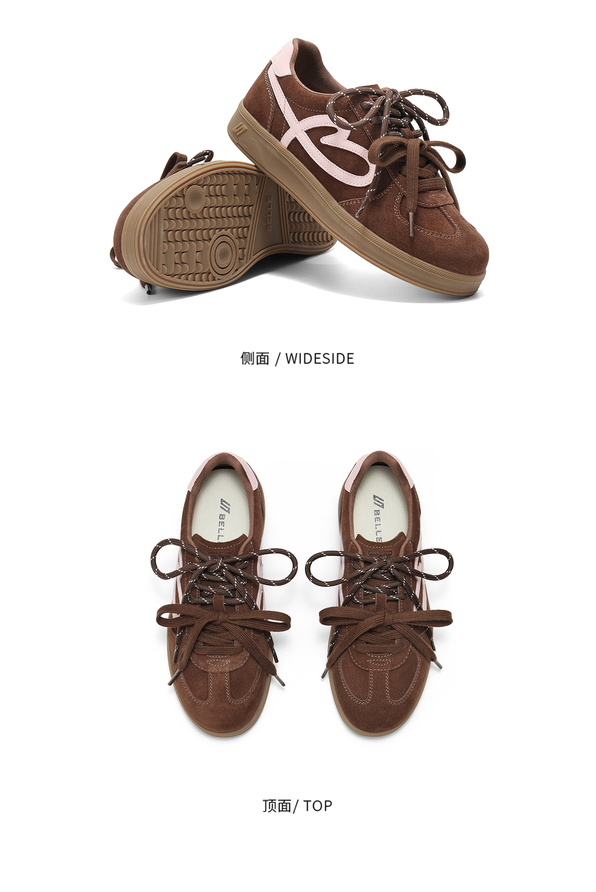Belle Women's Shoes Flowy Cookie-Style Double Shoelaces Thick-Soled German Training Shoes New Height-Increasing Casual Sneakers B2873Cm5