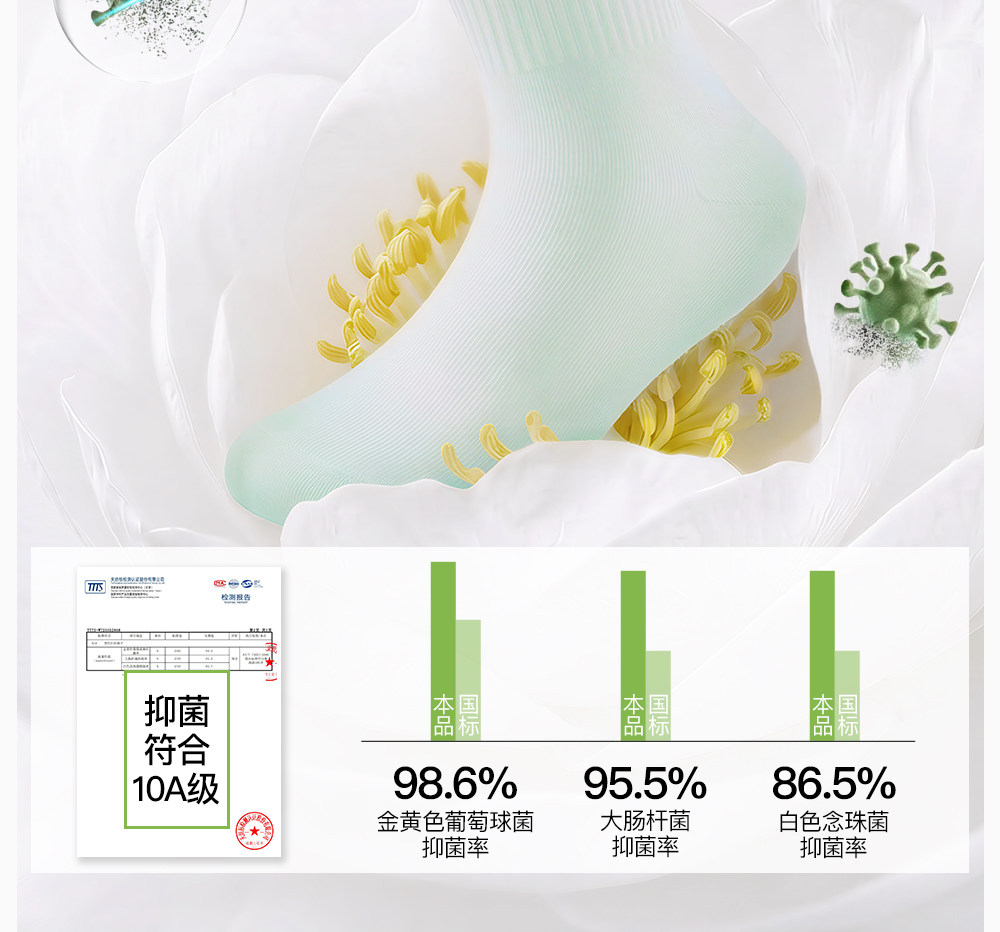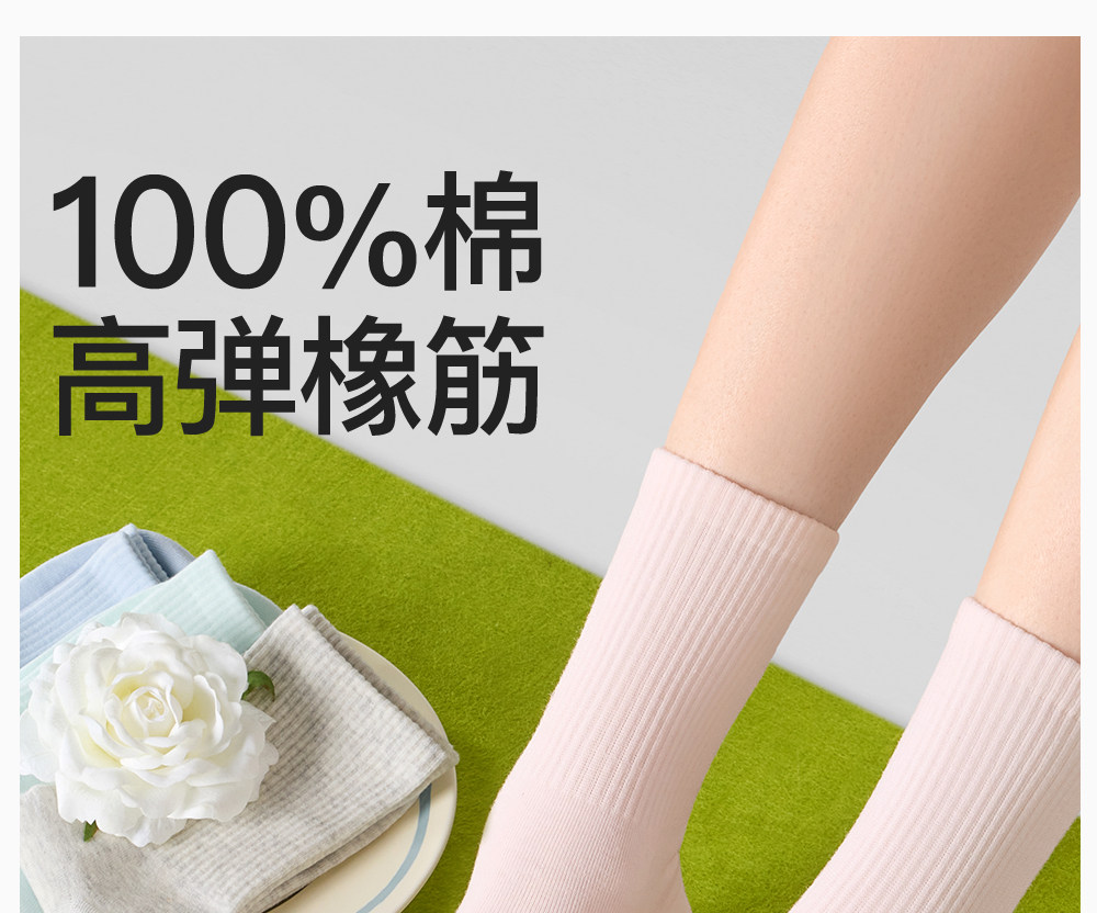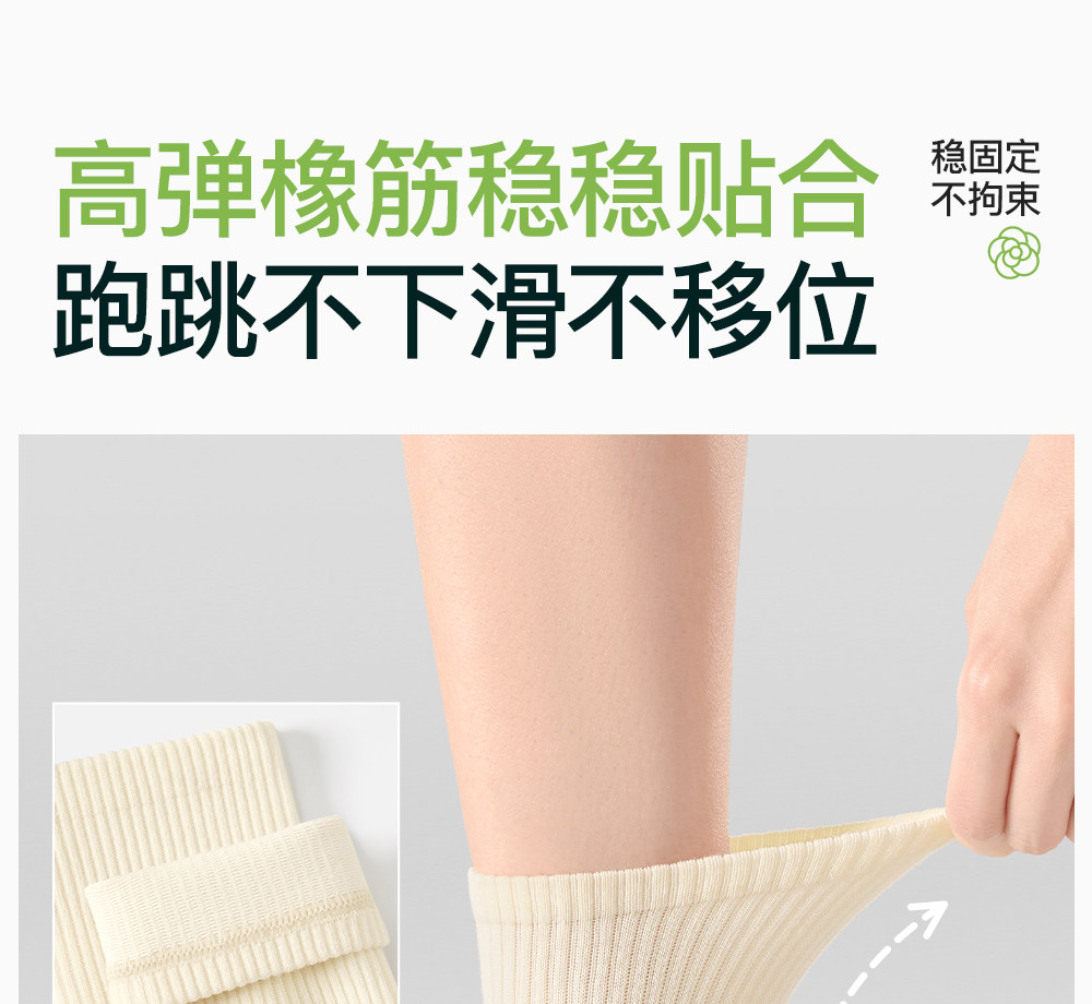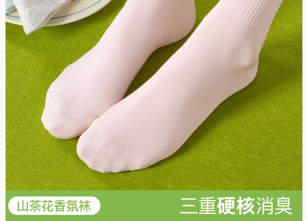 Camellia Deodorizing Socks for Women, Spring Style, Pure Cotton, Mid-Calf, Seamless, Odor-Resistant, 10A Antibacterial, All-Cotton Maternity Socks