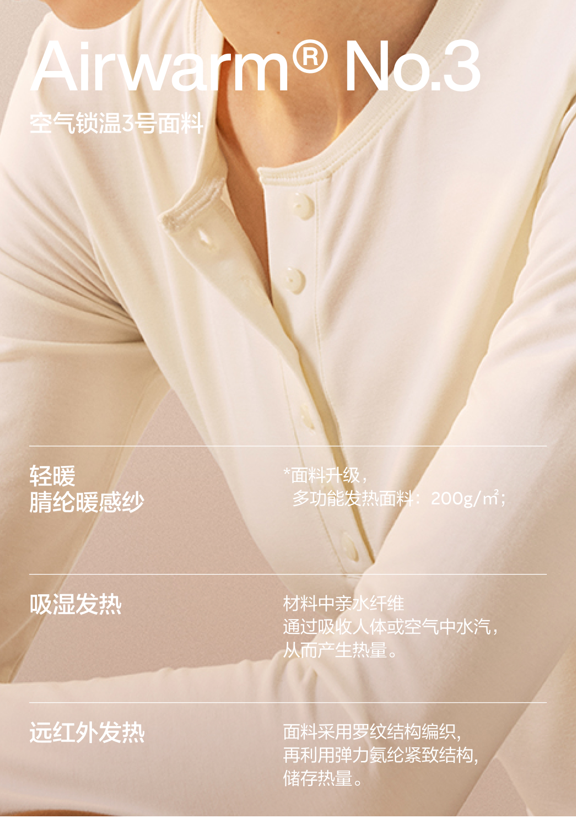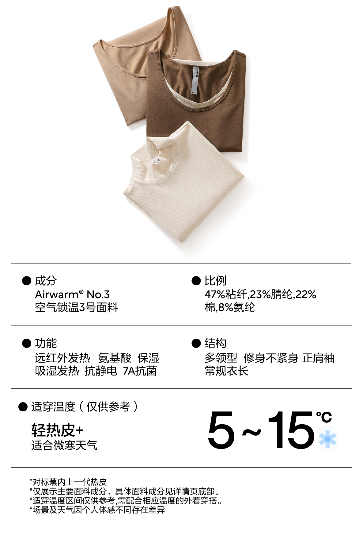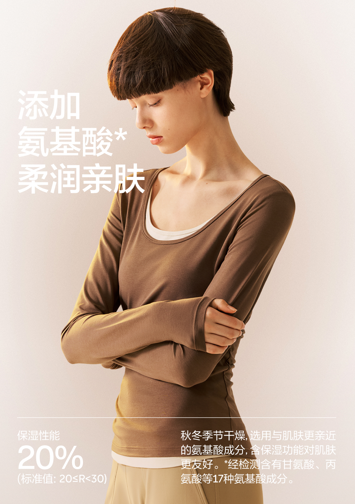 [Same Style as Liu Hao Cun] Jiao Nei Thermal Skin 301+ Women's Amino Acid Henley Collar Base Layer T-Shirt Warm Autumn Shirt