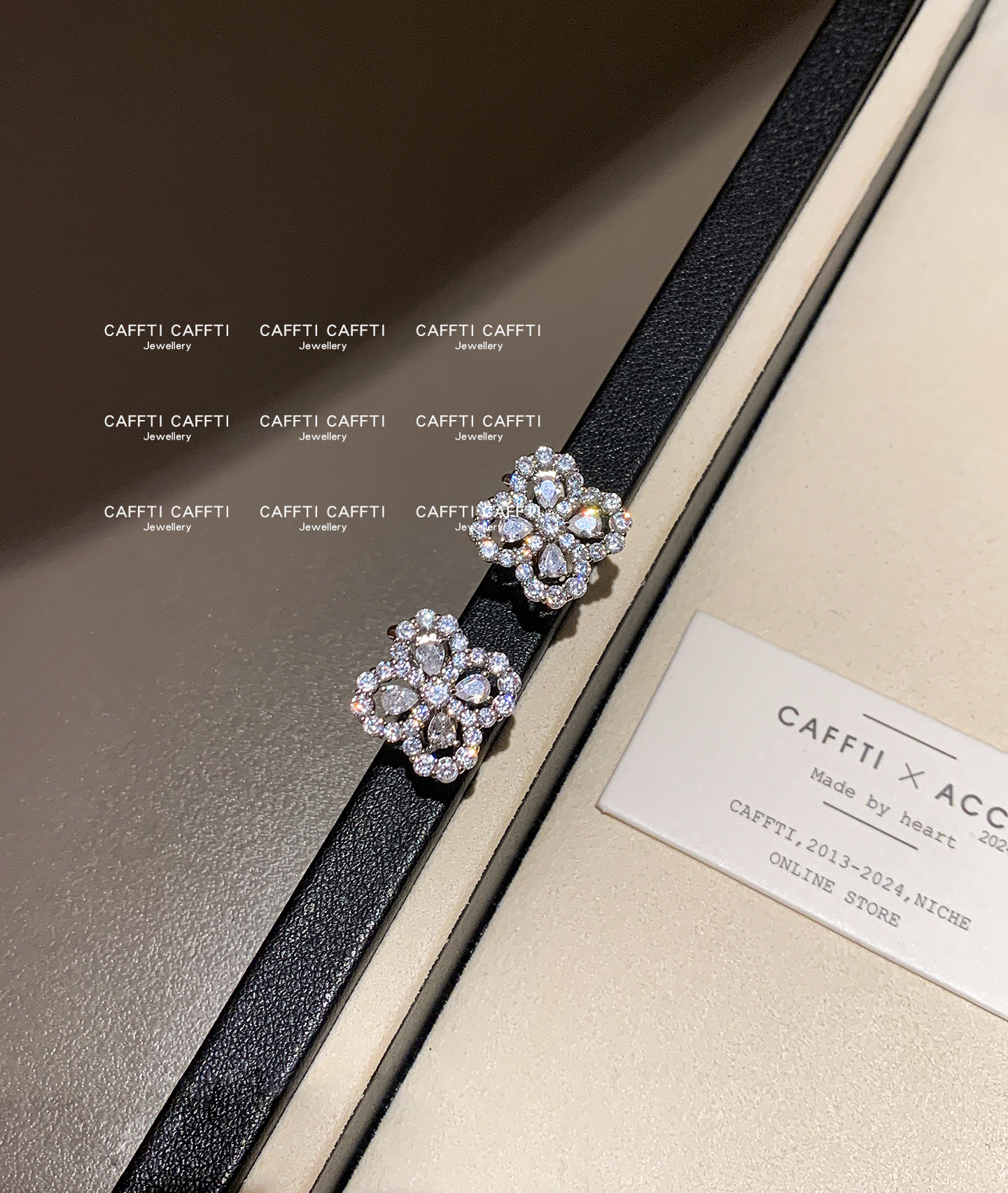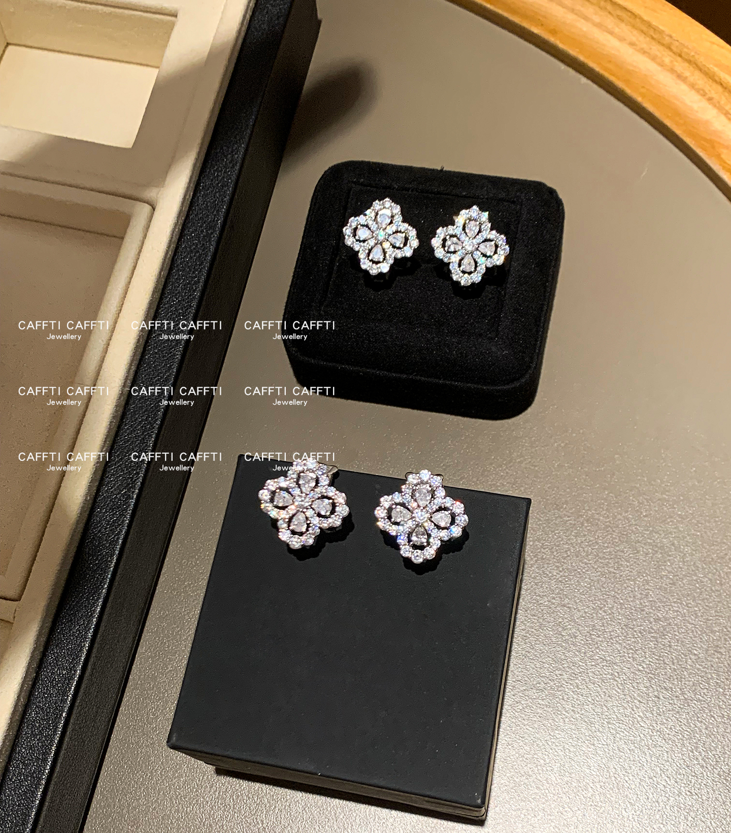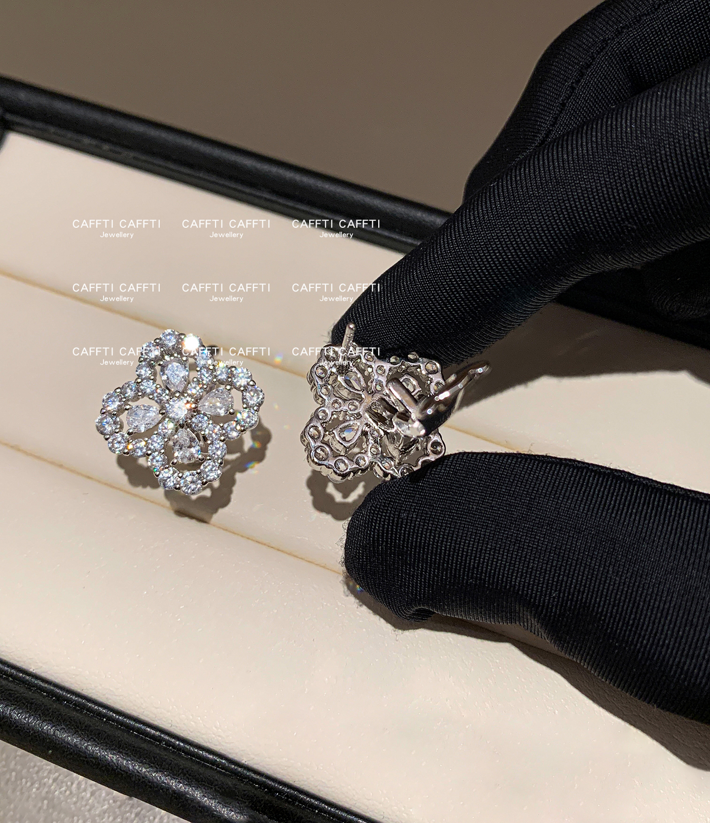 999 Pure Silver French-Style Dazzlingly Beautiful Silver Diamond Four-Leaf Clover Earrings for Women, High-End Light Luxury Earrings