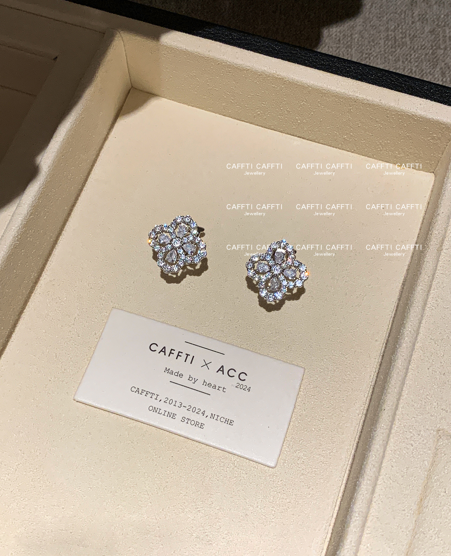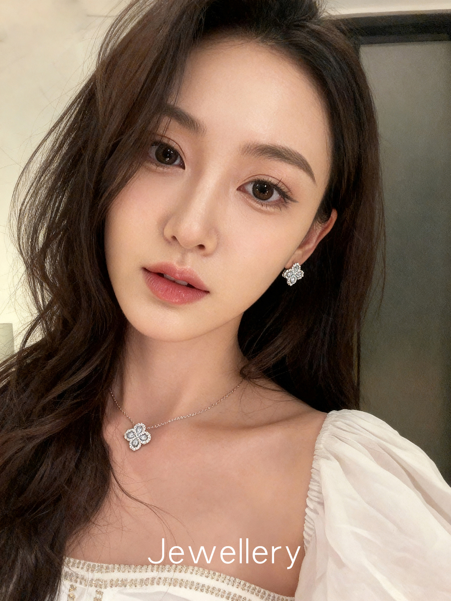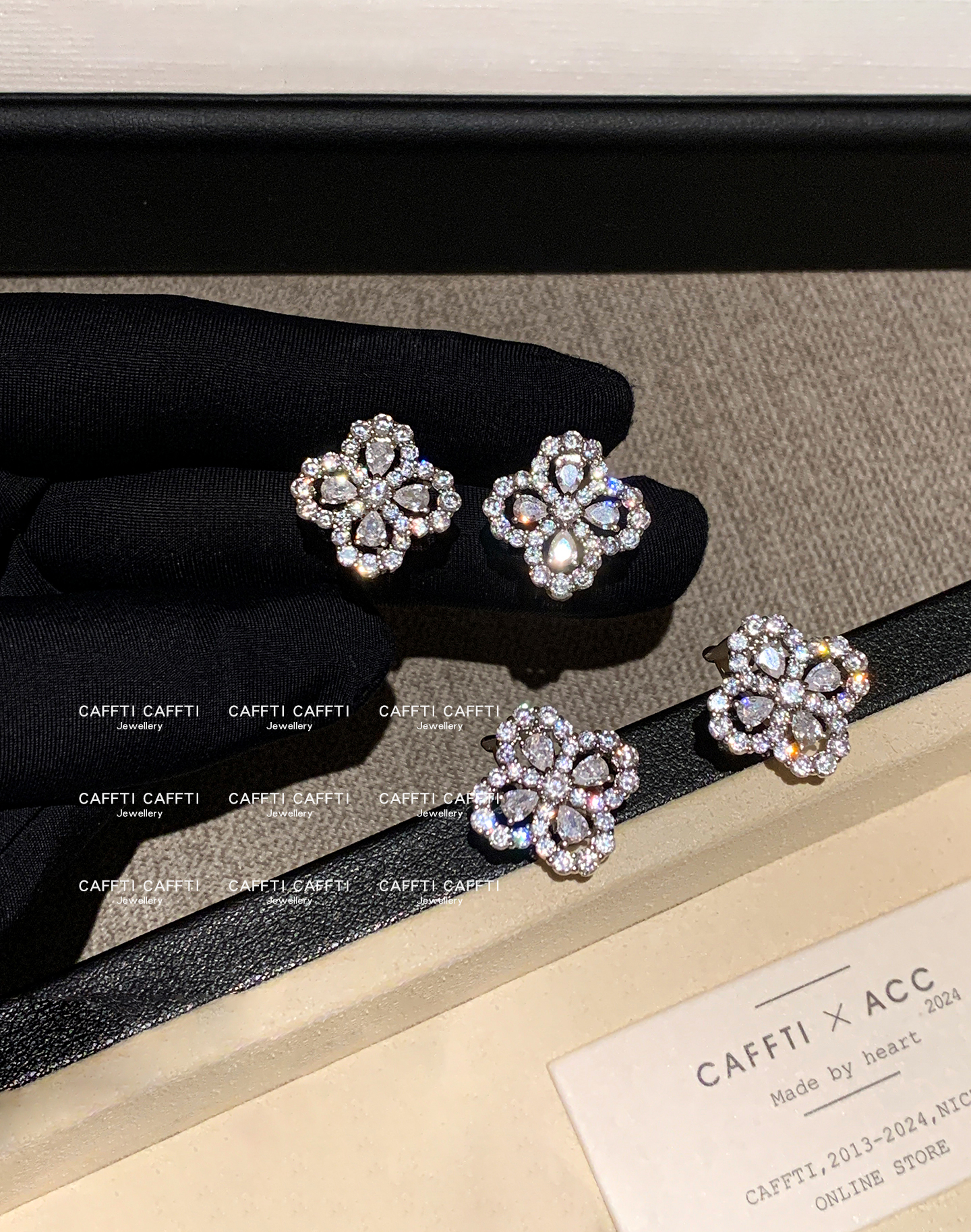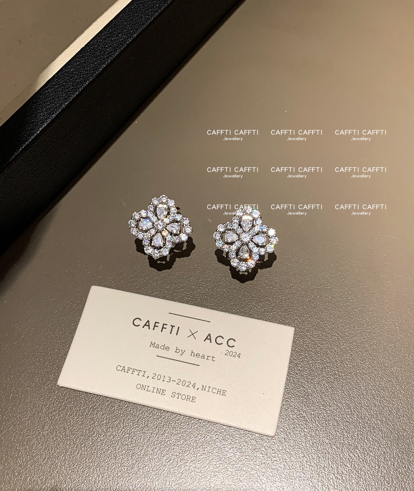 999 Pure Silver French-Style Dazzlingly Beautiful Silver Diamond Four-Leaf Clover Earrings for Women, High-End Light Luxury Earrings