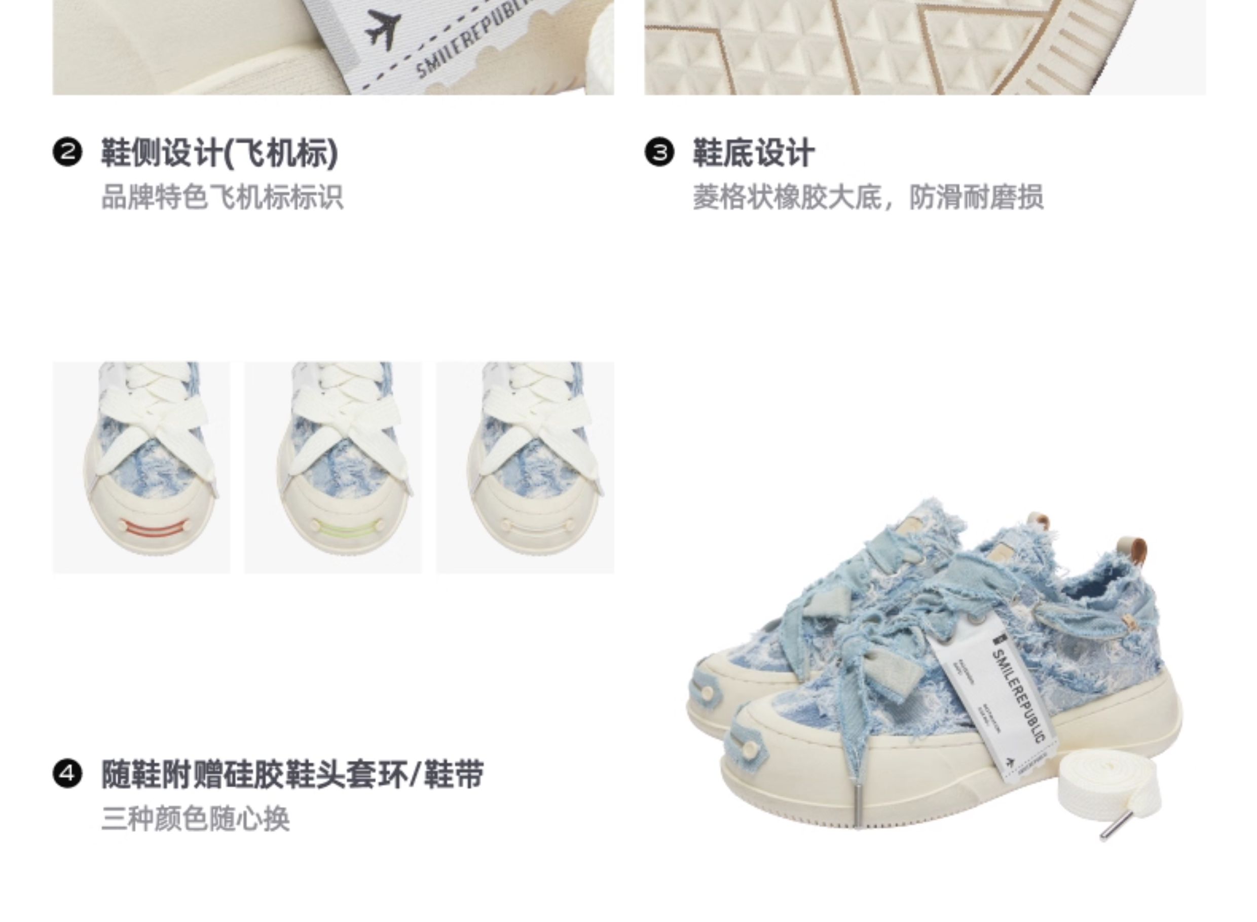 Smilerepublic Distressed Blue Denim Open-Toe Platform Canvas Shoes Height-Increasing Quirky Big-Toe Shoes