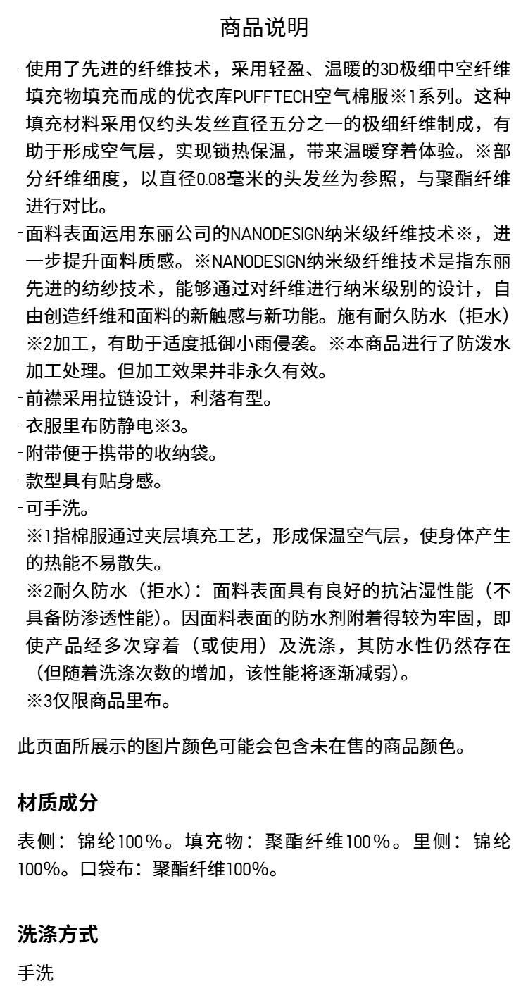 Uniqlo Women's Pufftech Air Cotton Jacket/Coat Jacket 25 Autumn and Winter New Style 479751