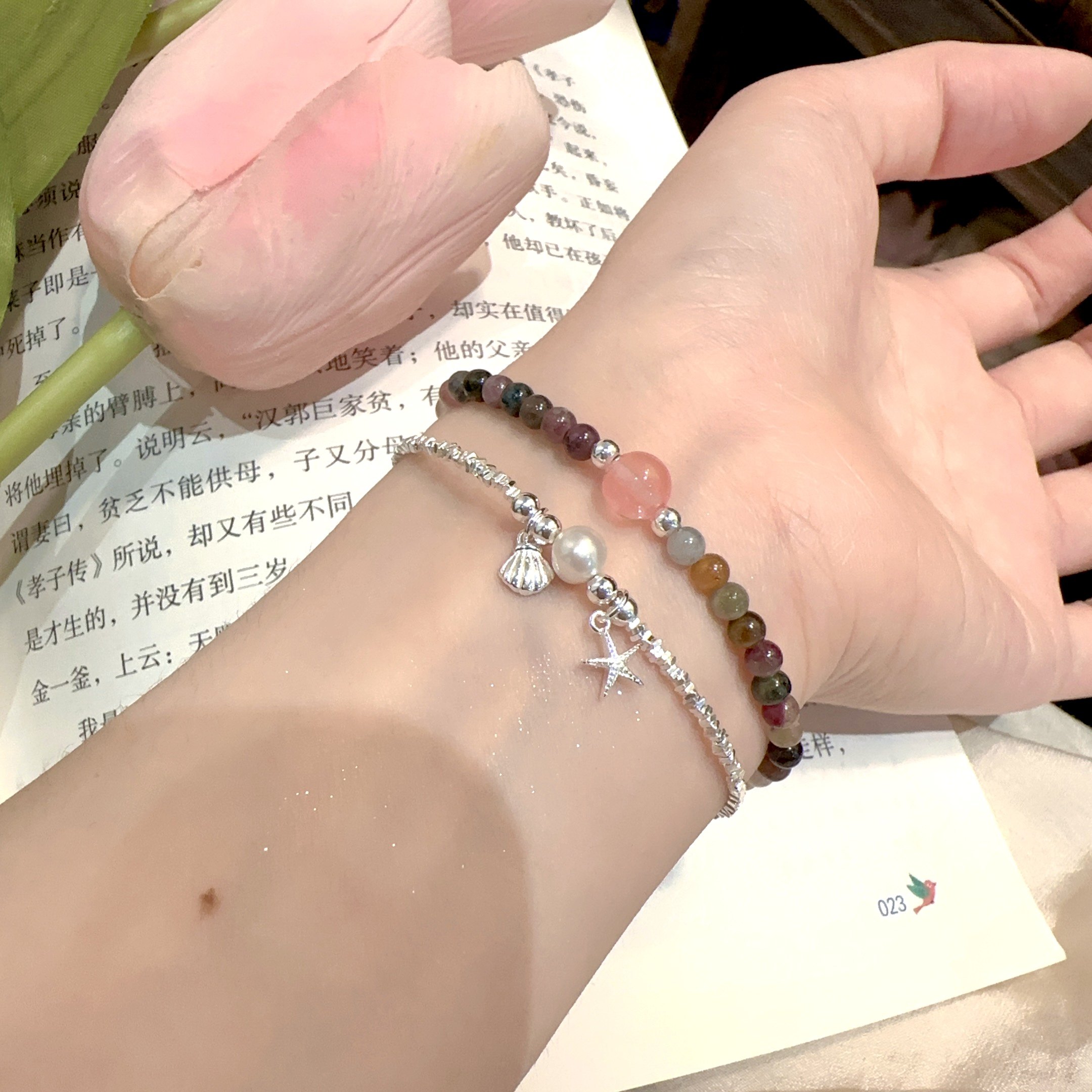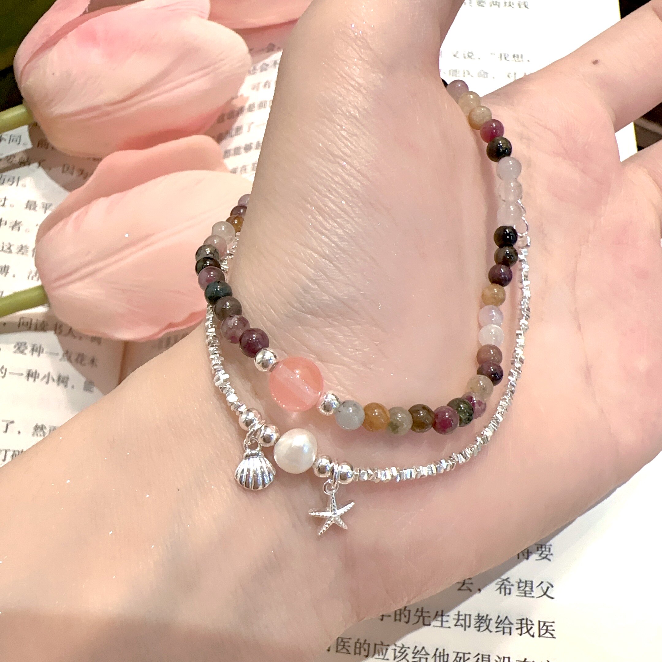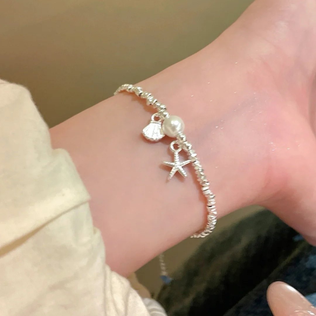 Shilijian [925 Silver | Marine Life] Shell Starfish Freshwater Pearl Bracelet S925 Layered Bracelet