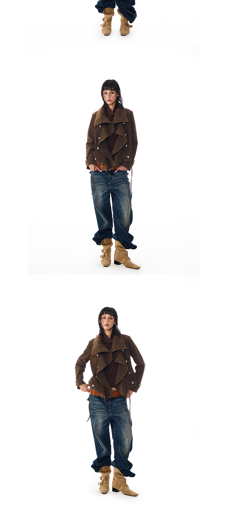 Future of Xanthoderm Deadwood Brown Maillard Color Series Cool and Loose Asymmetrical Jacket