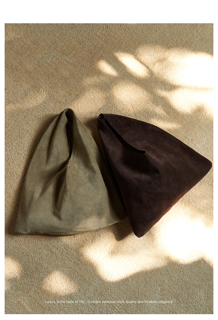 Msbeast Lightweight, Natural and Soft First-Layer Velvet-Feel Cow Leather Lightweight, Everyday Fashionable Triangular Handbag