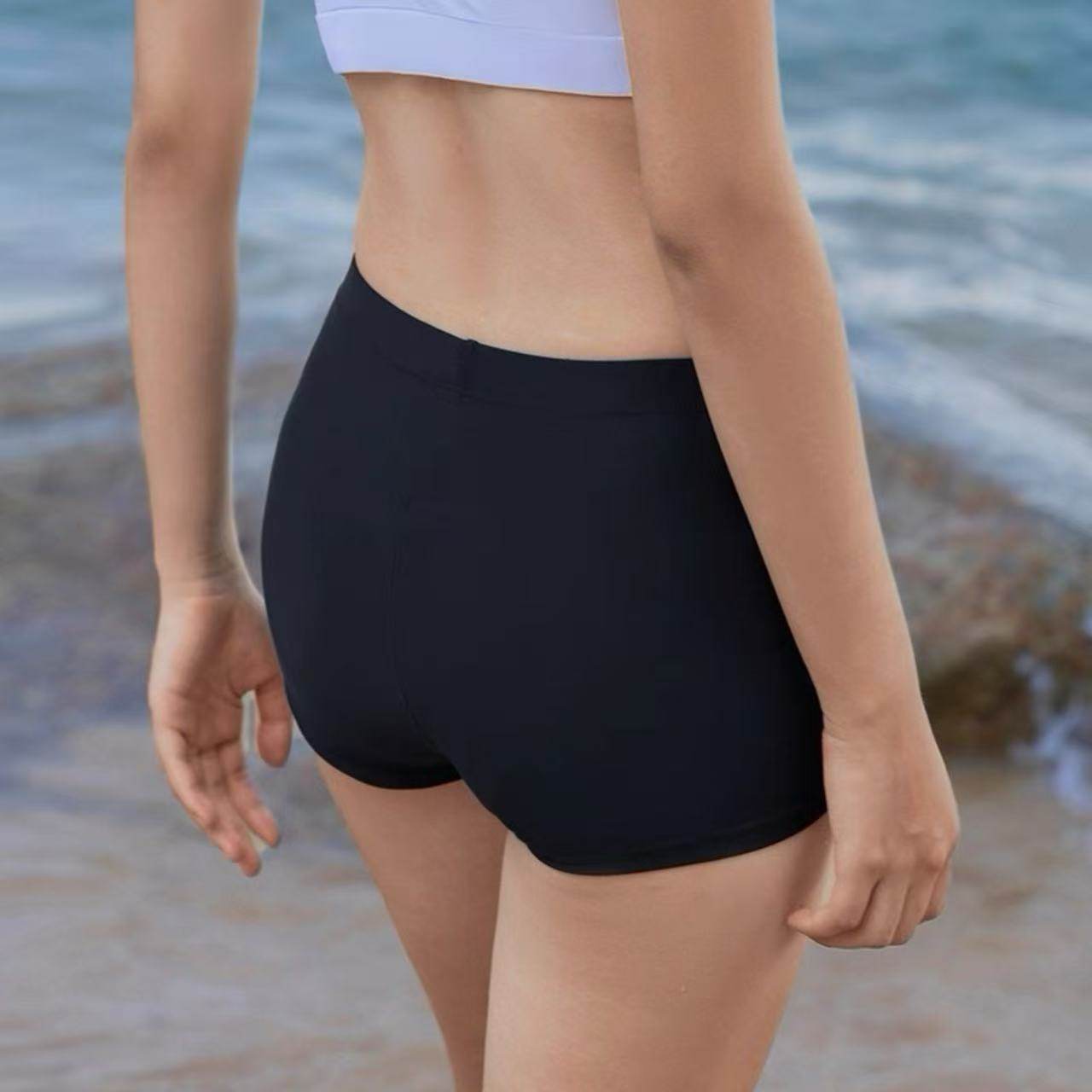 Doudou Ding Tail Women's Pure Black High-Elastic Nylon Swim Trunks, Anti-Exposure, Conservative, Quick-Drying, Safety Shorts