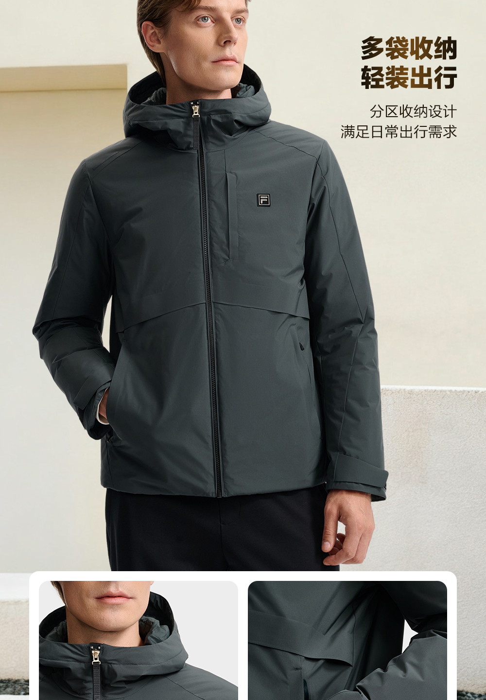 85% Duck down Lightweight Fila Men's down Jacket 2025 Winter New Business Basic Warm Hooded Coat