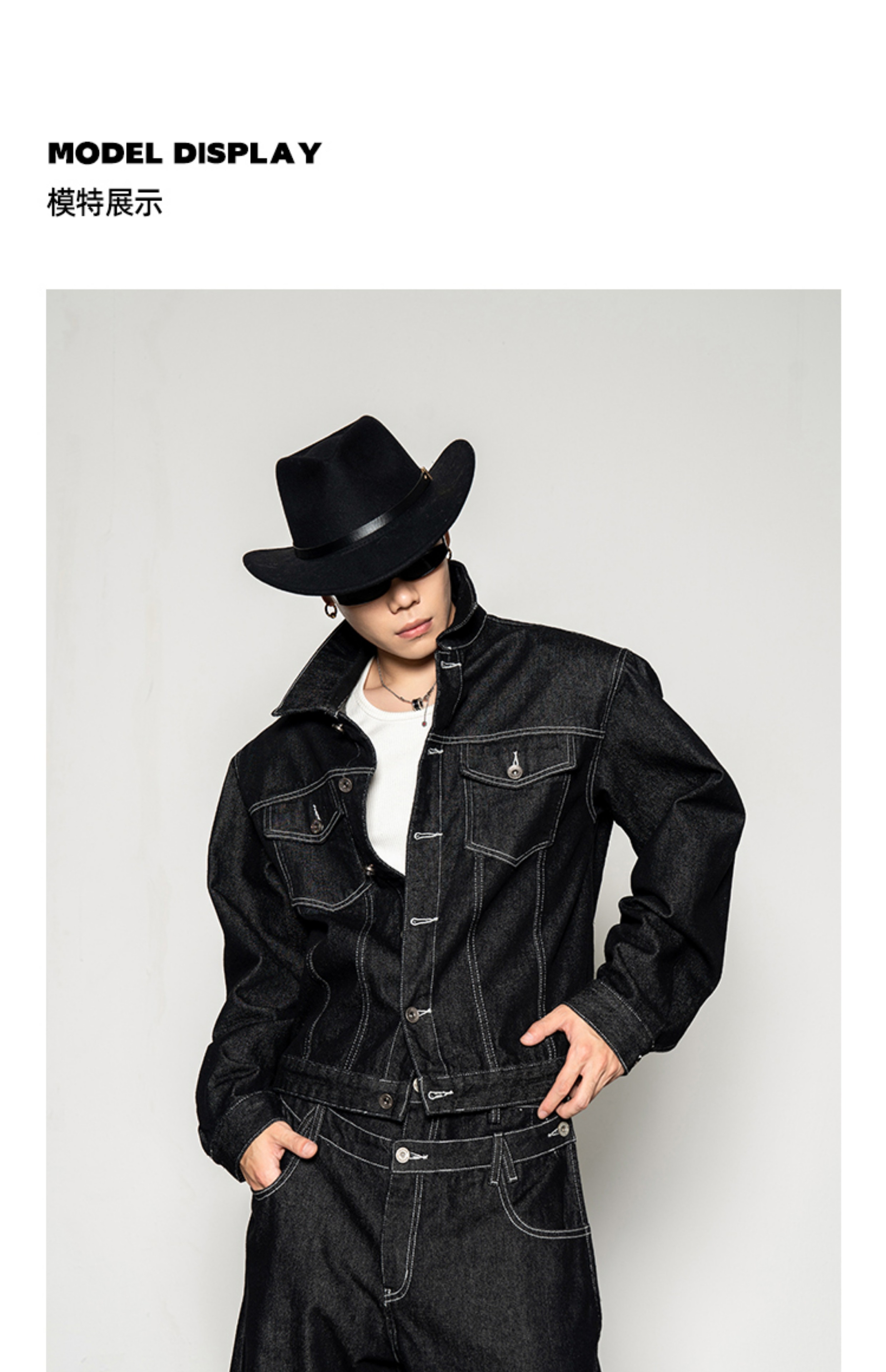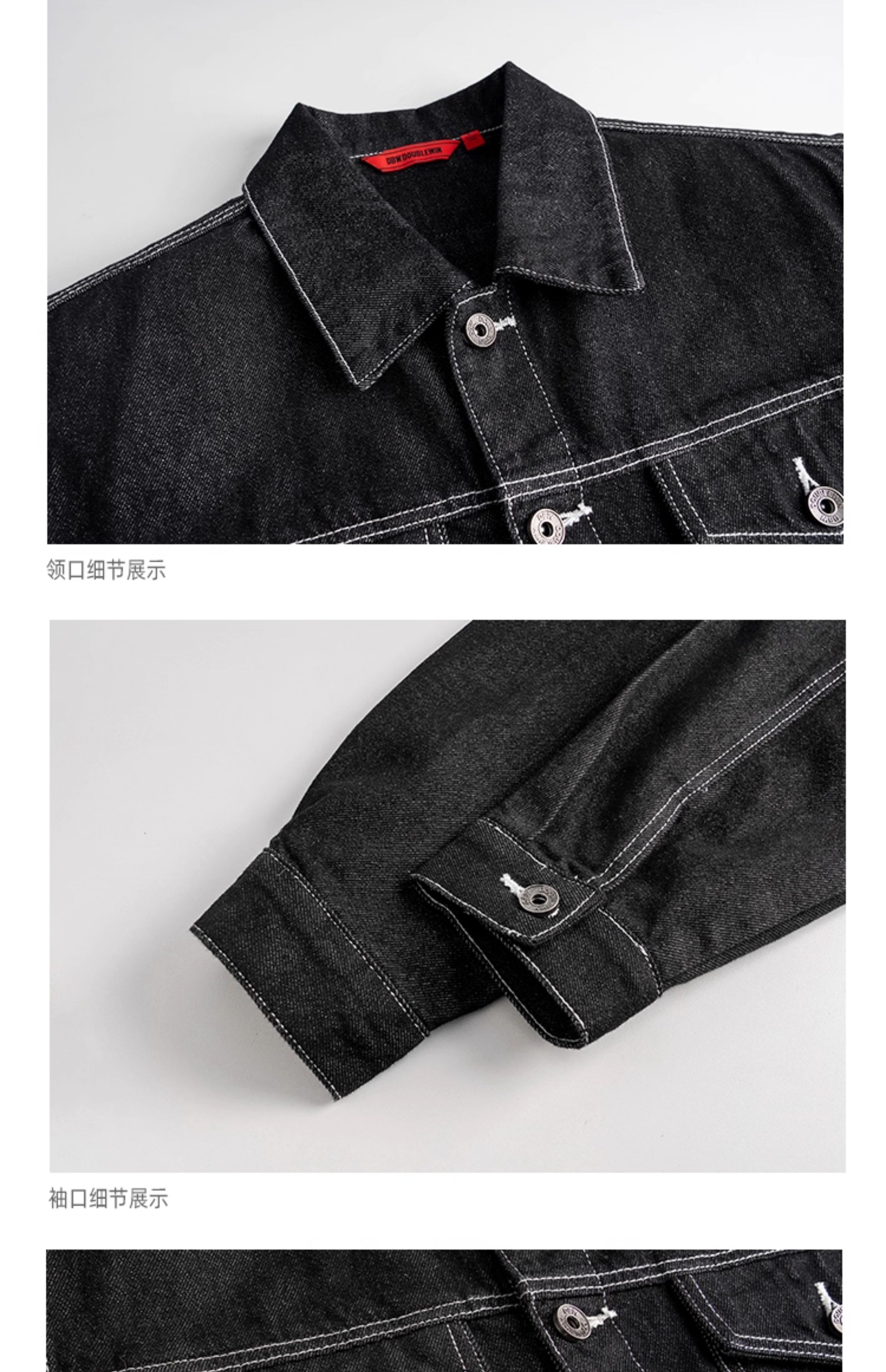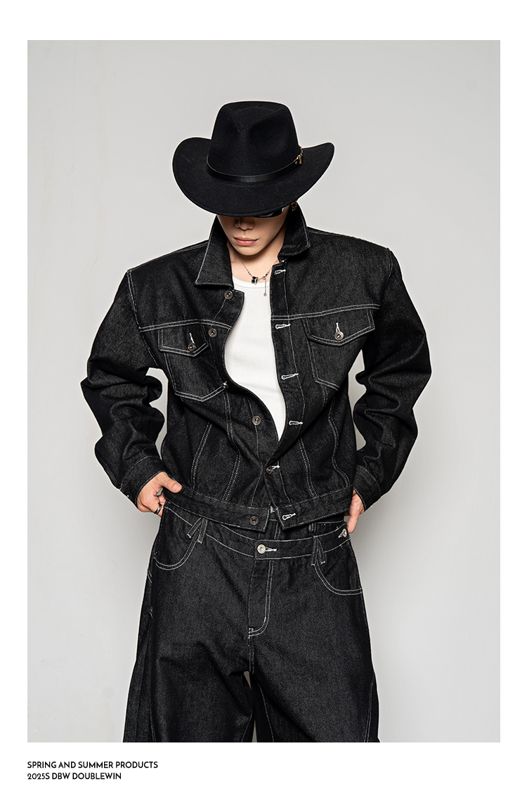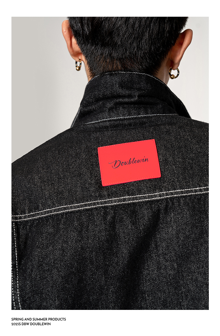 Dbw Doublewin Retro Original Color Washed Embroidered Denim Jacket Men's Autum Silhouette Wide Shoulder Short Jacket