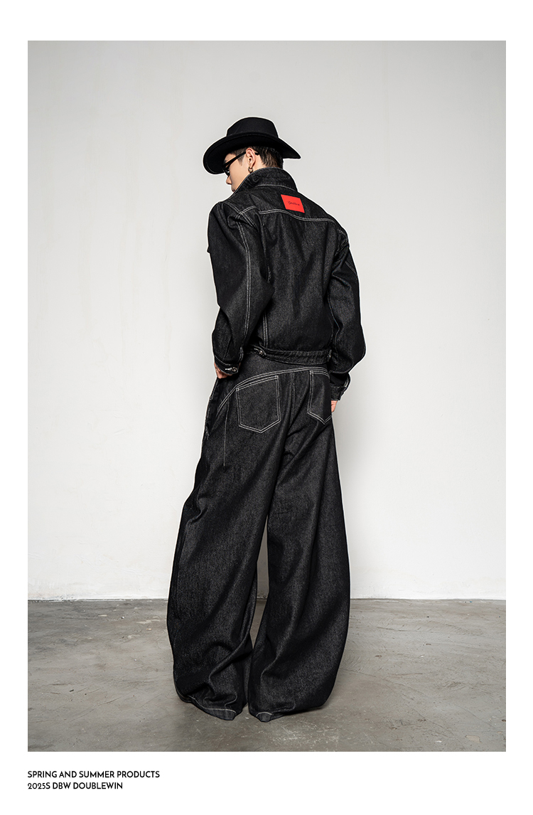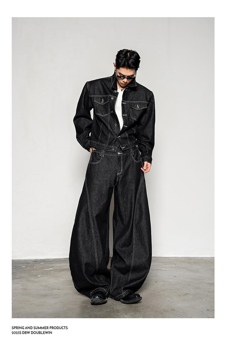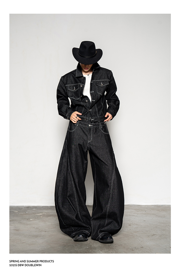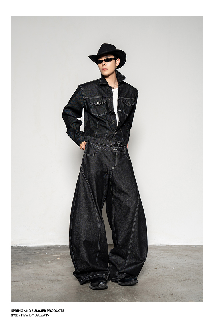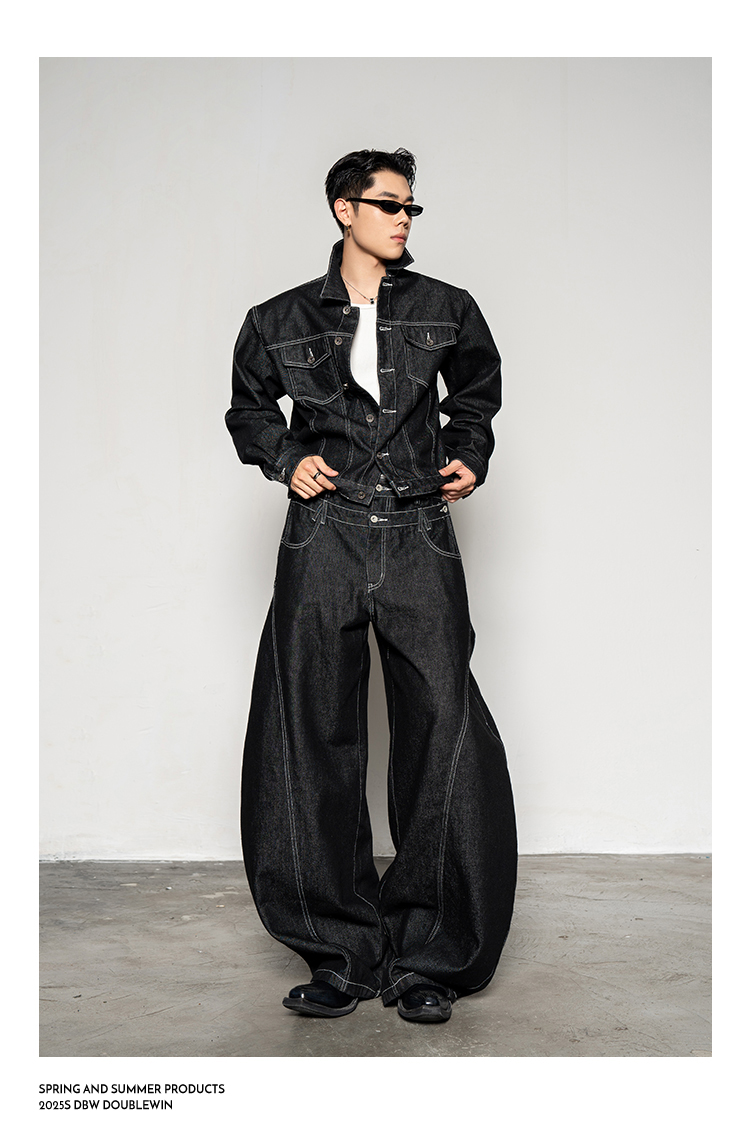 Dbw Doublewin Retro Original Color Washed Embroidered Denim Jacket Men's Autum Silhouette Wide Shoulder Short Jacket