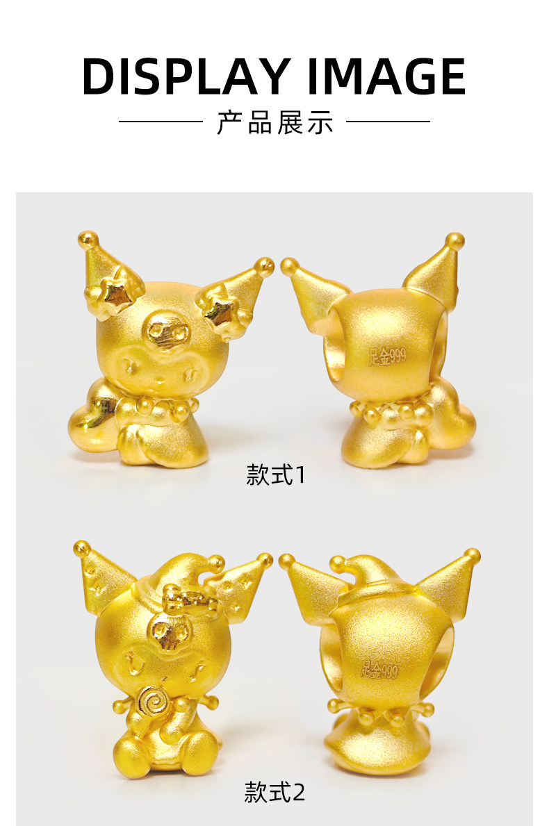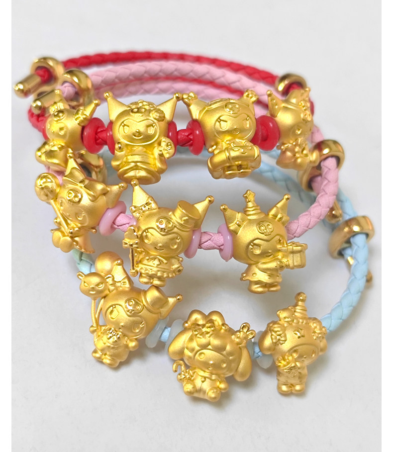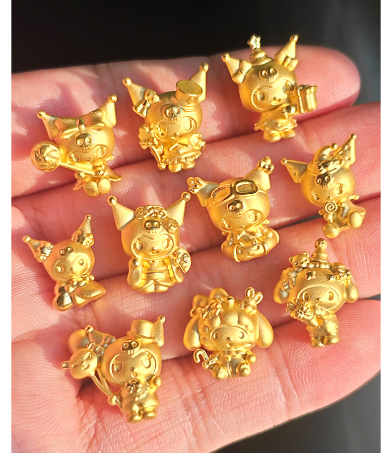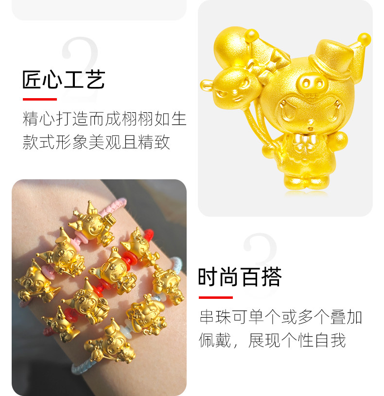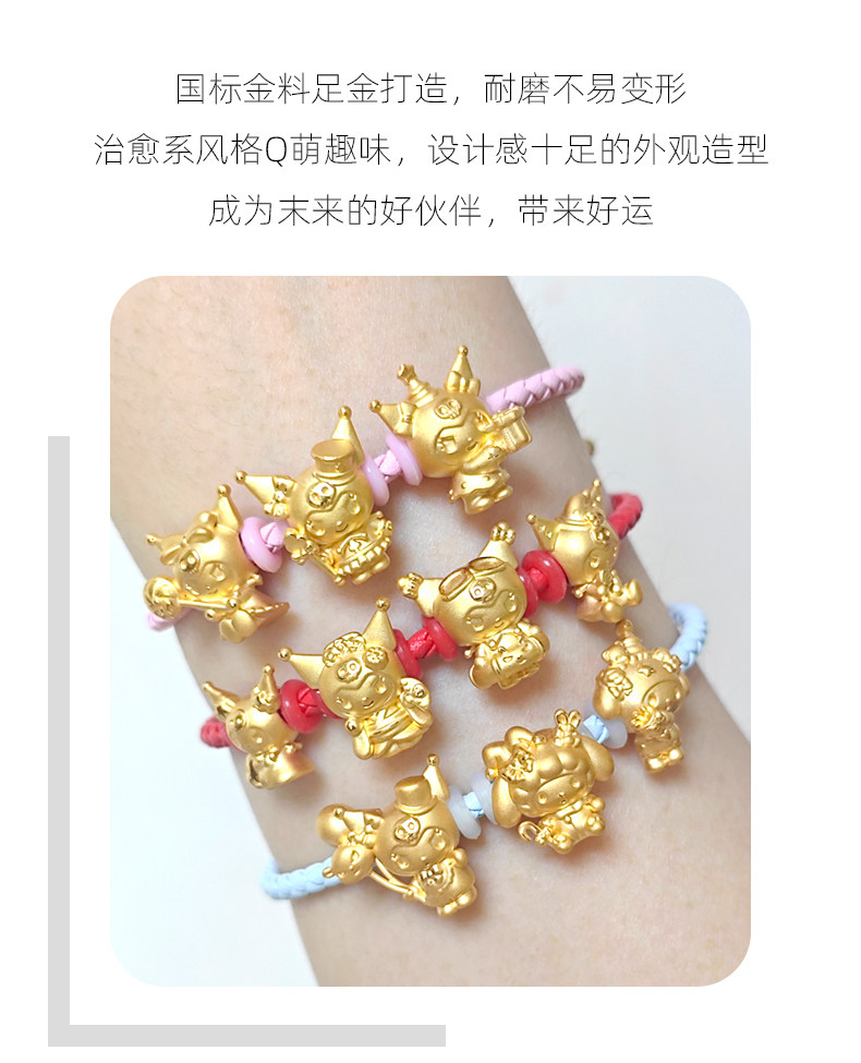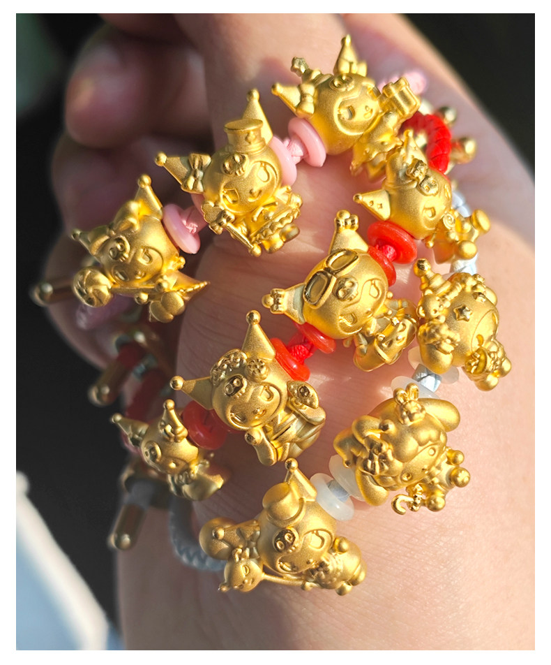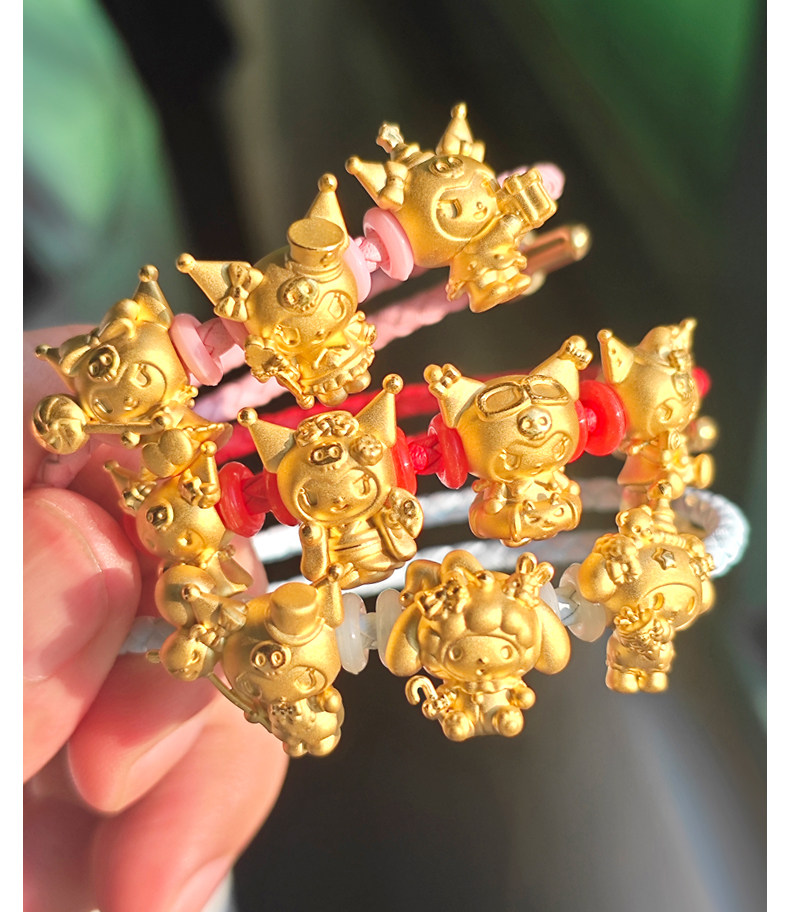 999 Pure Gold Kuromi Bracelet, Gold Little Devil Fortune Bead, My Melody 3D Hard Gold Bracelet, Gift for Girlfriend