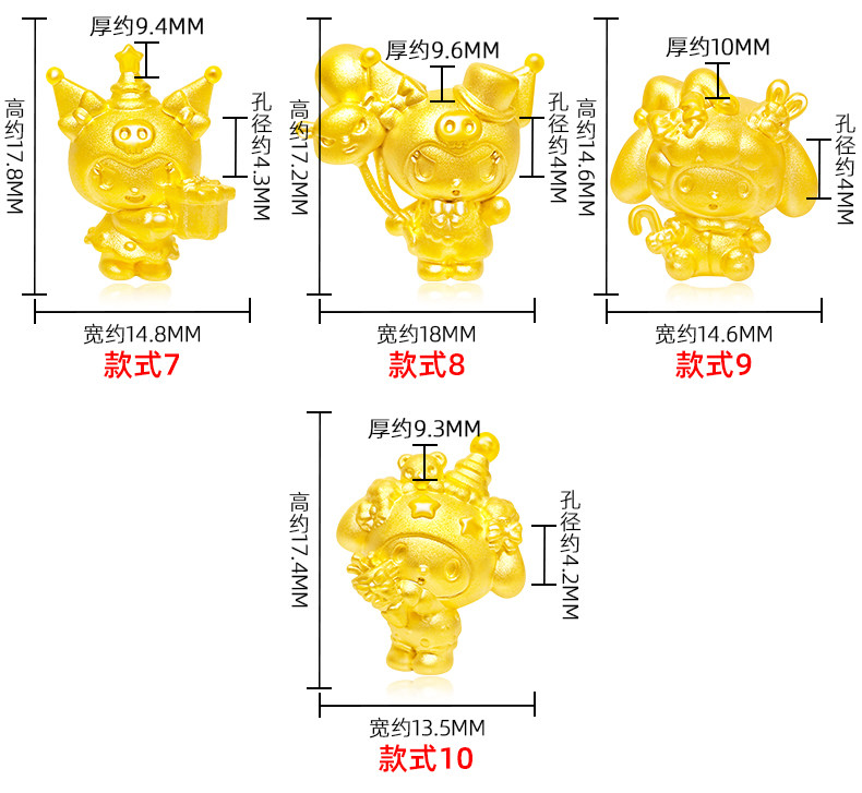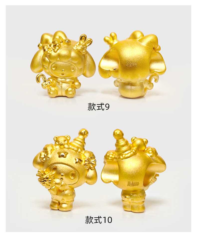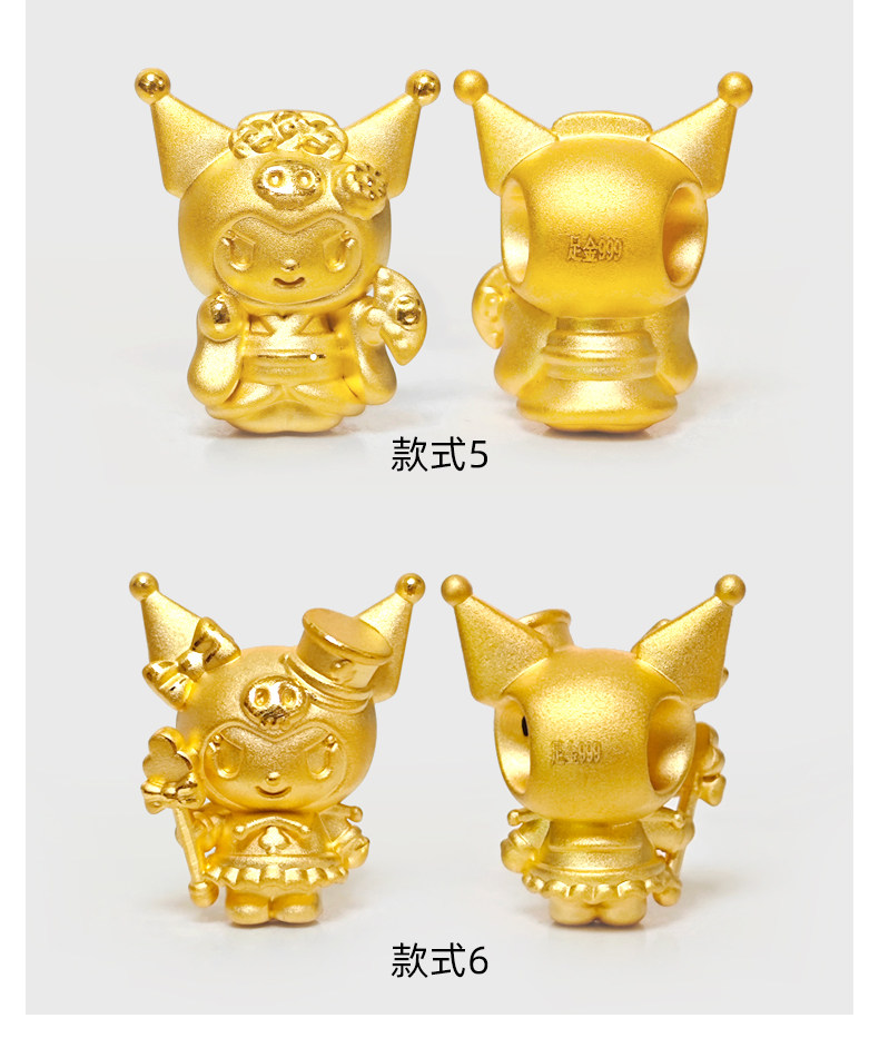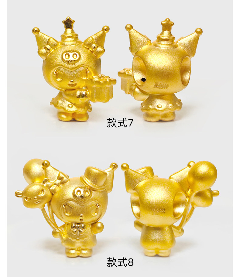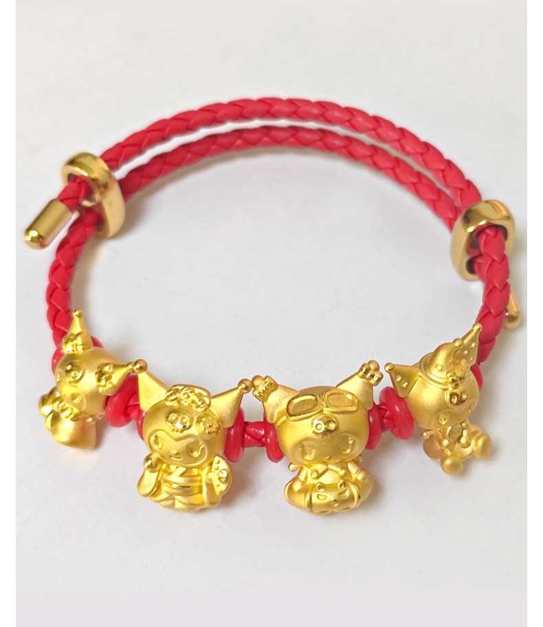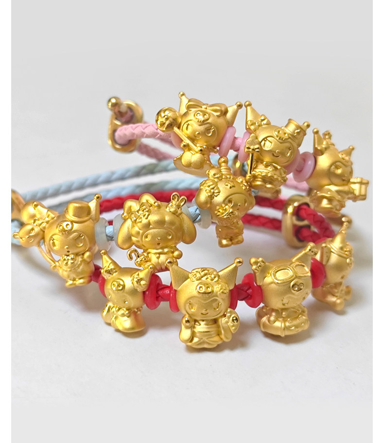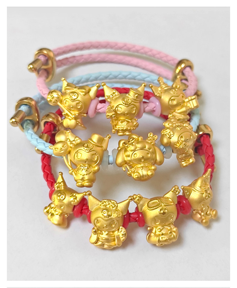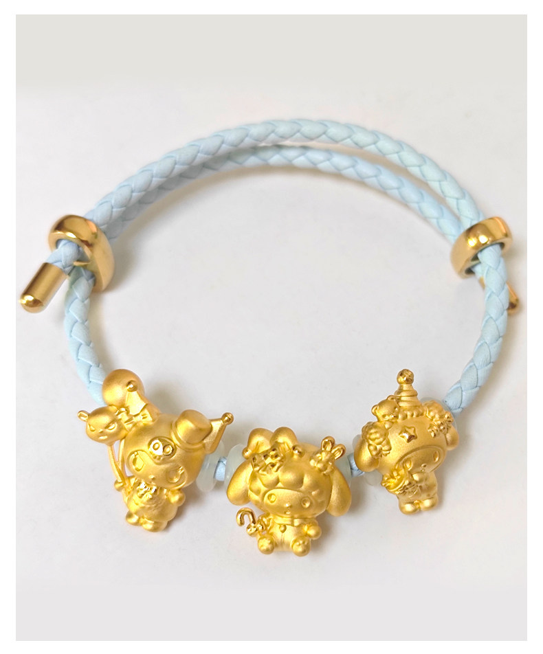 999 Pure Gold Kuromi Bracelet, Gold Little Devil Fortune Bead, My Melody 3D Hard Gold Bracelet, Gift for Girlfriend