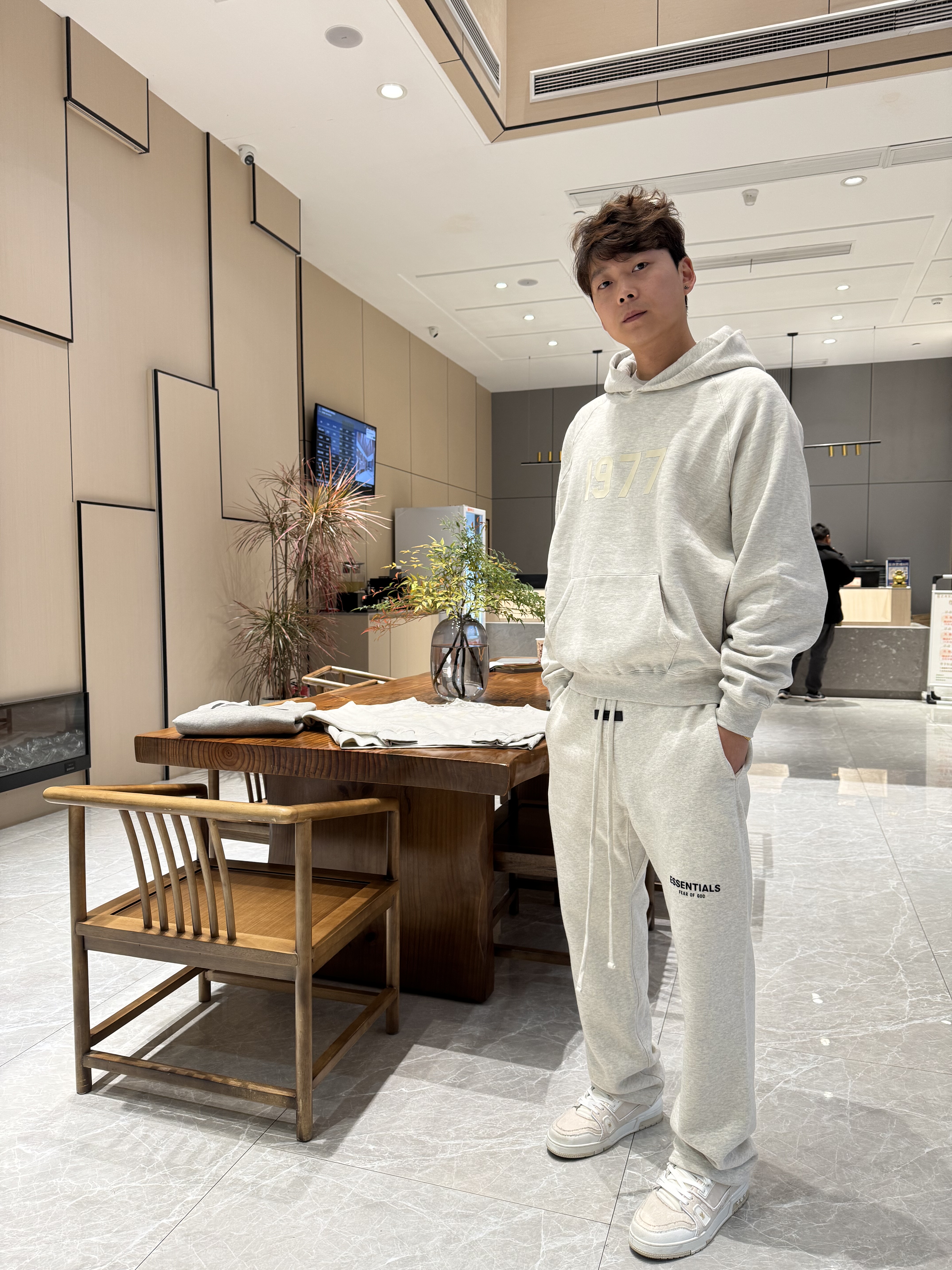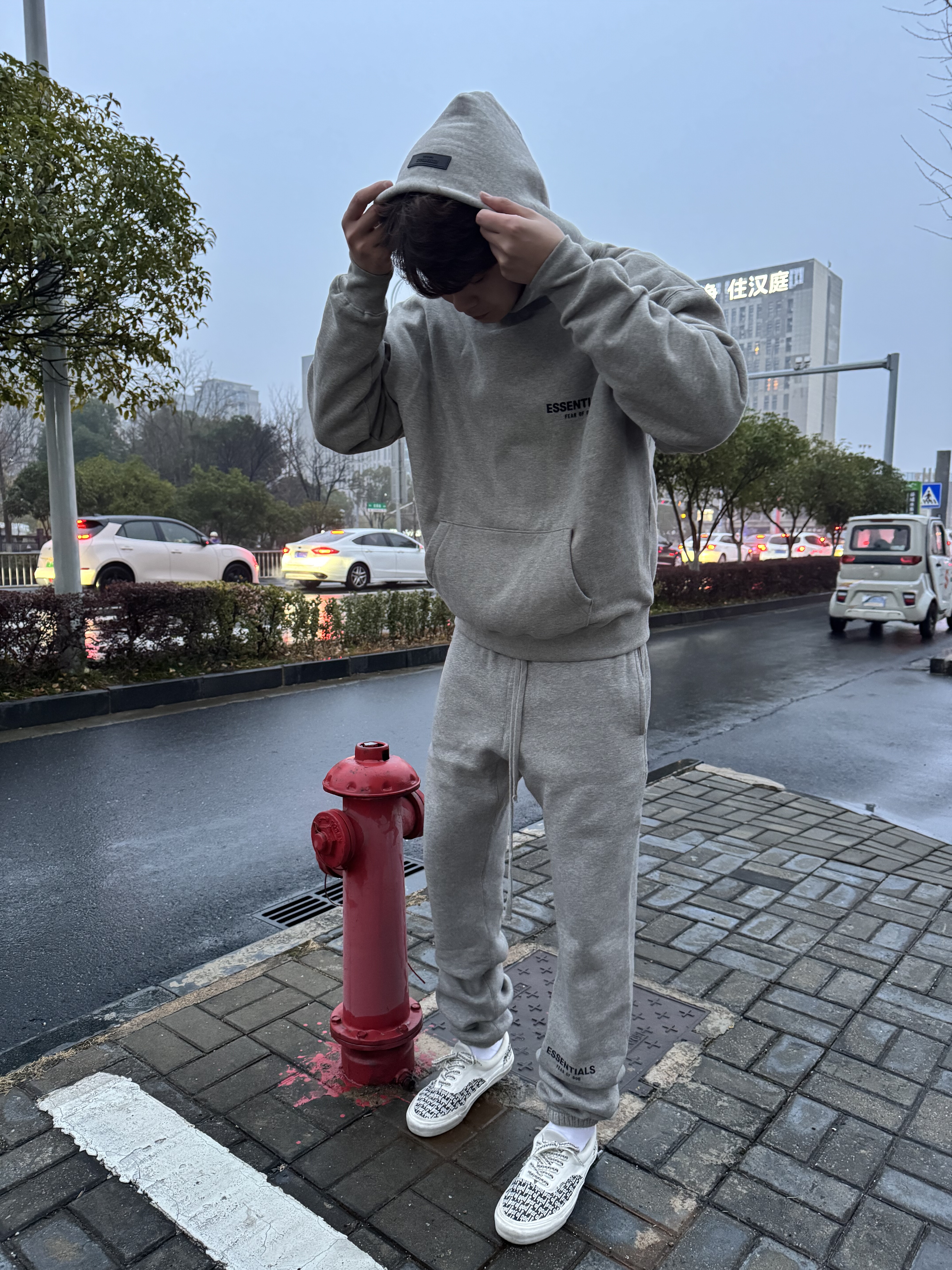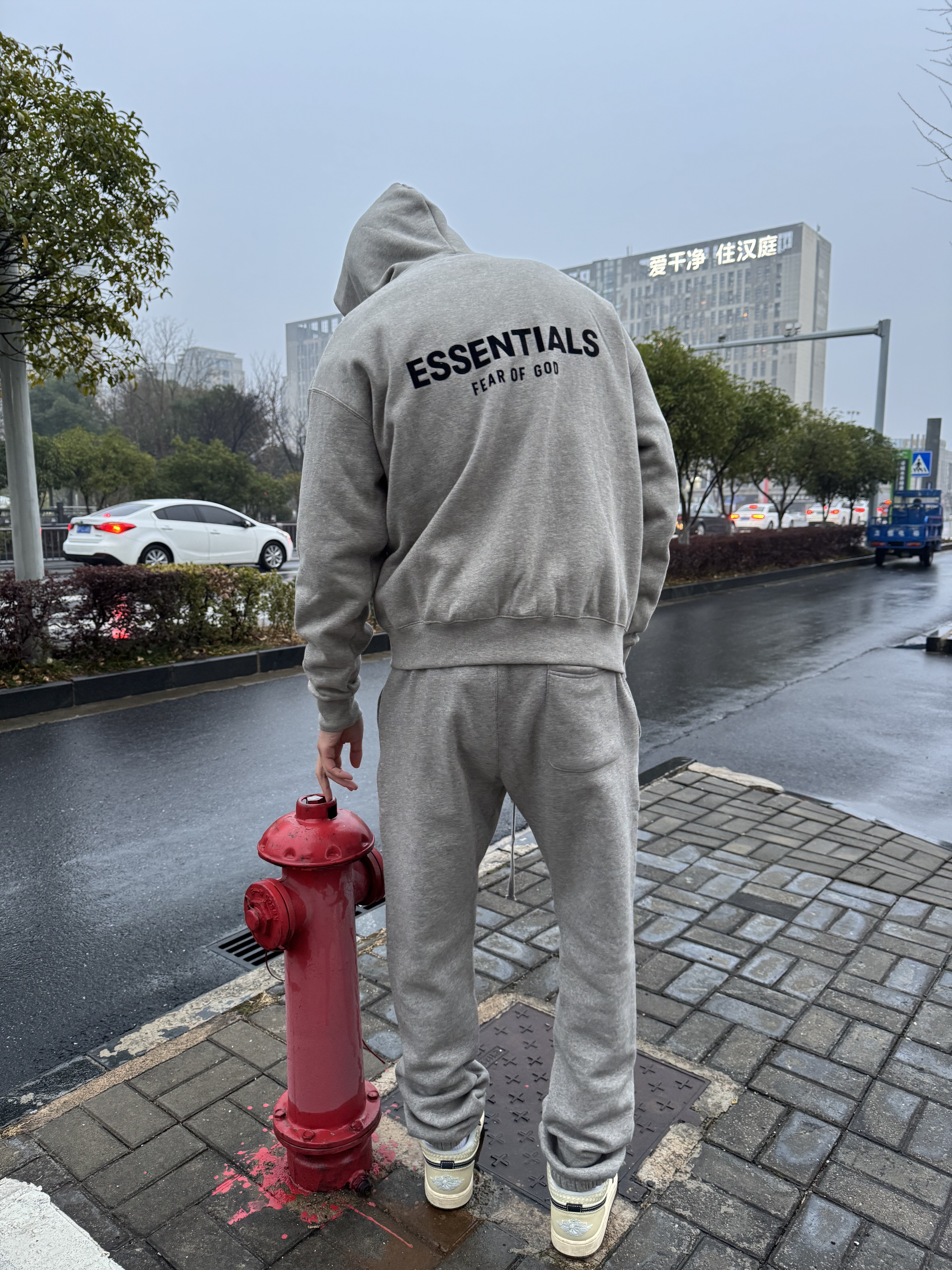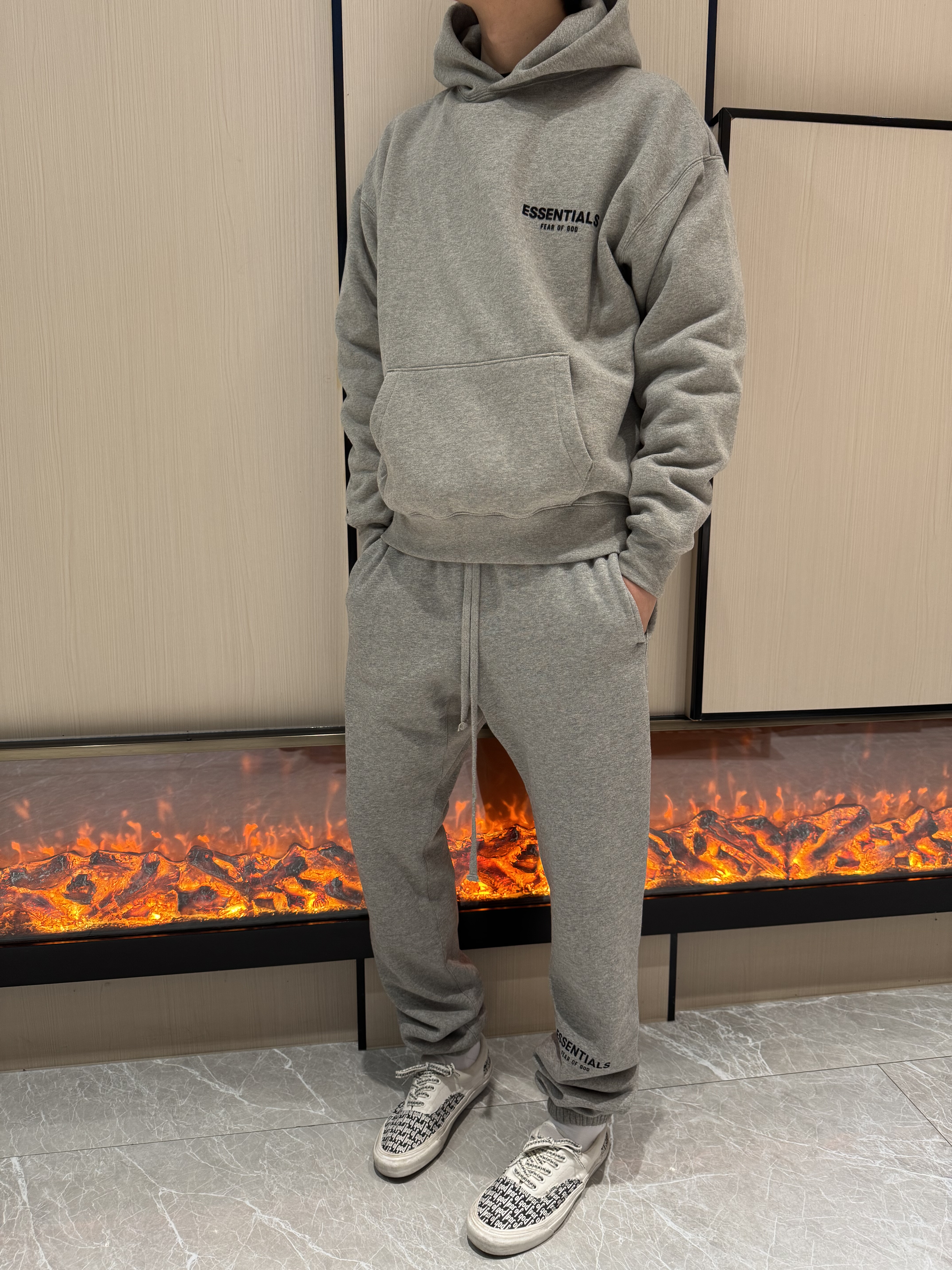 Essentials Czfog Double-Line Flocked Letter Logo Pants Autumn and Winter Fleece-Lined Couple's Cuffed Casual Sweatpants for Men