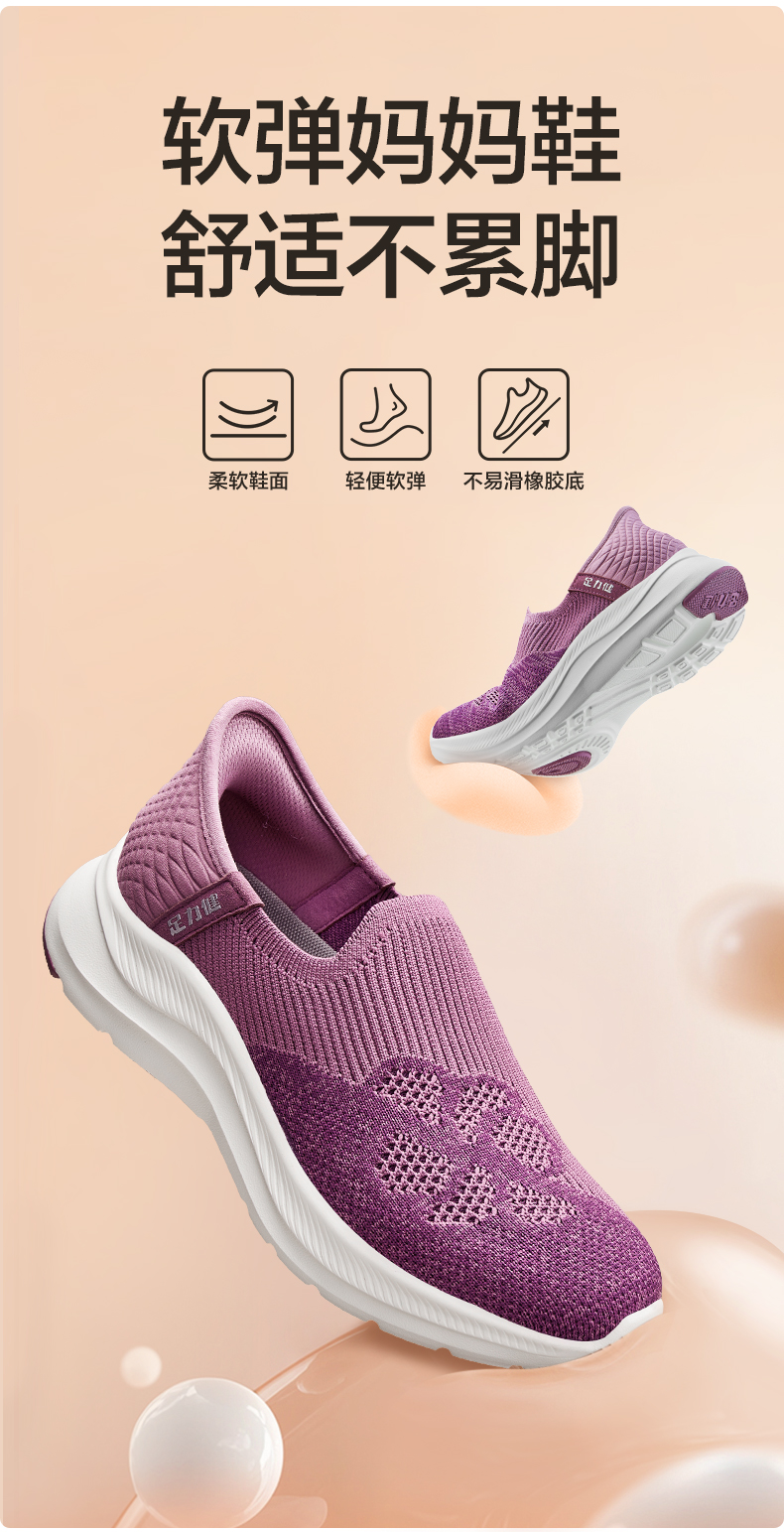 Footliger Elderly Shoes Official Genuine Slip-On Cloth Shoes Soft Sole Mom Shoes Middle-Aged and Elderly Comfortable Lightweight Walking Shoes