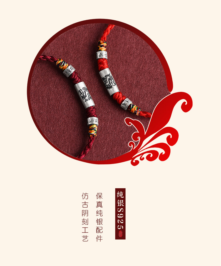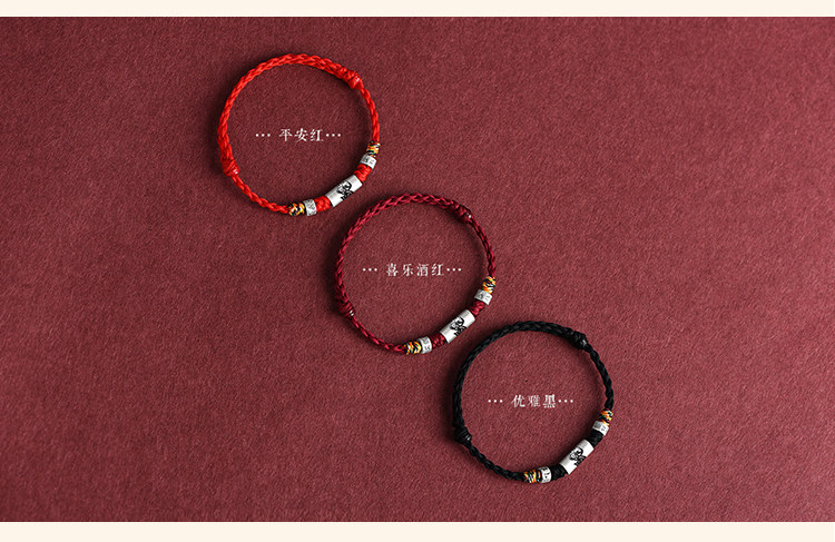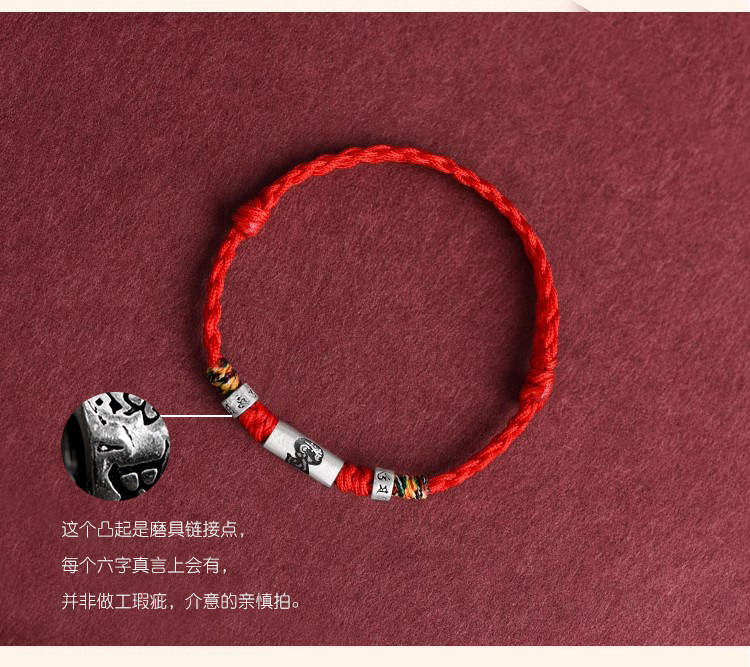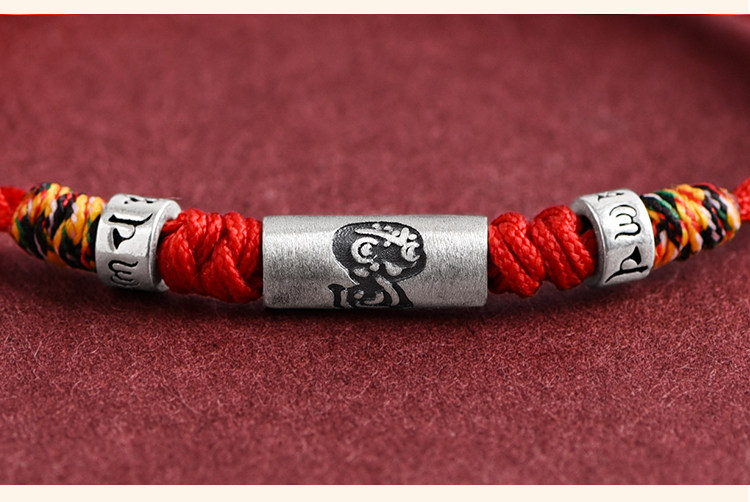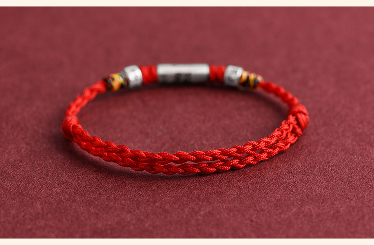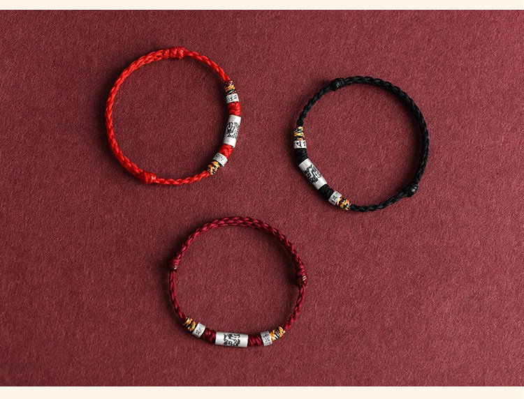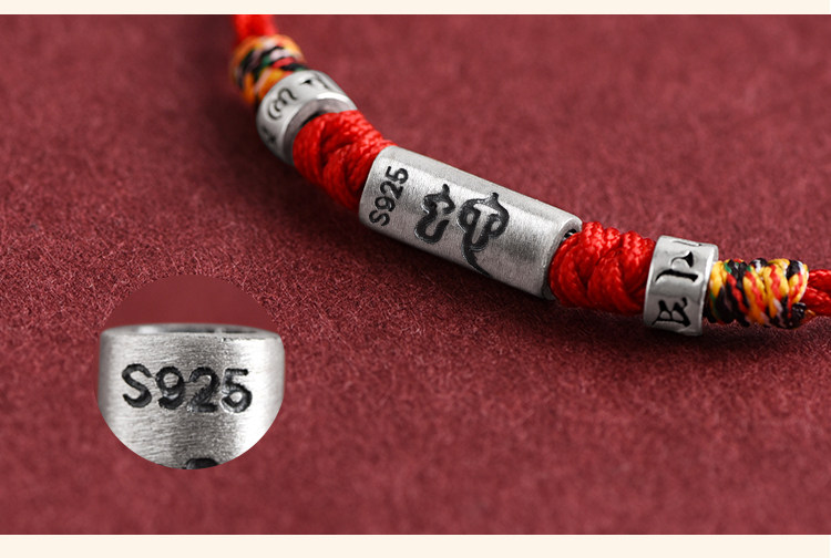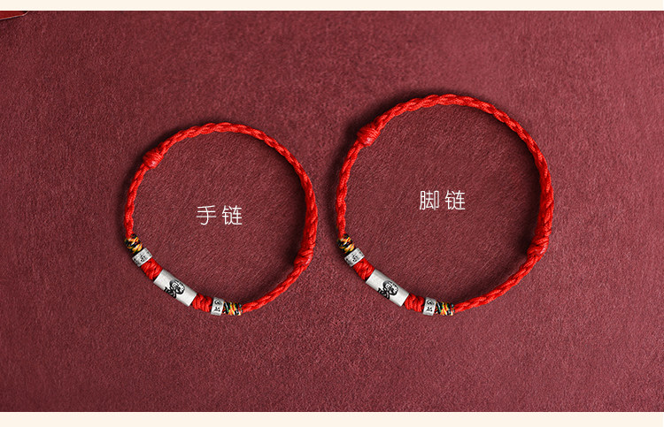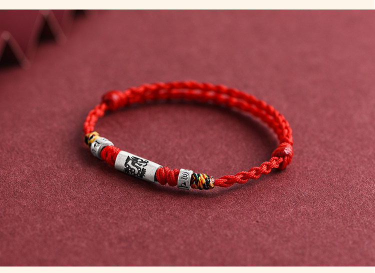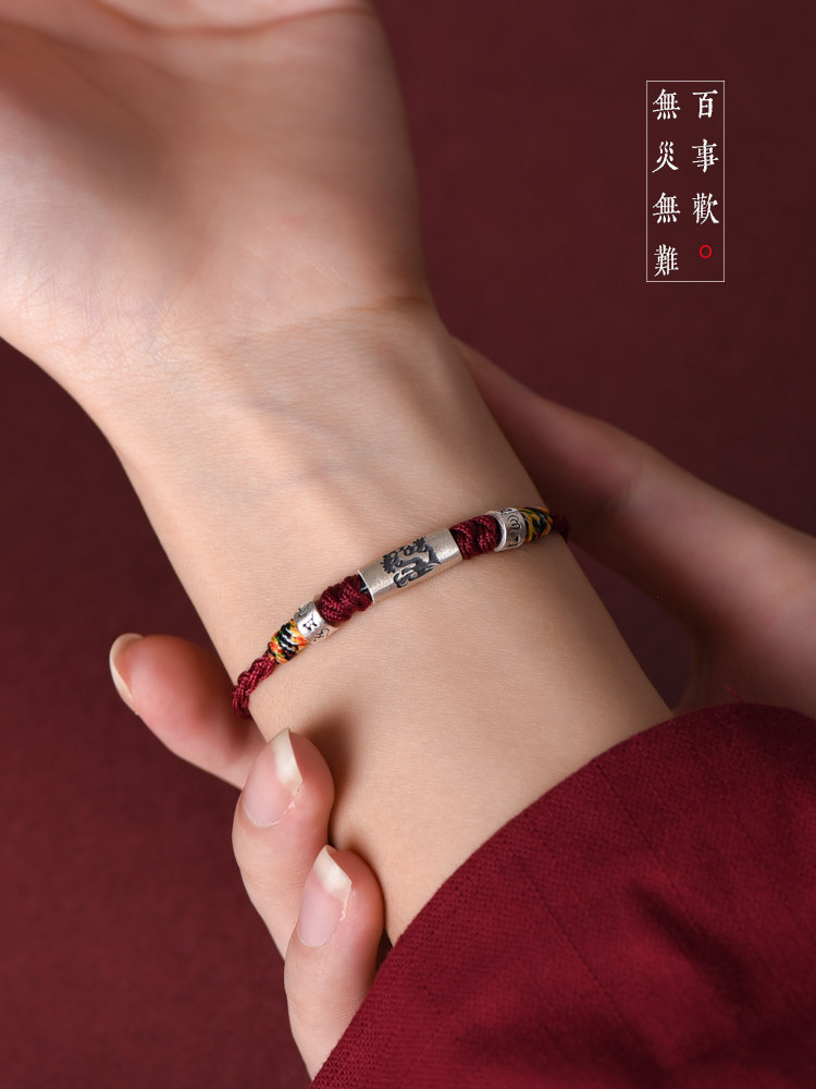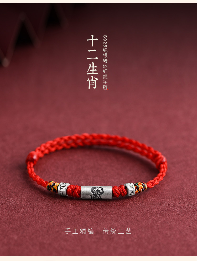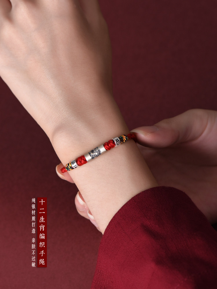 Putuo Mountain Pure Silver Twelve Zodiac Snake Red String Bracelet for Men and Women, Good Luck and Safety in One's Birth Year, Hand-Woven Bracelet
