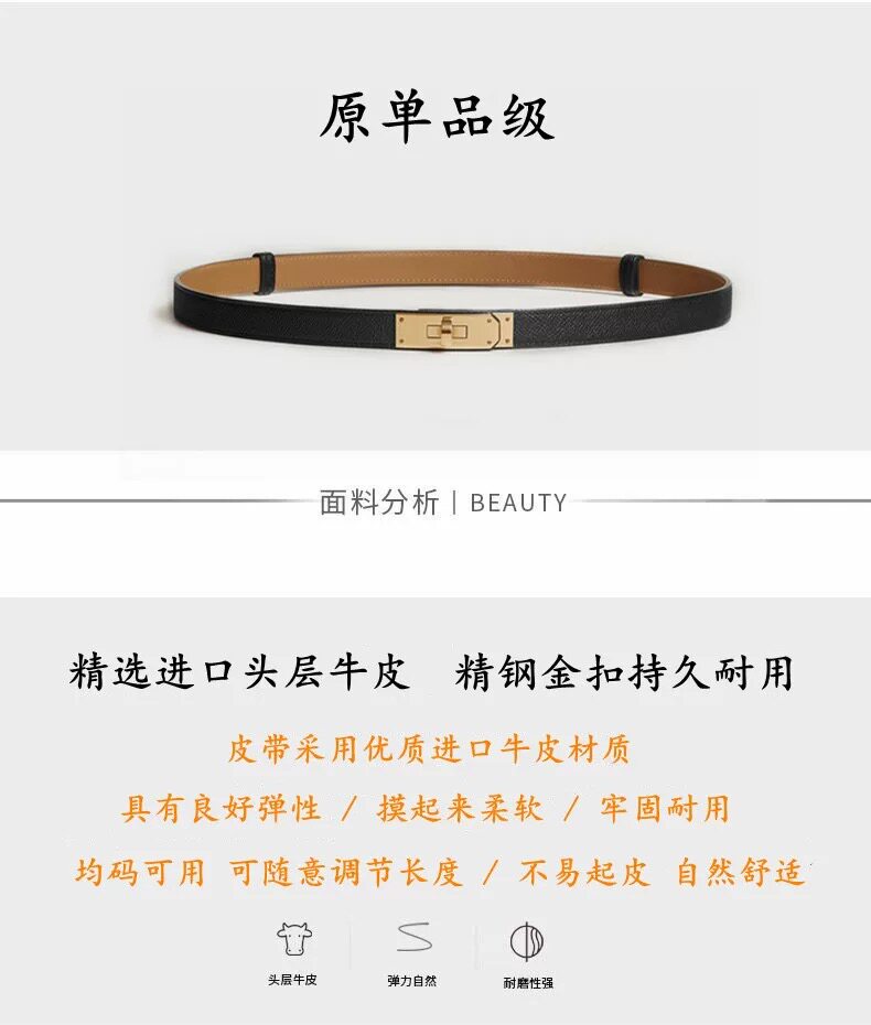H Kelly Belt for Women, Genuine Leather Belt, Versatile Decorative Belt, Waist-Cinching, Slimming, Thin Style, Light Luxury, High-End Feel