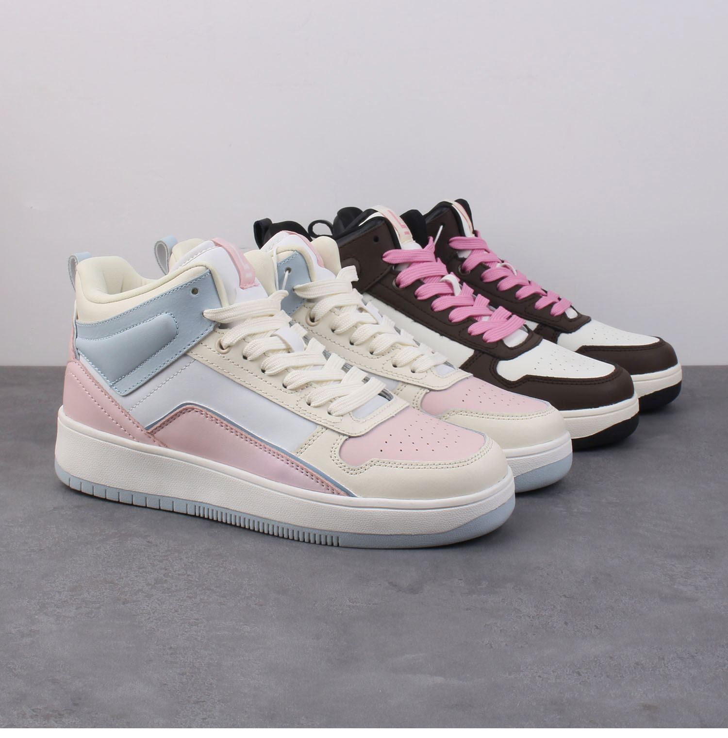 Exported to Russia, Women's Leather Sneakers, Non-Slip, Wear-Resistant, Mid-Top, Color-Blocking, Versatile, Fashionable Women's Sports Shoes