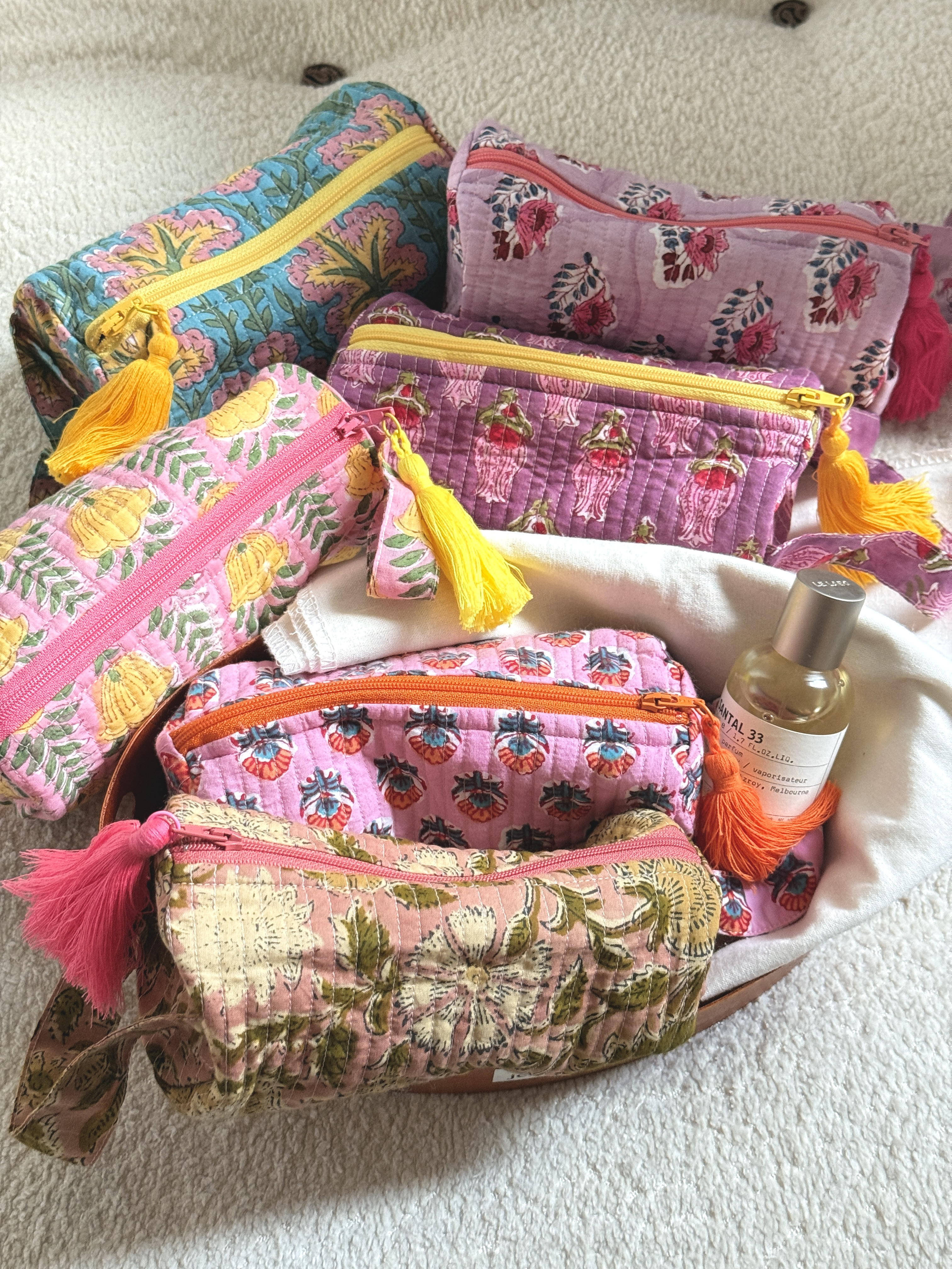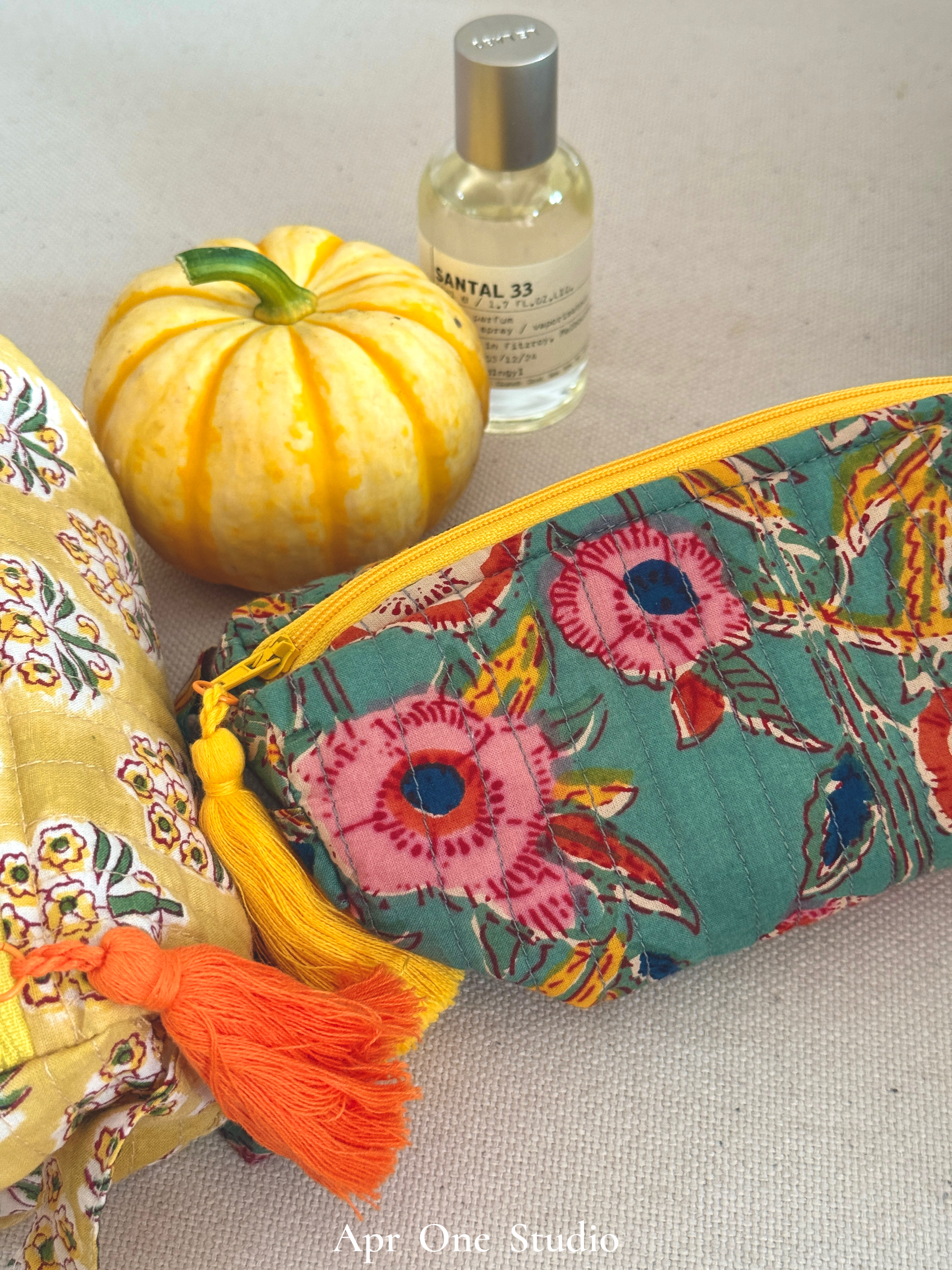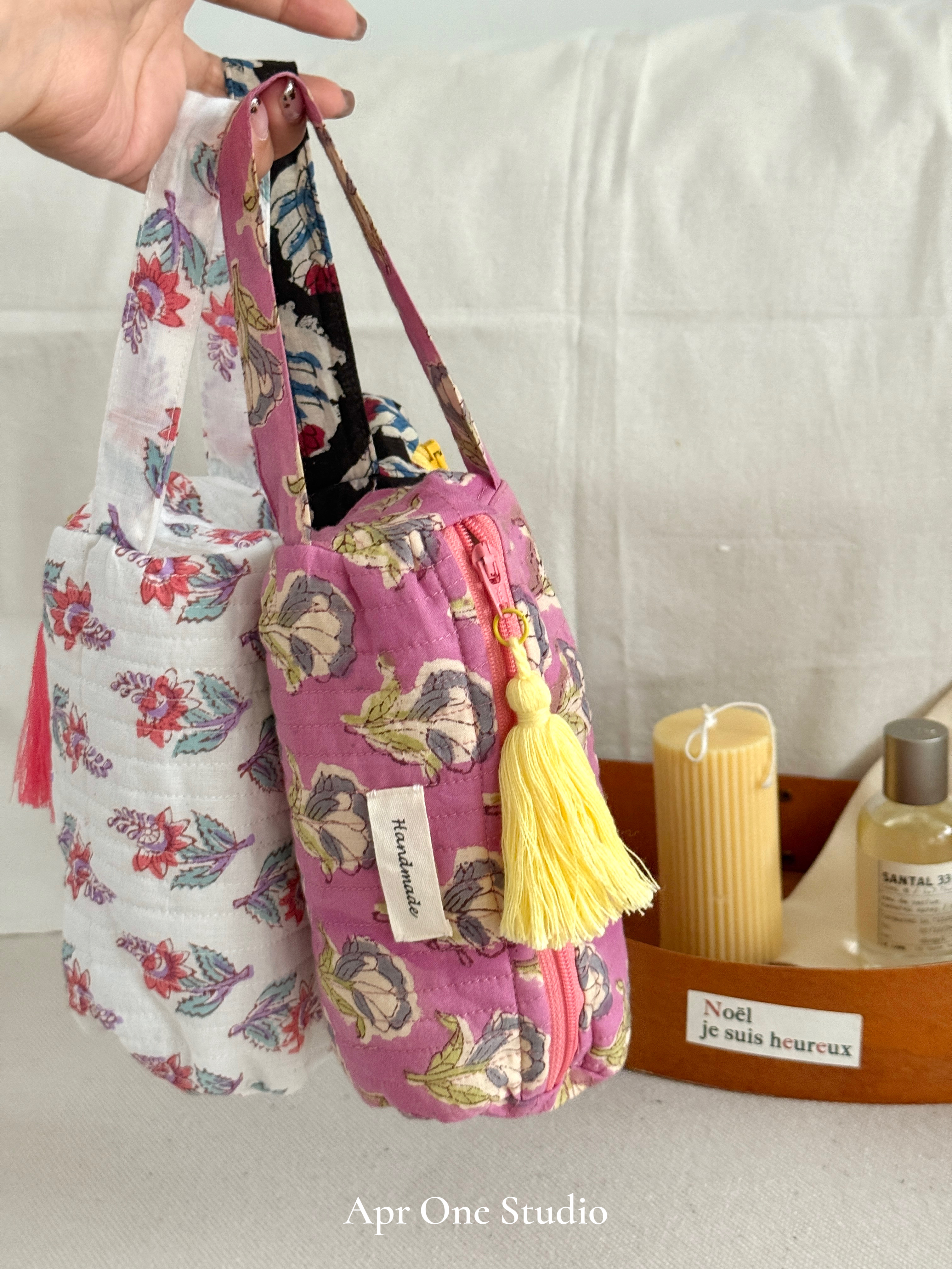 Original Indian Handmade Printed Colorful Cosmetic Bag, Pure Handmade Bag, Handbag, Storage Bag, Clutch Bag, Walking Handbag
