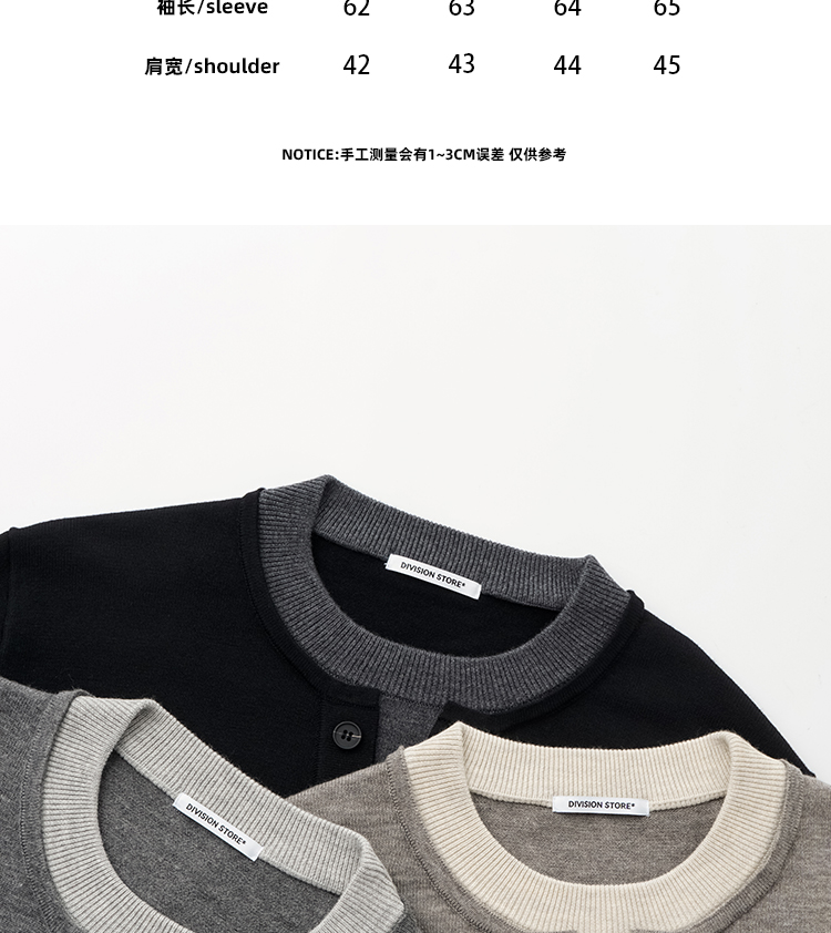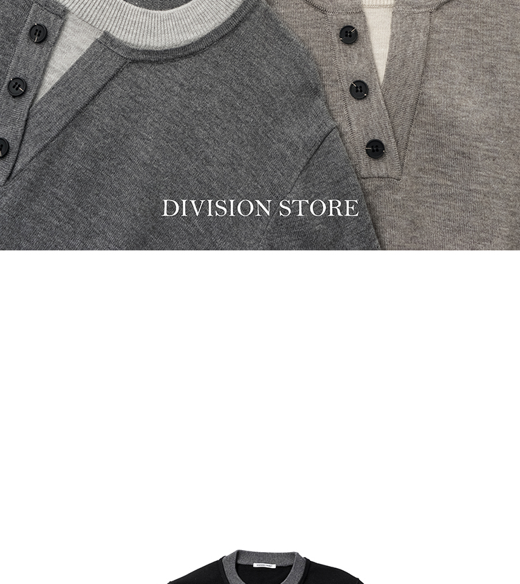 Division Store* Japanese Imported Anti-Pilling Acrylic Wool Blend Fake Two-Piece Henry Collar Knit Sweater