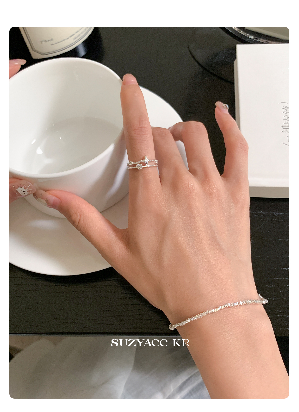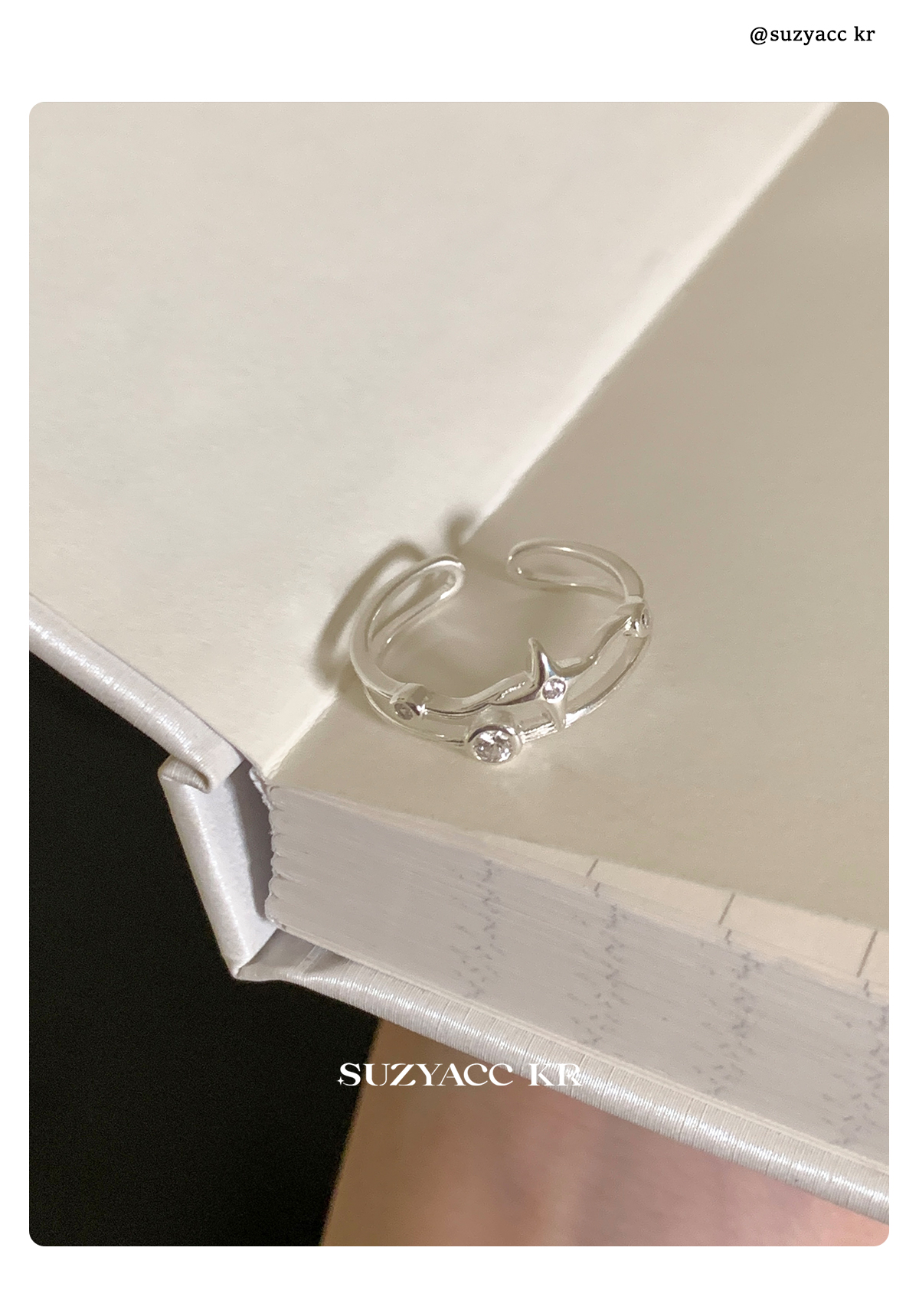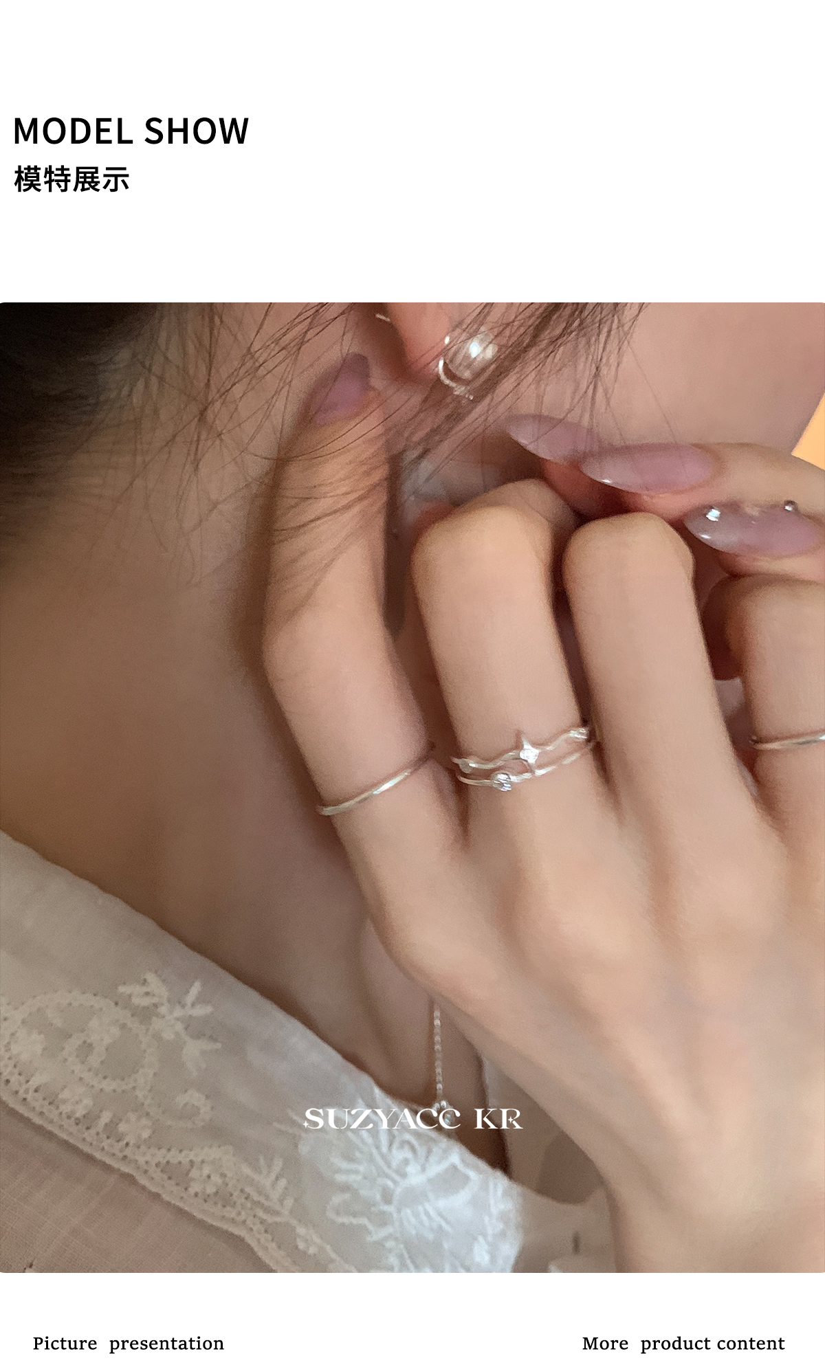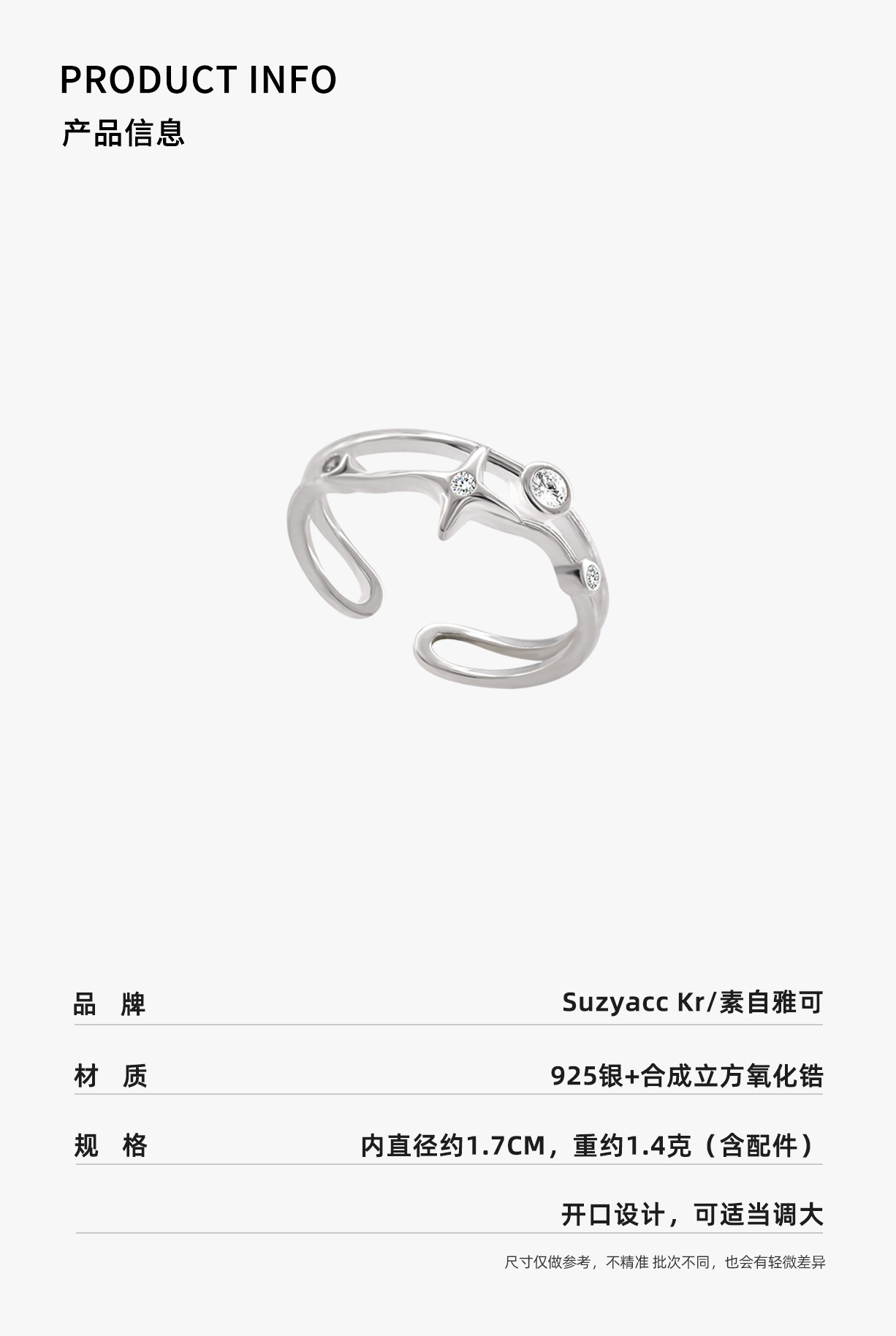 Suzyacc Kr Slim Sterling Silver Four-Pointed Star Synthetic Zircon Double-Layer Ring Niche Design Index Finger Ring