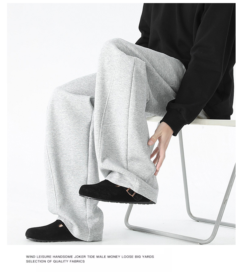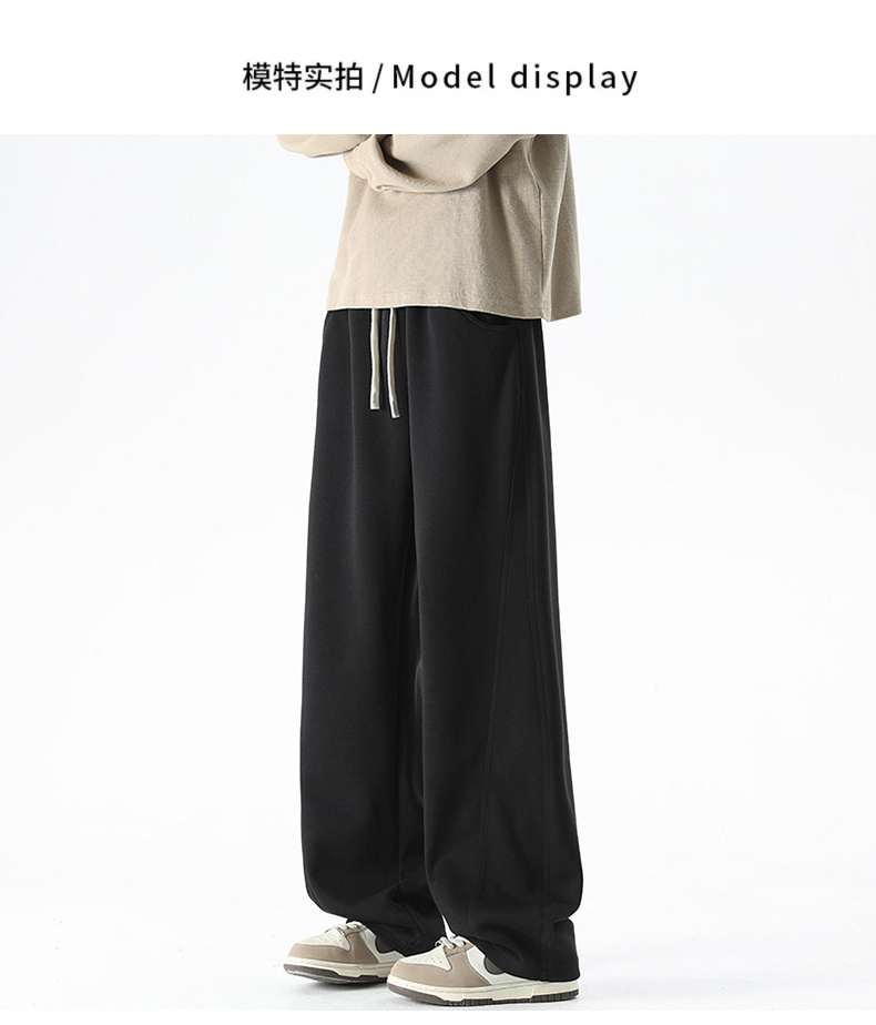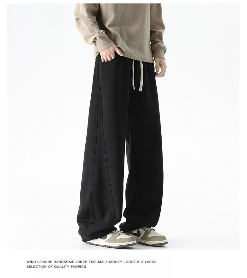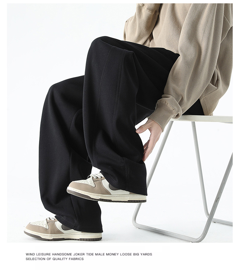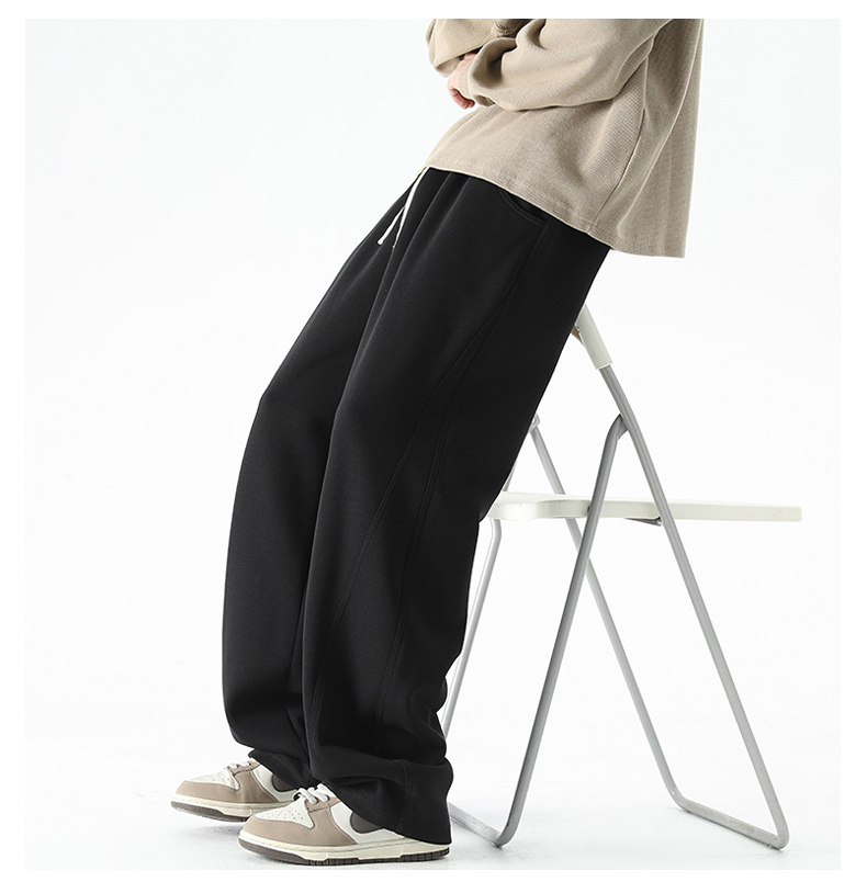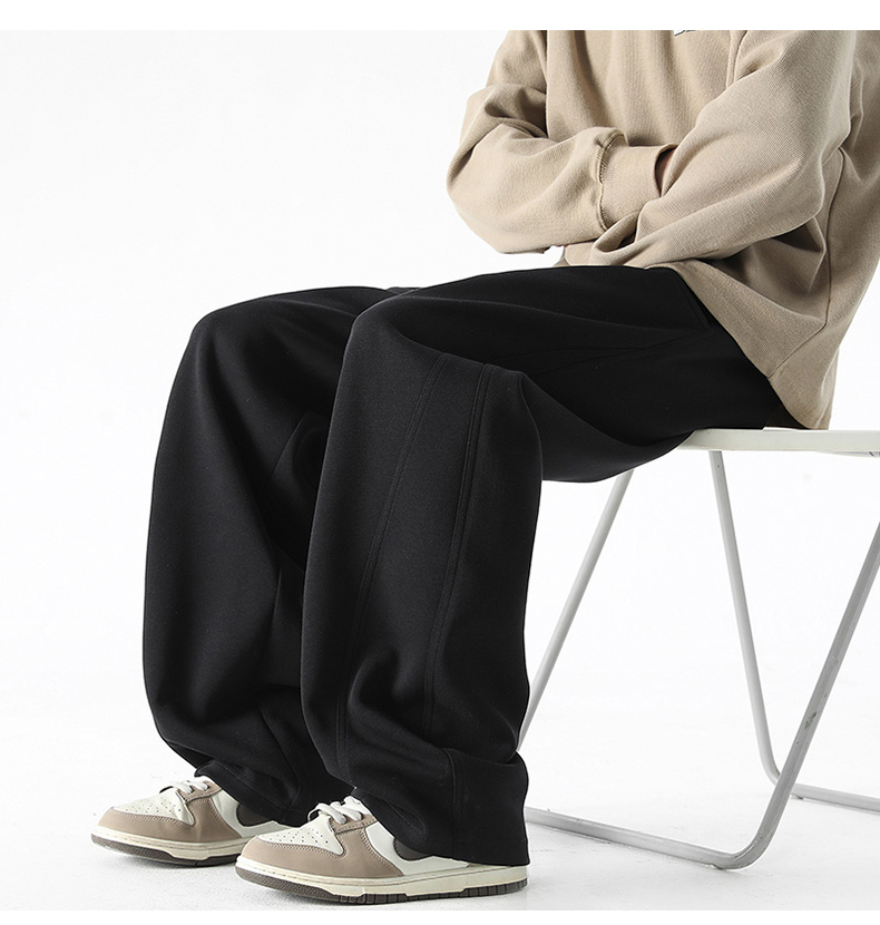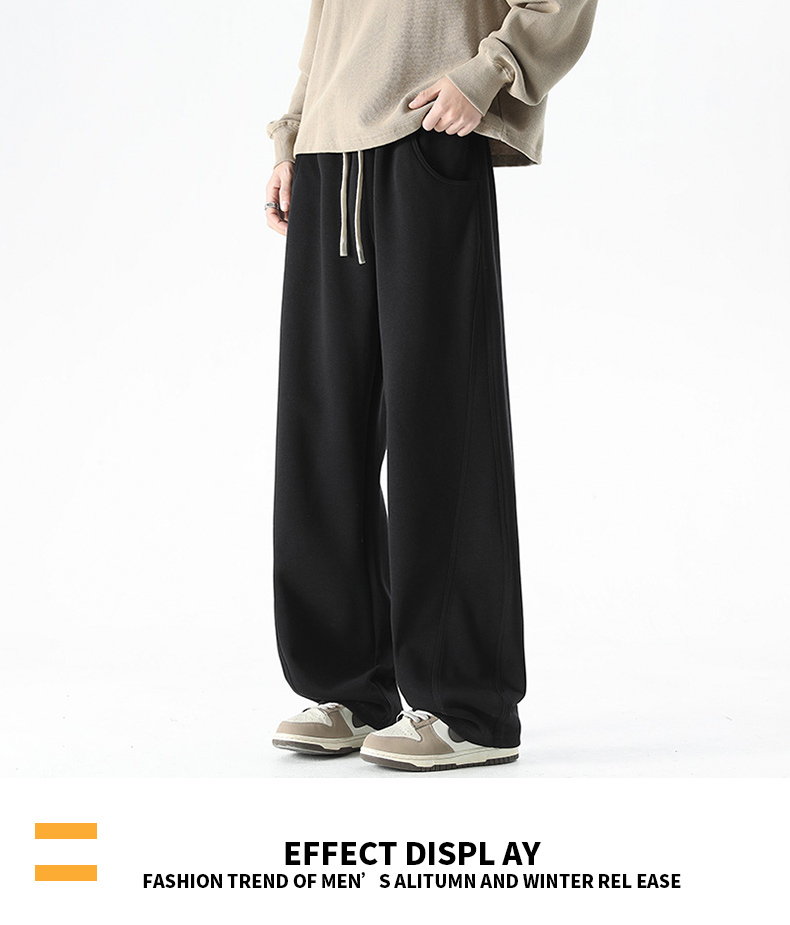 [Ao Ruipeng Endorsement] Geniolamode Black Straight-Leg Casual Pants for Men, Autumn and Winter Fleece-Lined Curved Knife Sweatpants