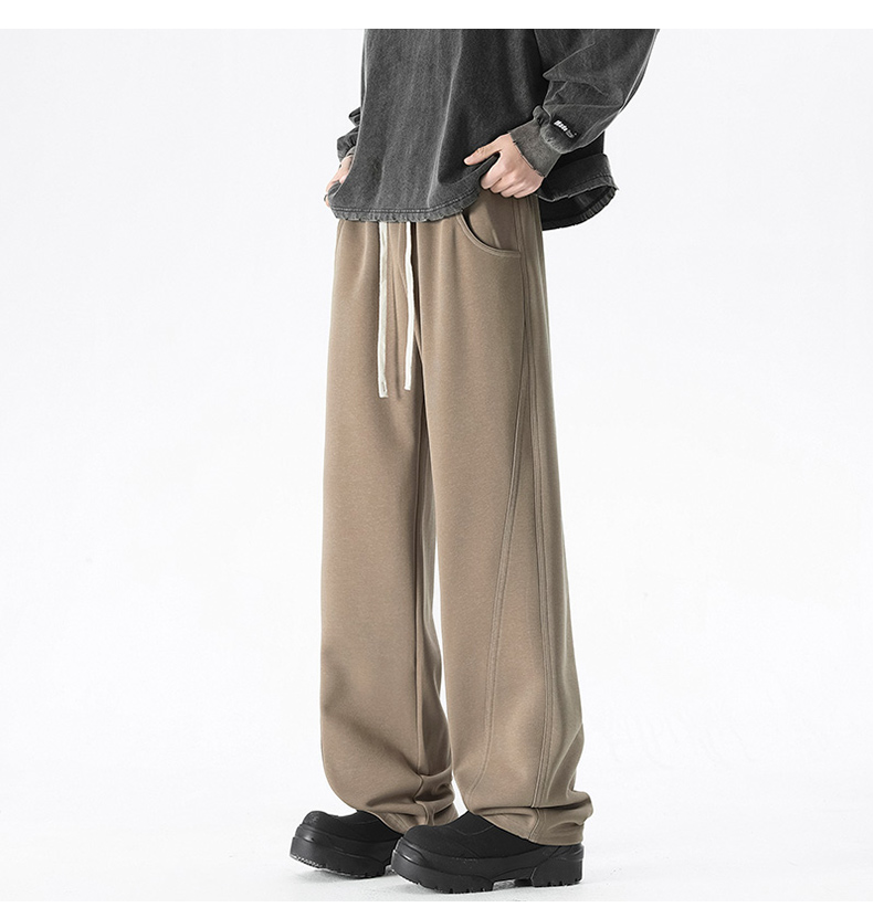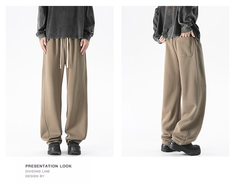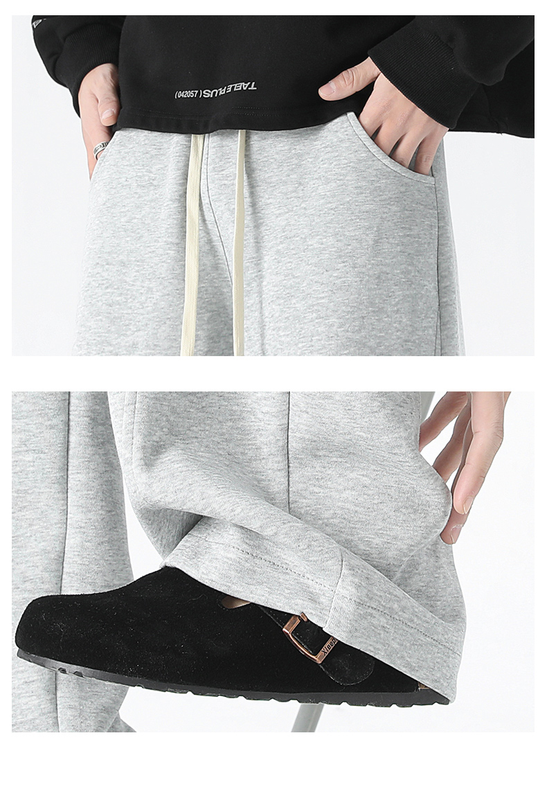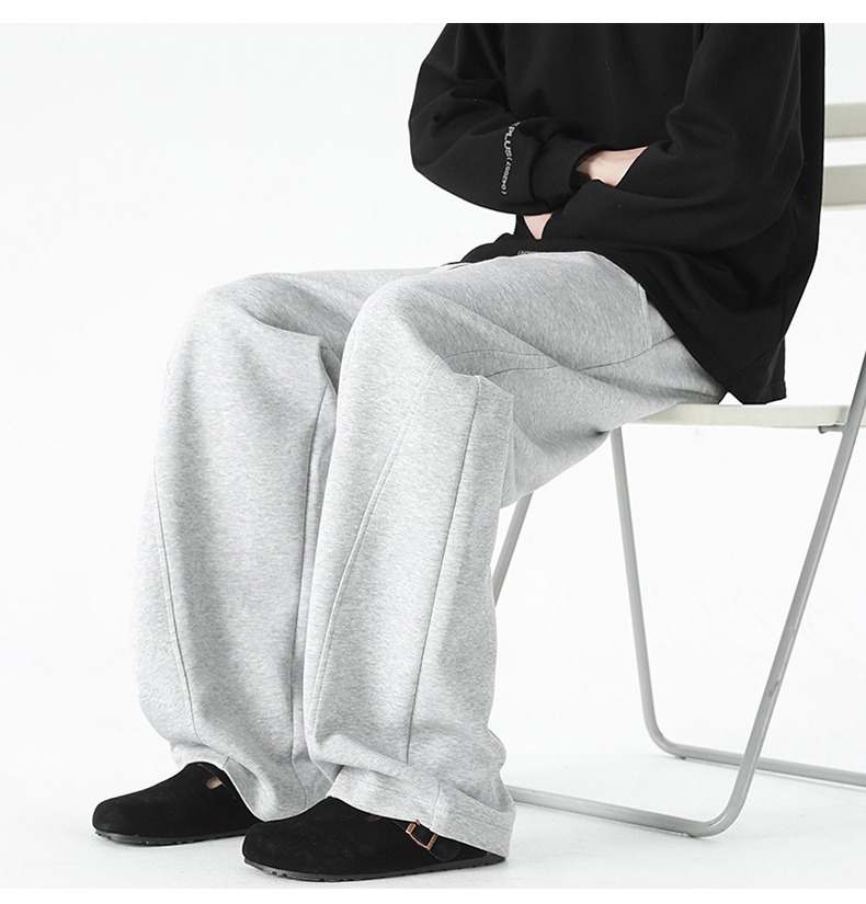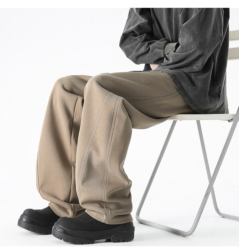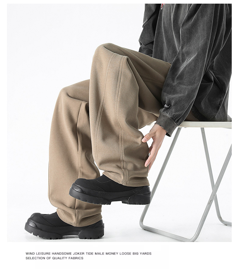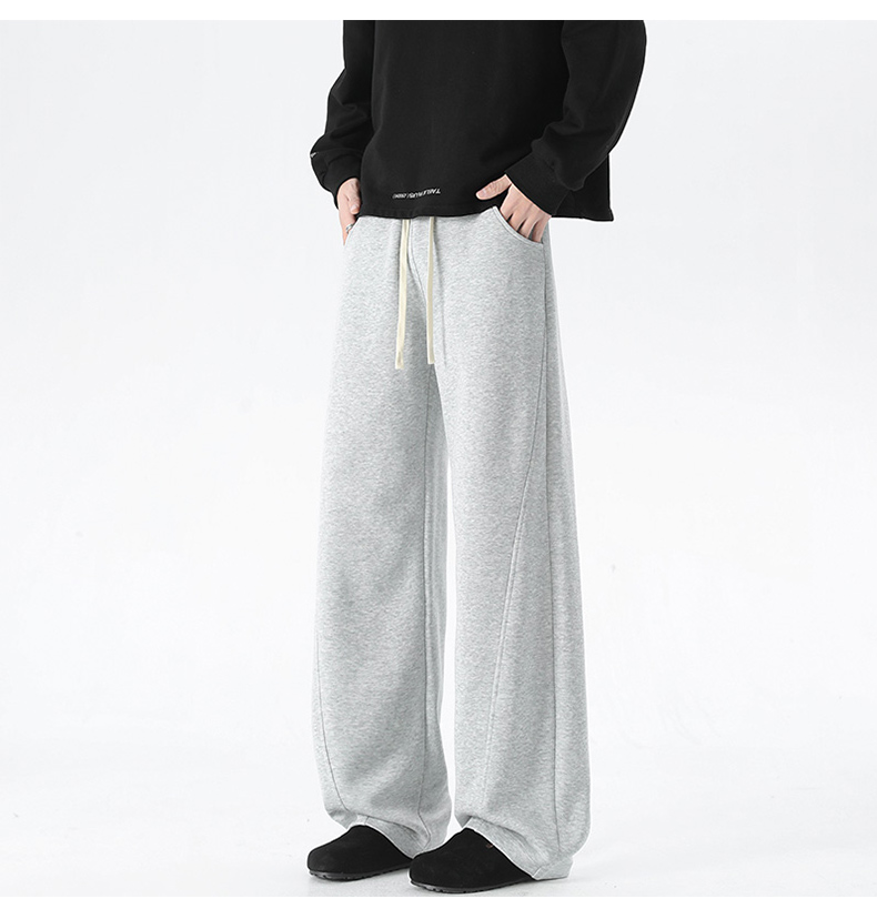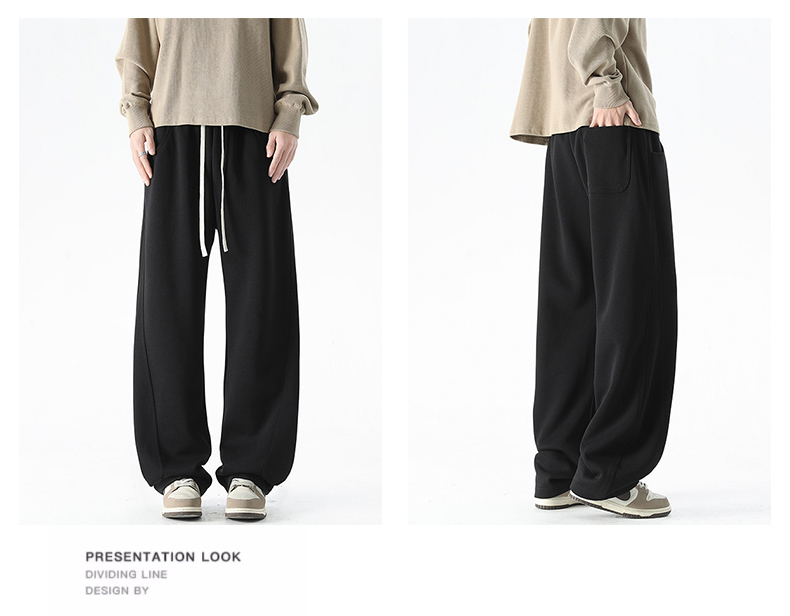 [Ao Ruipeng Endorsement] Geniolamode Black Straight-Leg Casual Pants for Men, Autumn and Winter Fleece-Lined Curved Knife Sweatpants