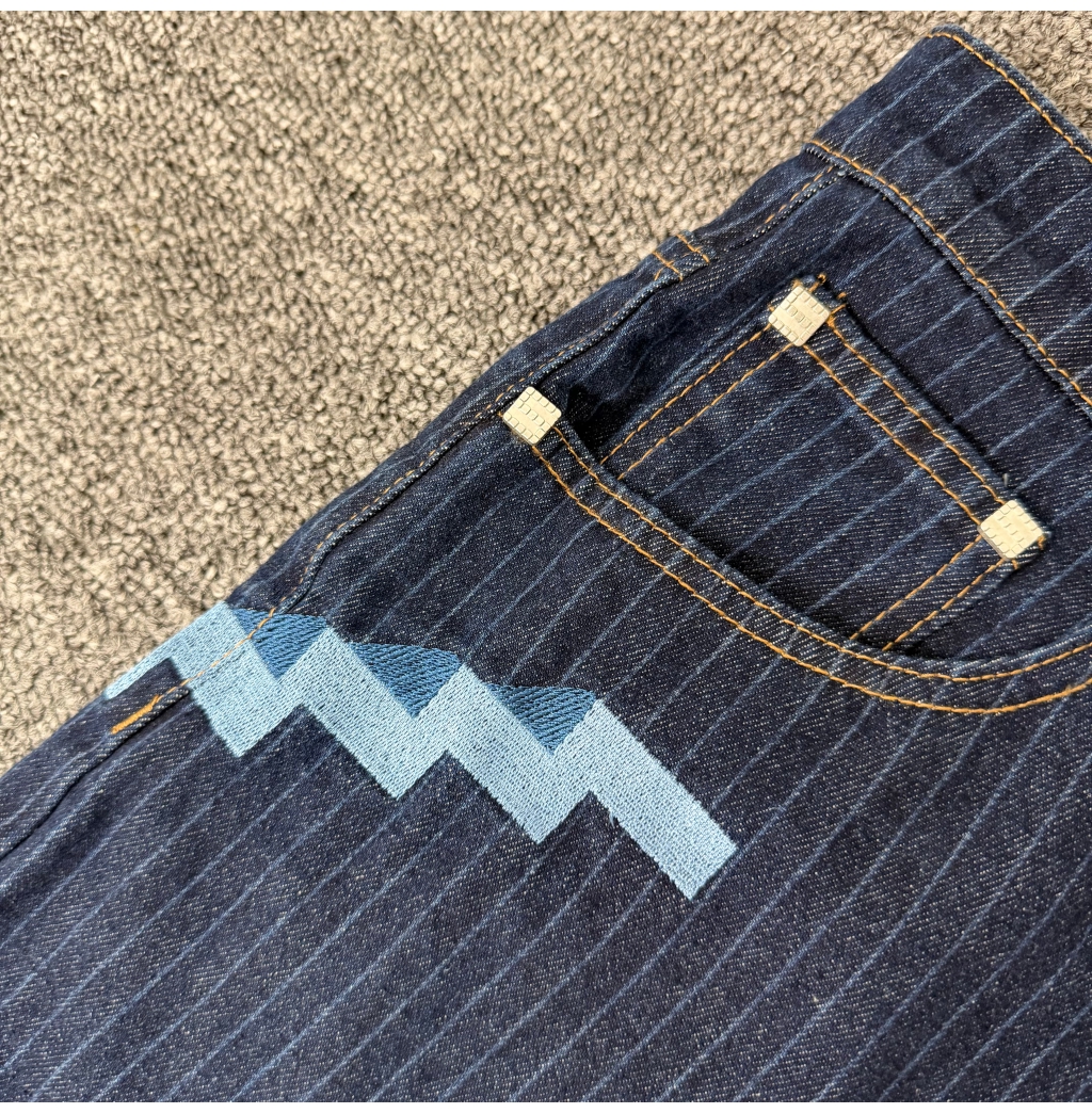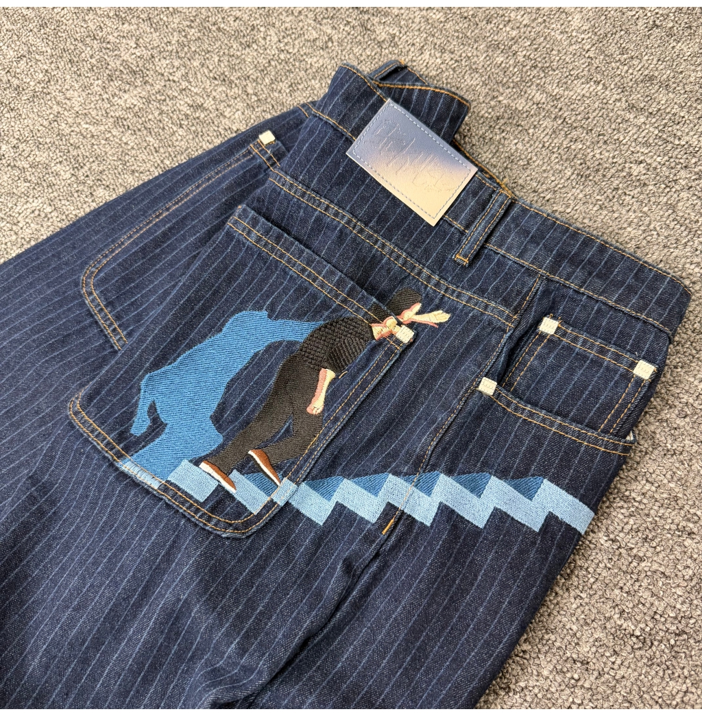 Derschutze Gallery Denim Jeans High Street Embroidery Trendy Casual Fashion Straight-Leg Jeans