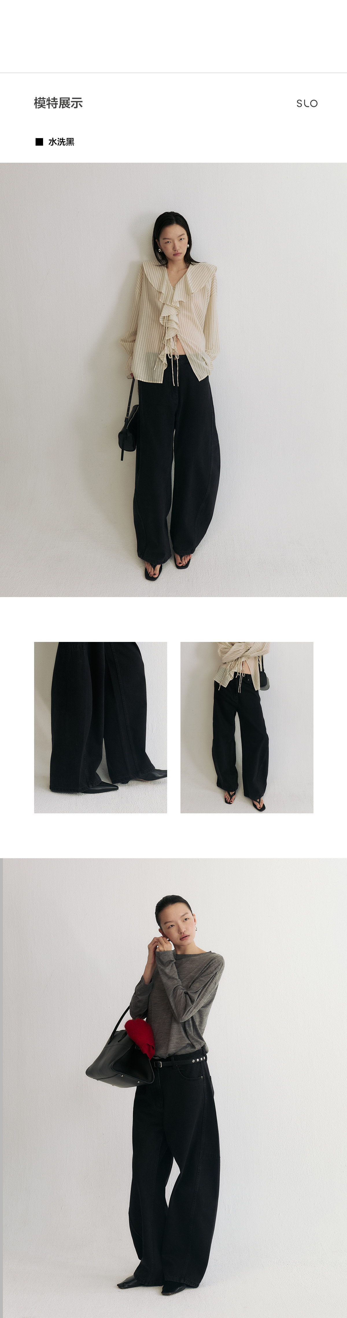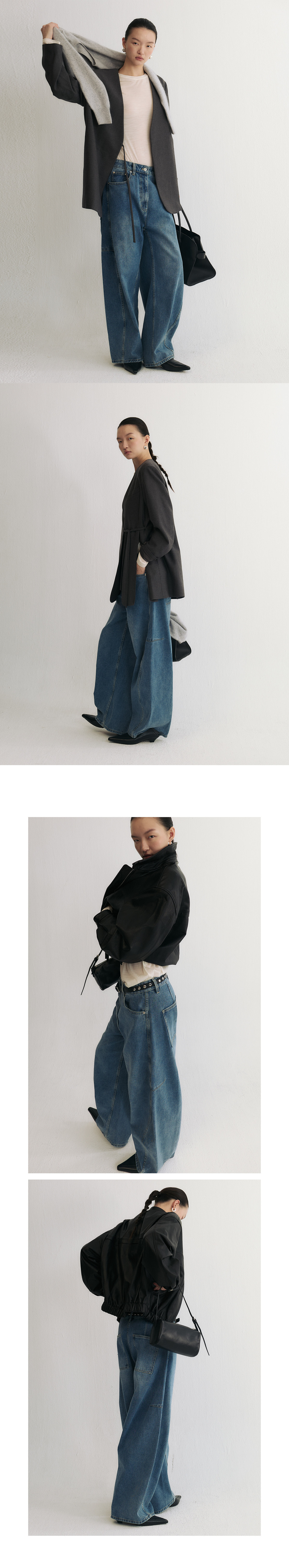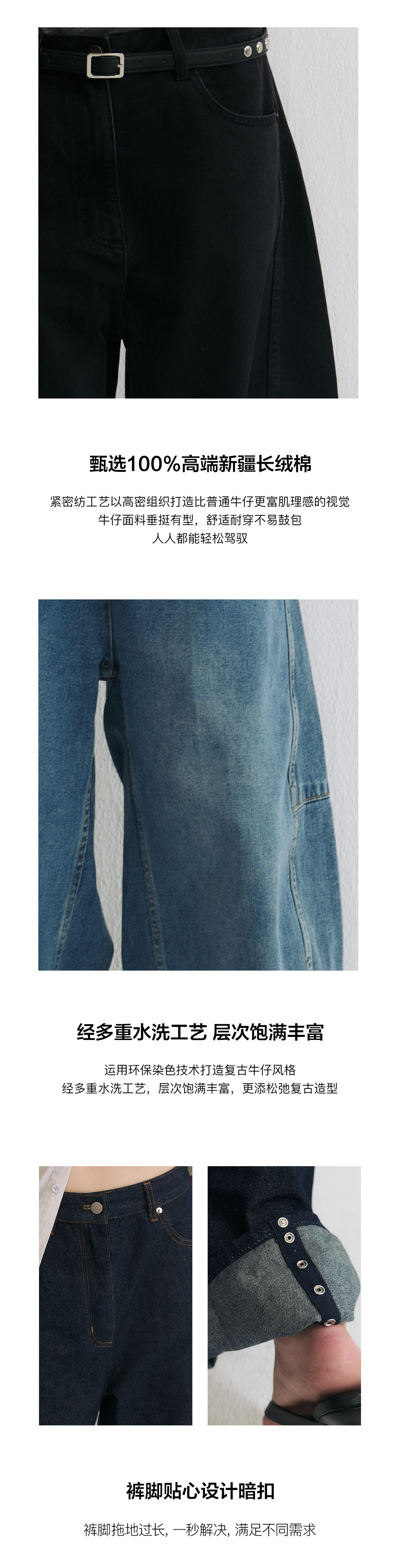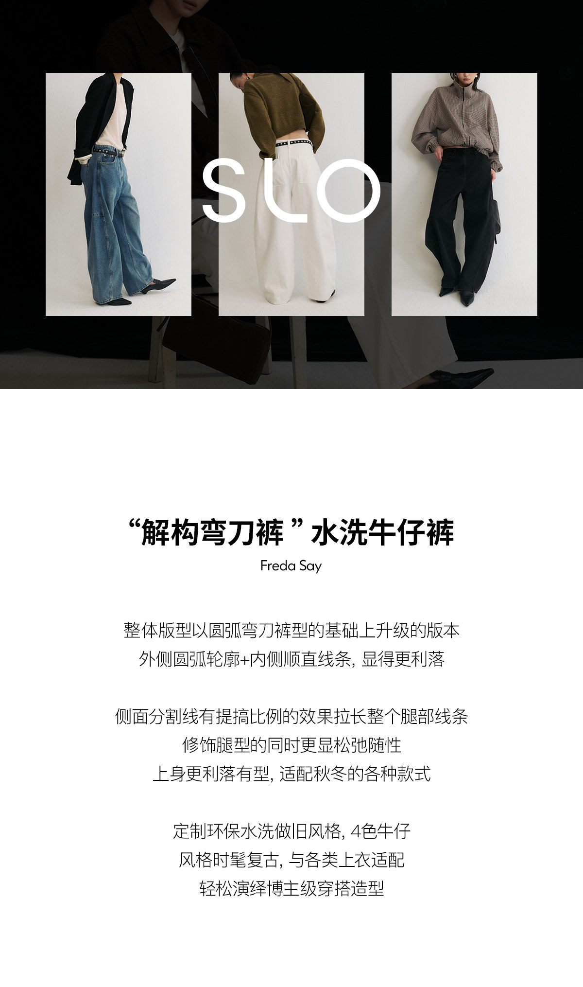 Slo【Ni Ni's Style】 "Deconstructed Scimitar Pants" Washed Denim Wide-Leg Loose Fashionable Long Pants for Women