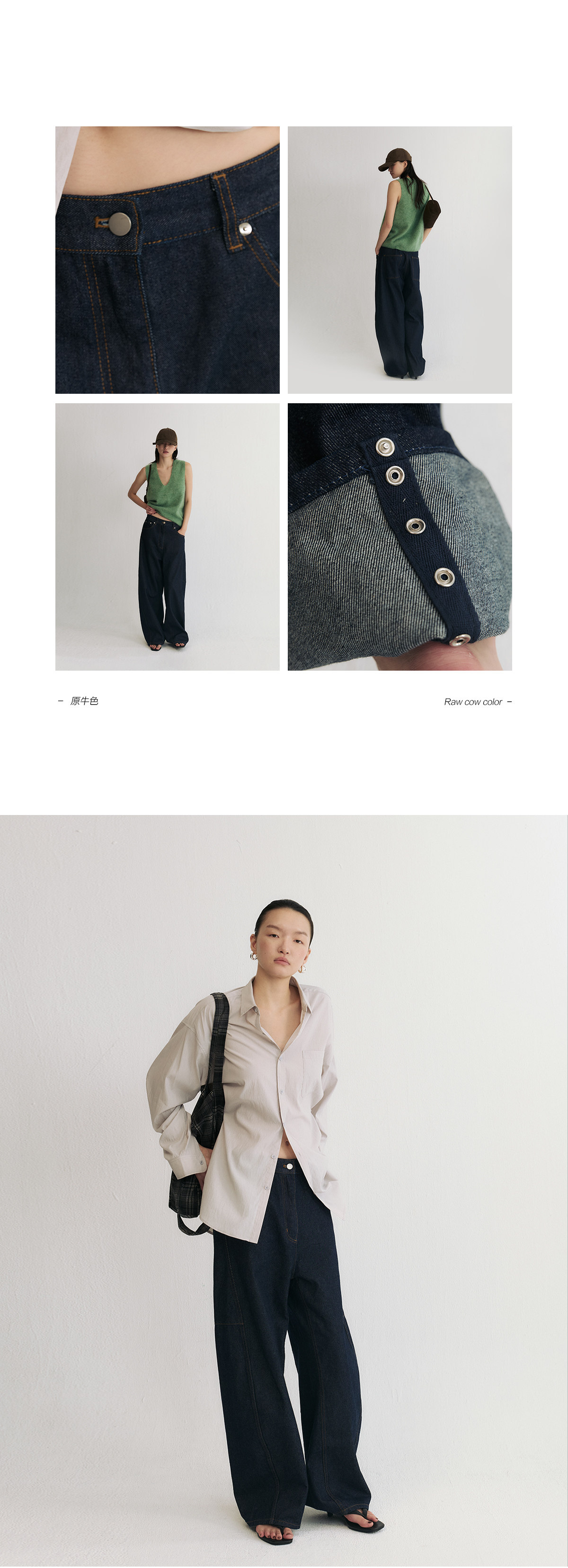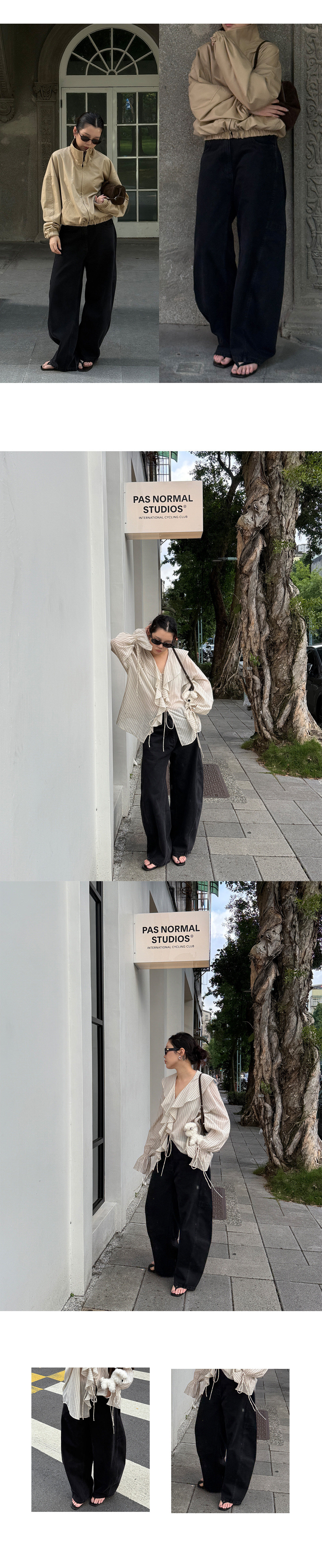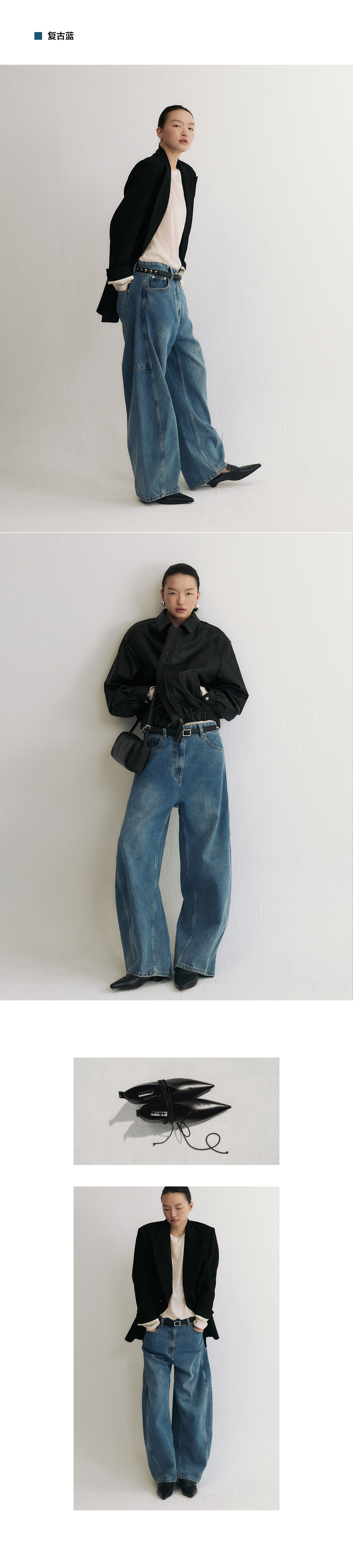 Slo【Ni Ni's Style】 "Deconstructed Scimitar Pants" Washed Denim Wide-Leg Loose Fashionable Long Pants for Women