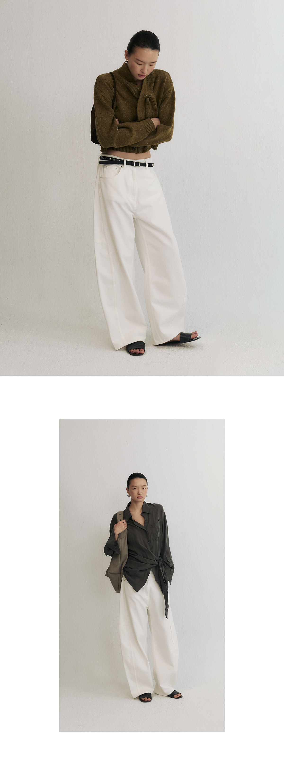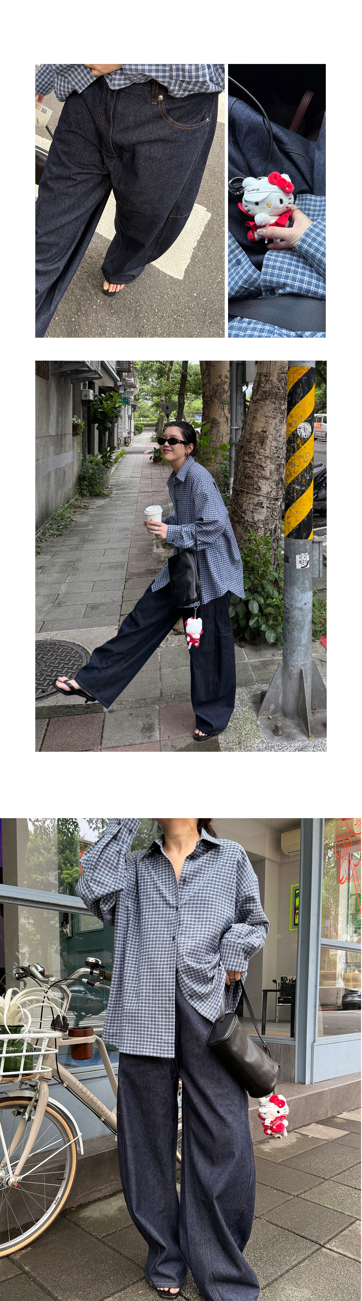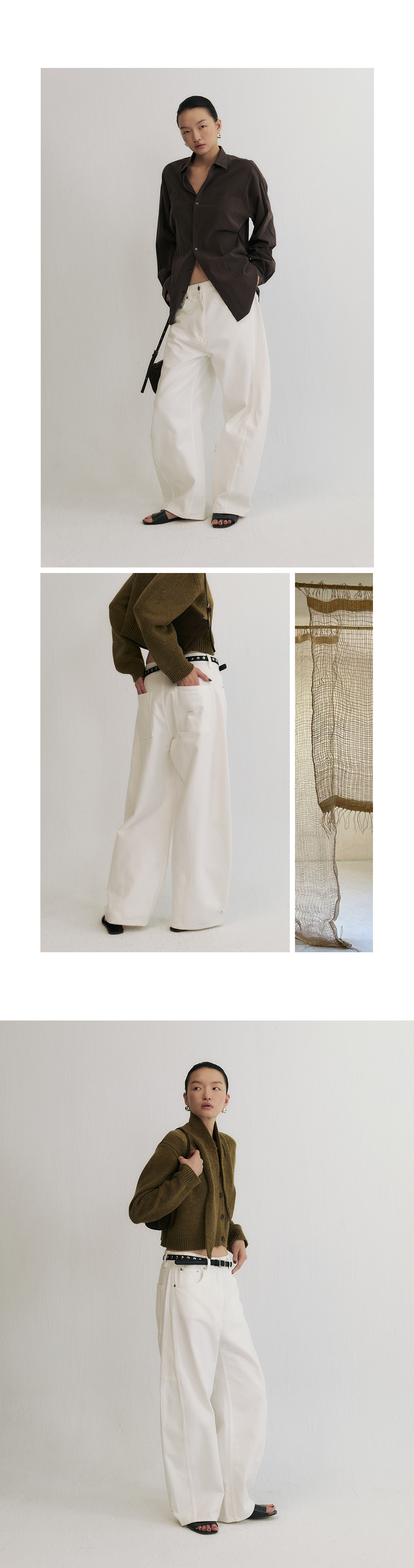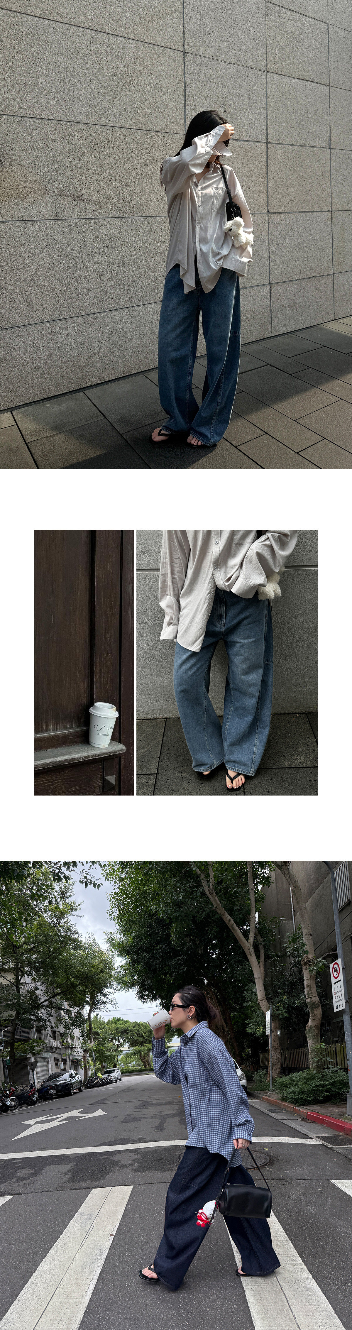 Slo【Ni Ni's Style】 "Deconstructed Scimitar Pants" Washed Denim Wide-Leg Loose Fashionable Long Pants for Women