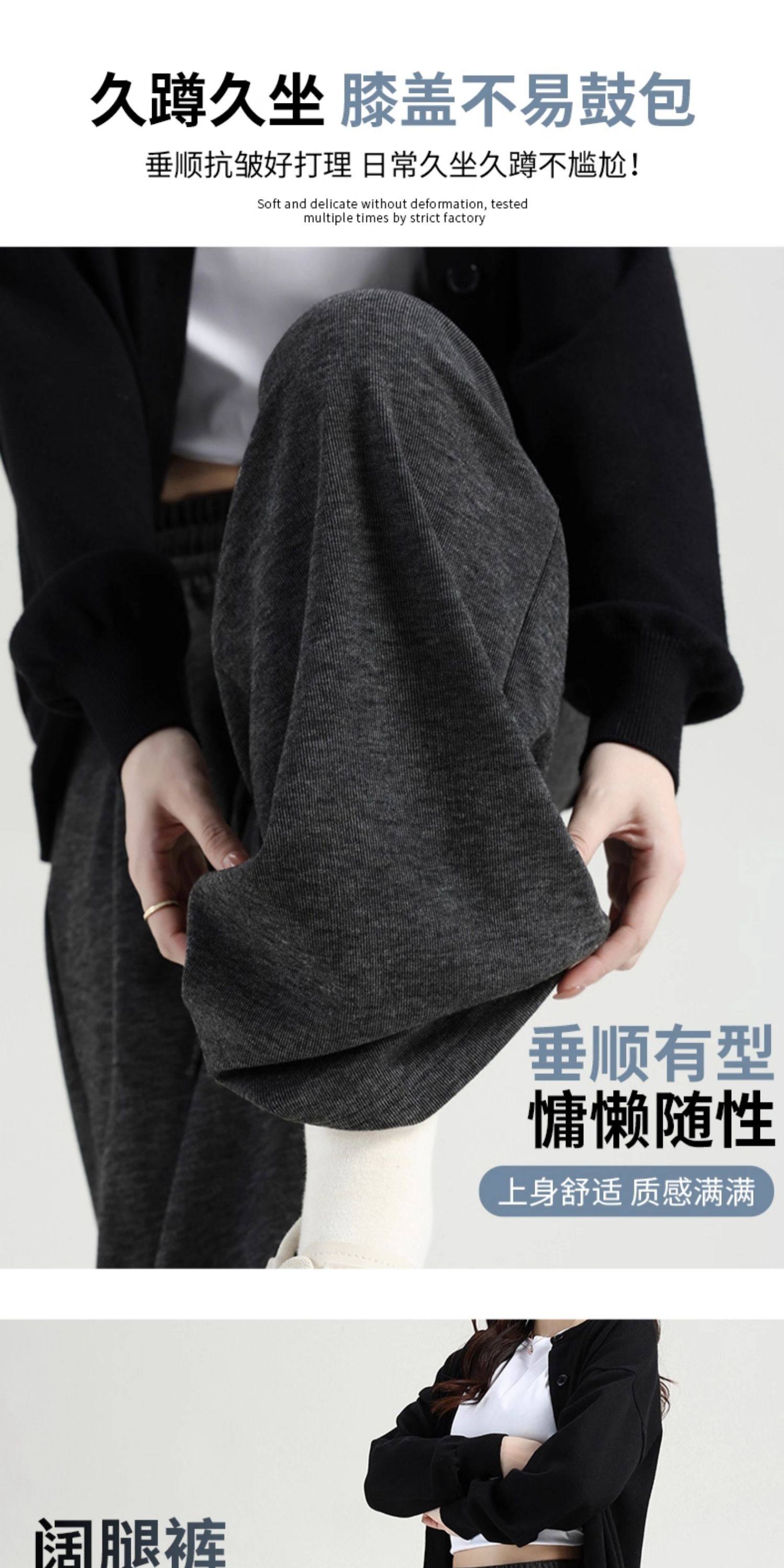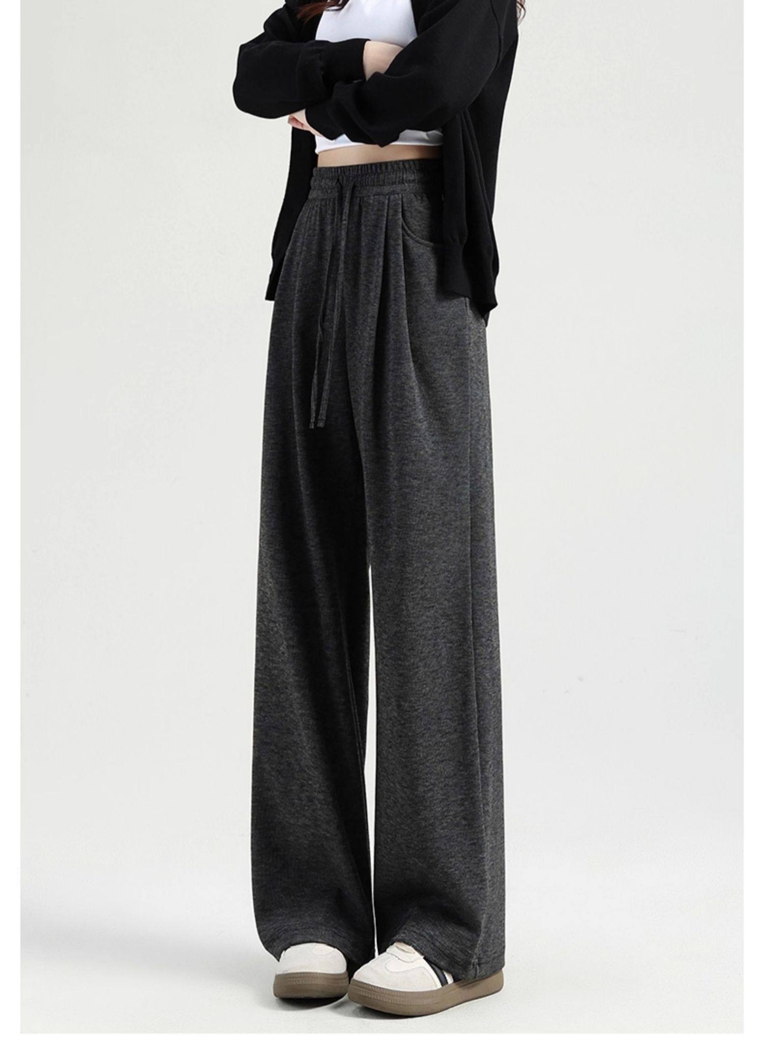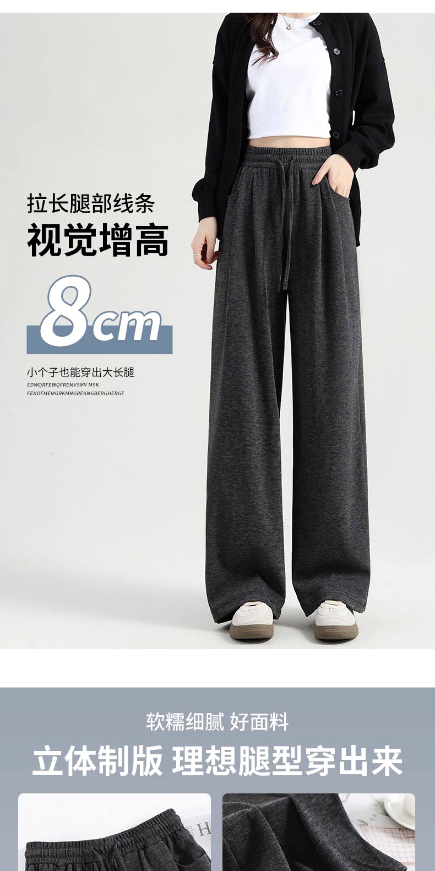 Glutinous Rice Pants for Women 2026 New Spring Popular Casual Straight-Leg Petite Drapey Soft Gray Fleece-Lined Wide-Leg Pants