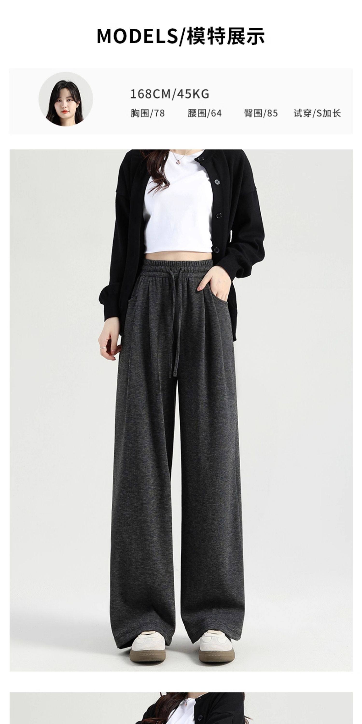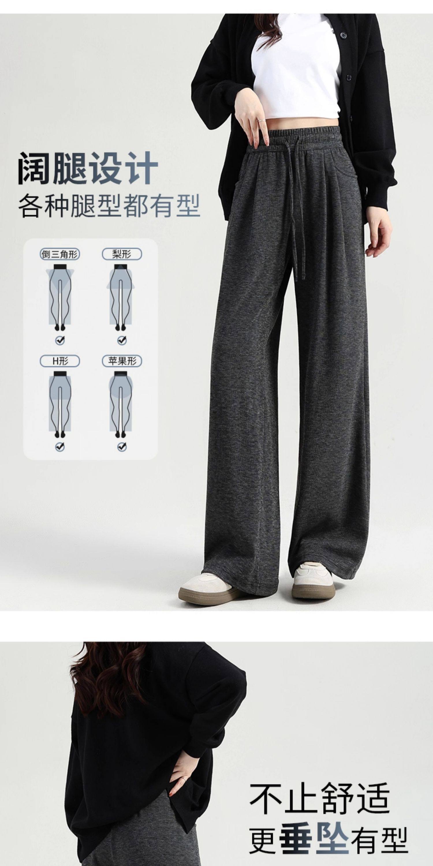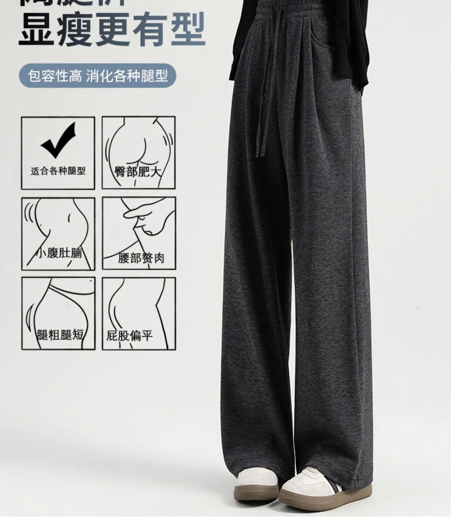 Glutinous Rice Pants for Women 2026 New Spring Popular Casual Straight-Leg Petite Drapey Soft Gray Fleece-Lined Wide-Leg Pants