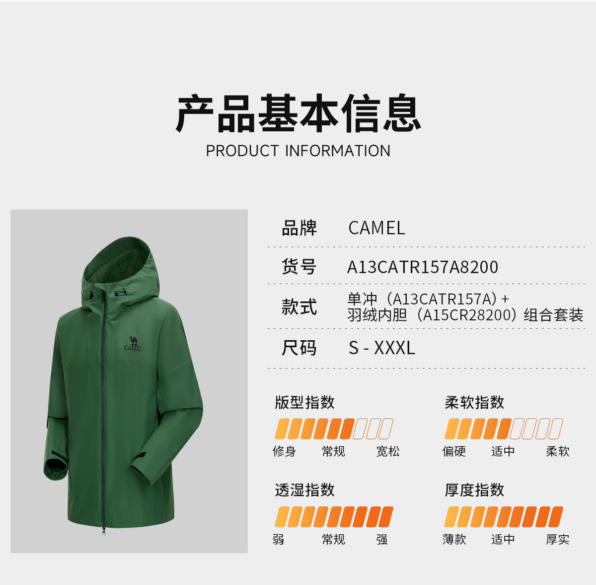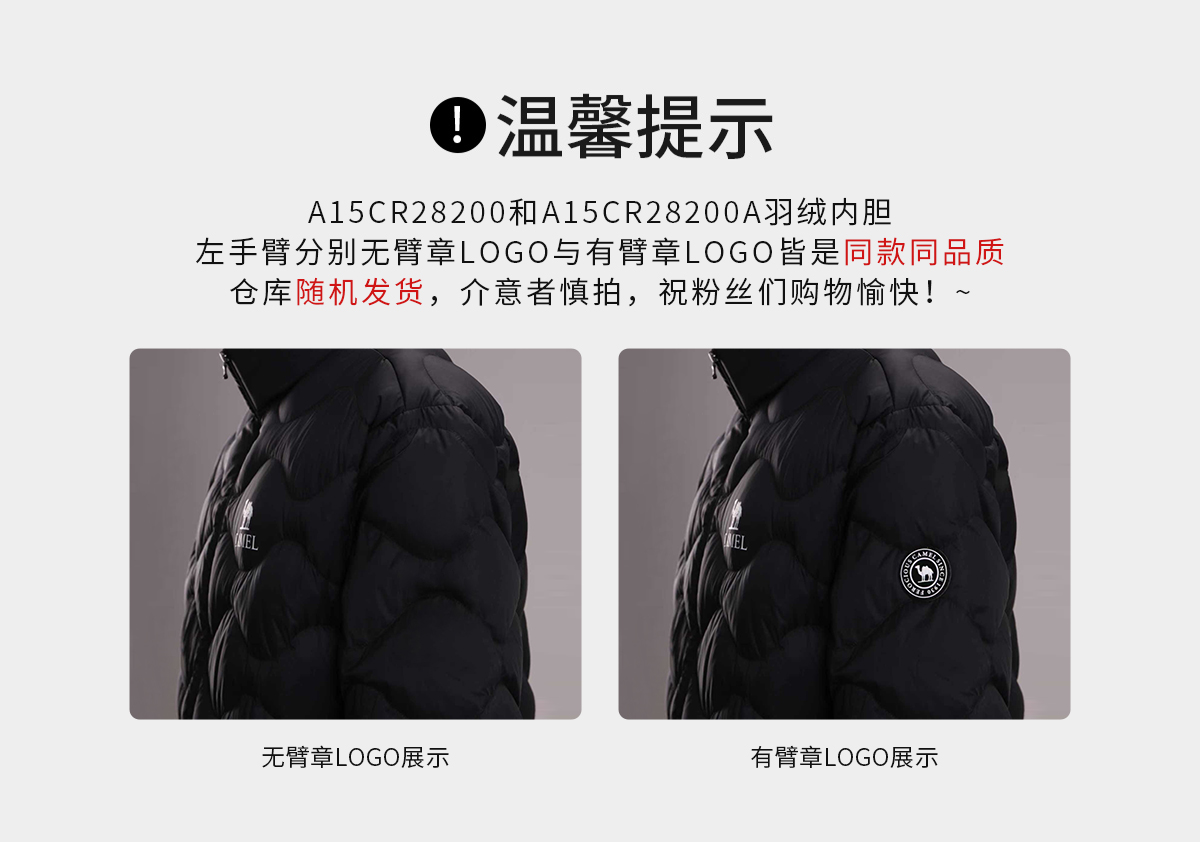 A13CATR157A8200/A13CATR157A8200A是组合套装,是由外壳A13CATR157A,羽绒内胆A15CR28200/A15CR28200A组合。其套装是无三点式链接,无拉链链接,仅组合套装穿搭。发货方式可能会分仓库或同一个仓库发货,骆驼粉丝们,请注意查收!介意者慎拍,祝粉丝们购物愉快!!!