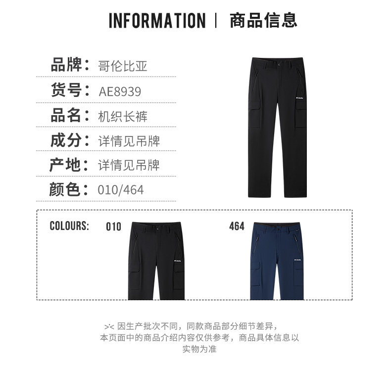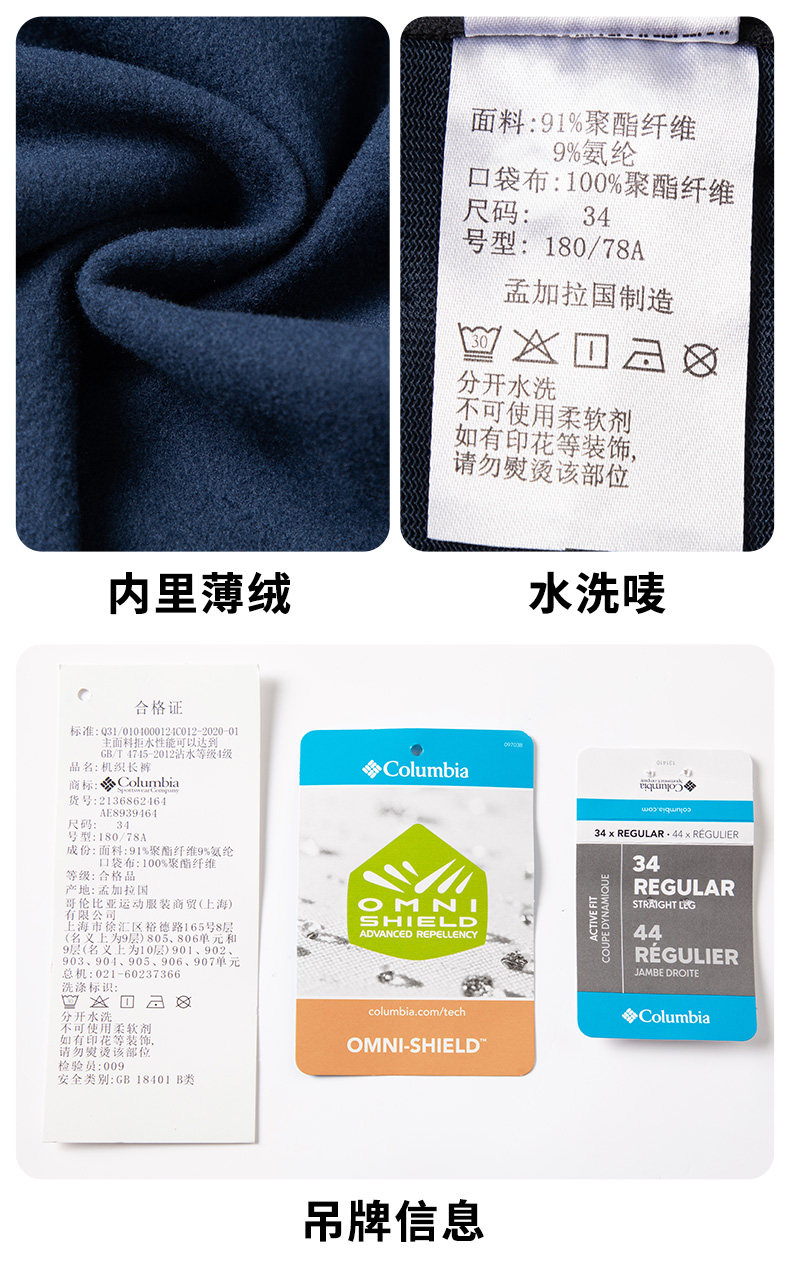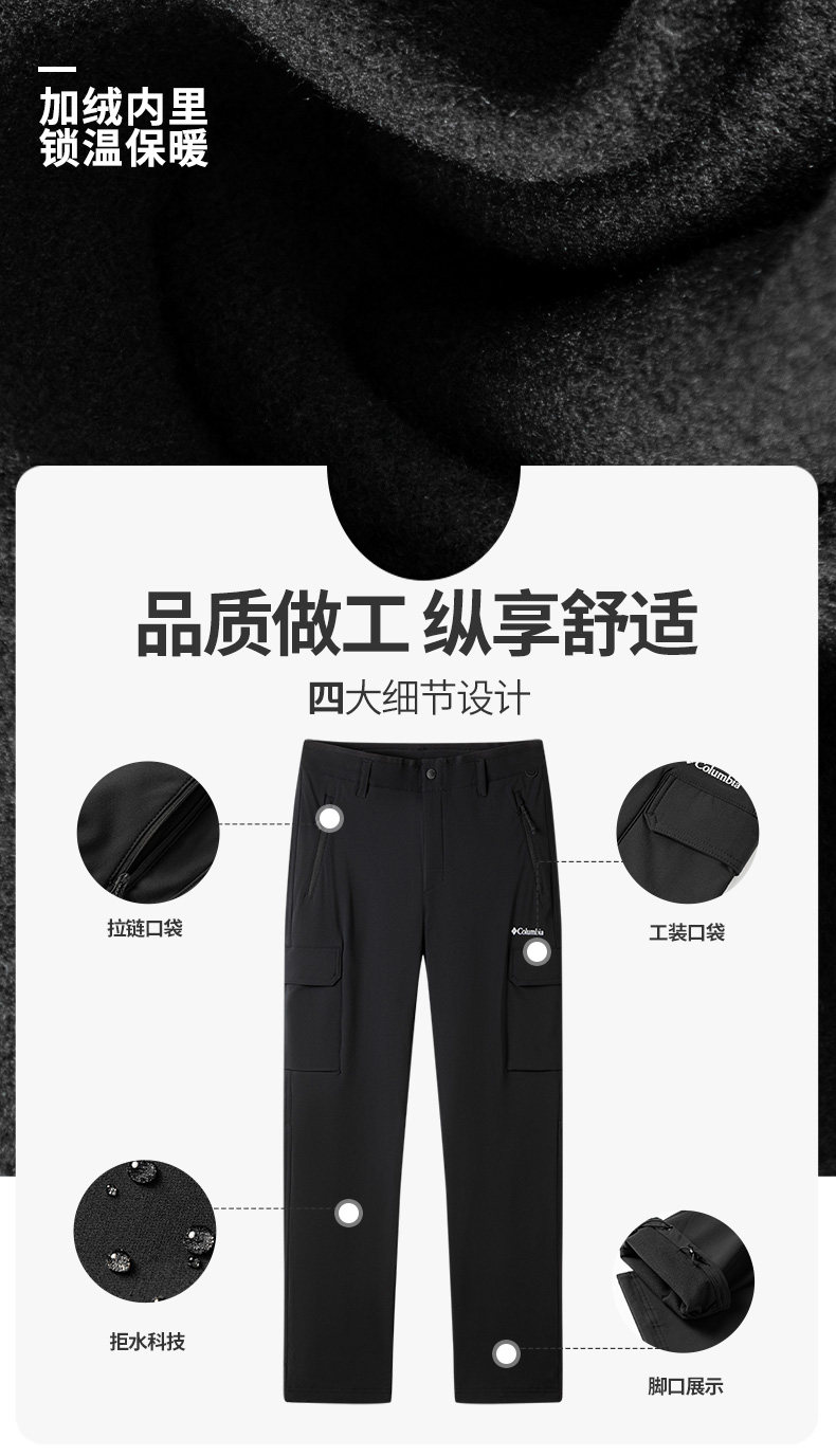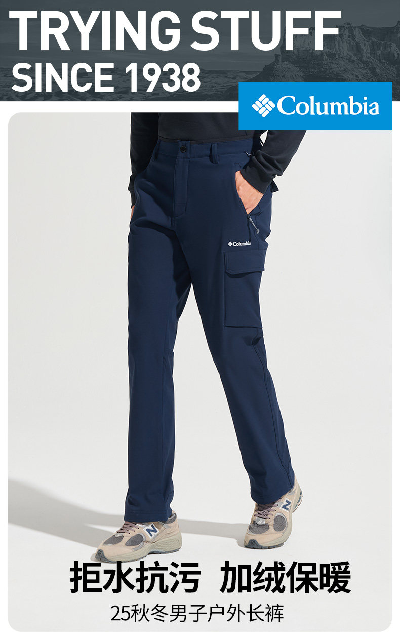 Columbia Men's Pants 25 Autumn and Winter Outdoor Water-Repellent Fleece-Lined Warm Casual Pants Ae8939