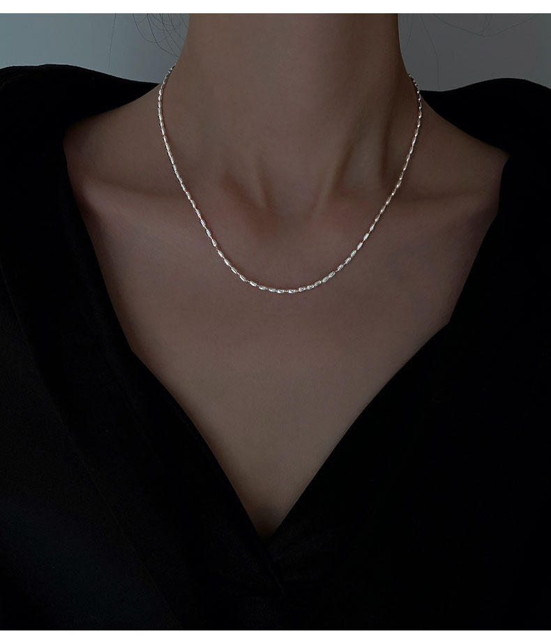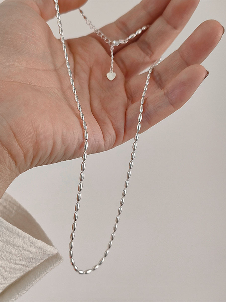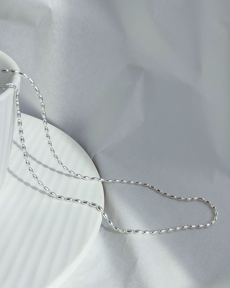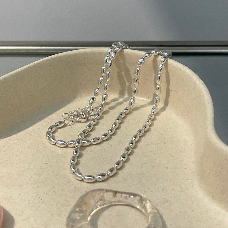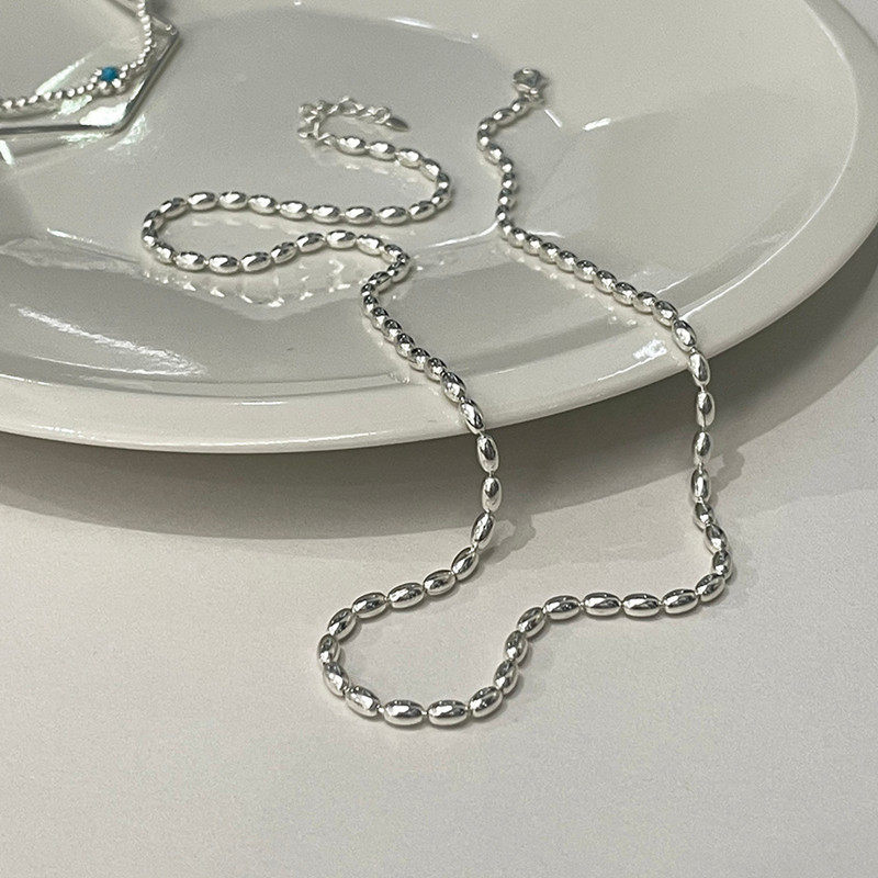 S999 Pure Silver Stacked Rice Bead Olive Bead Necklace for Women, Simple and Versatile Round Bead Sterling Silver Clavicle Chain, Gift for Best Friend