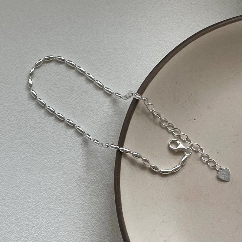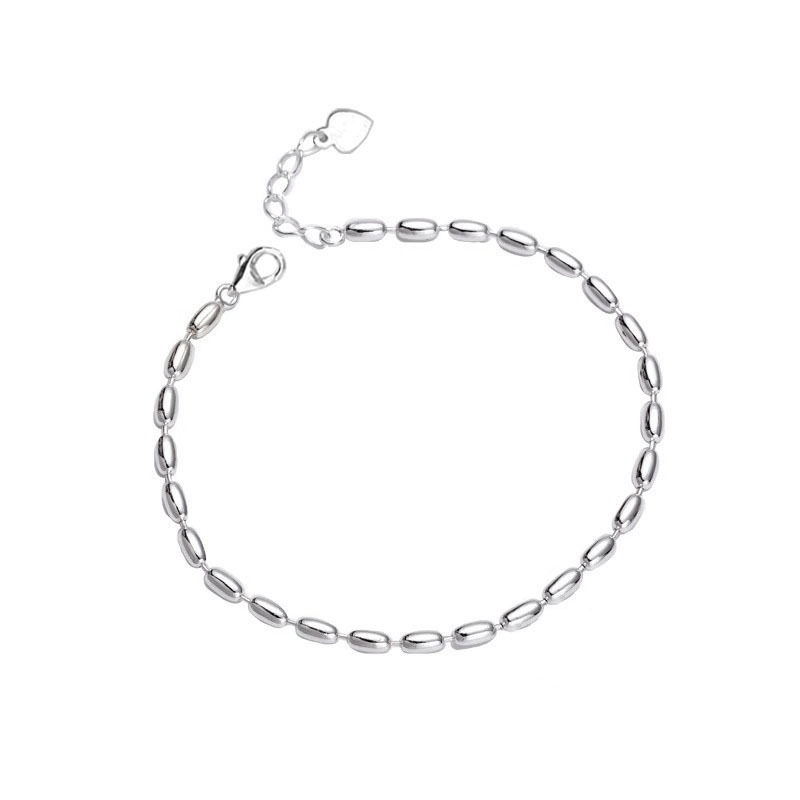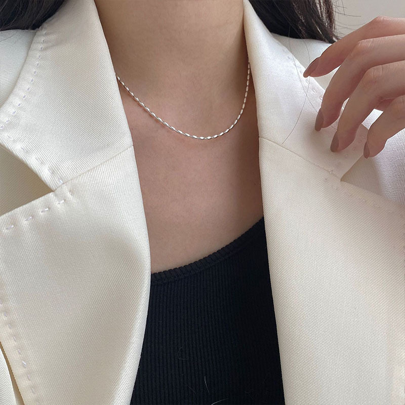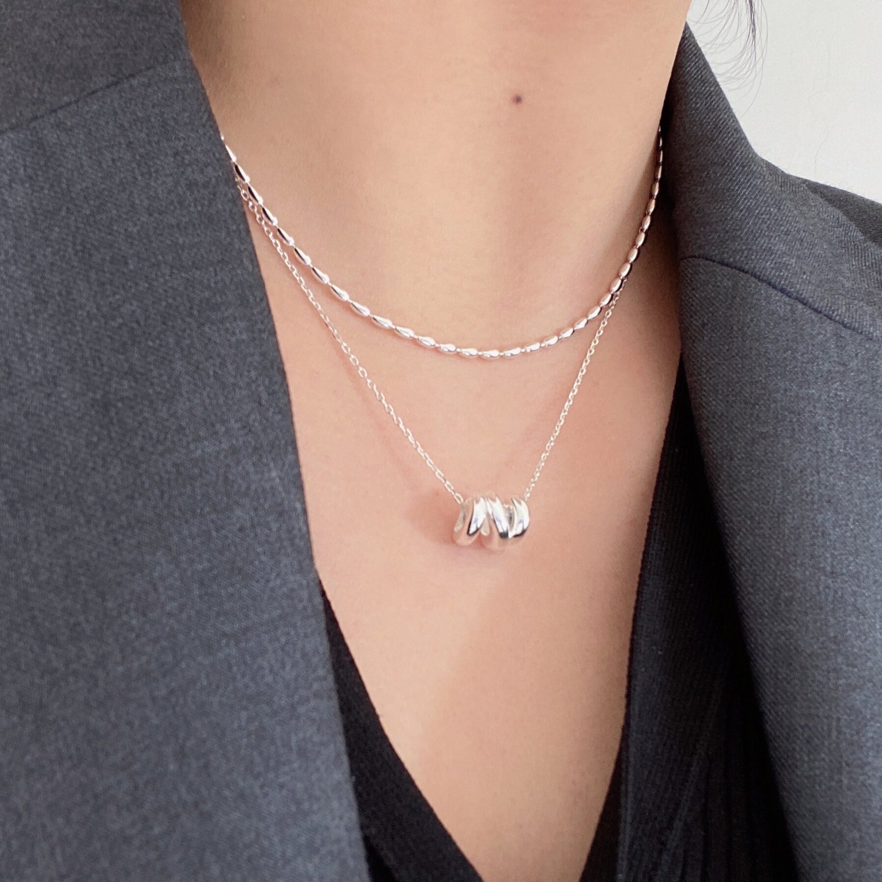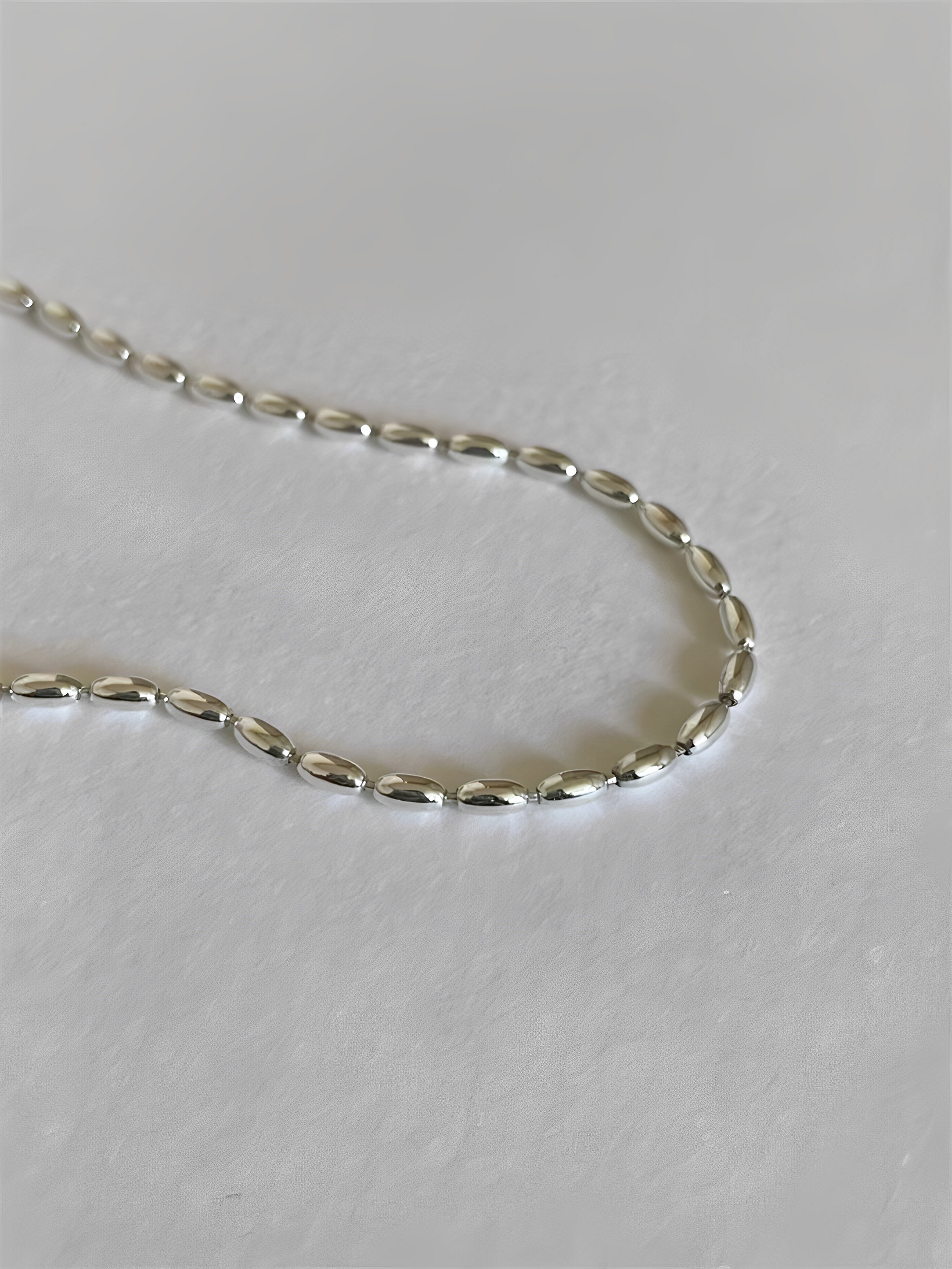 S999 Pure Silver Stacked Rice Bead Olive Bead Necklace for Women, Simple and Versatile Round Bead Sterling Silver Clavicle Chain, Gift for Best Friend