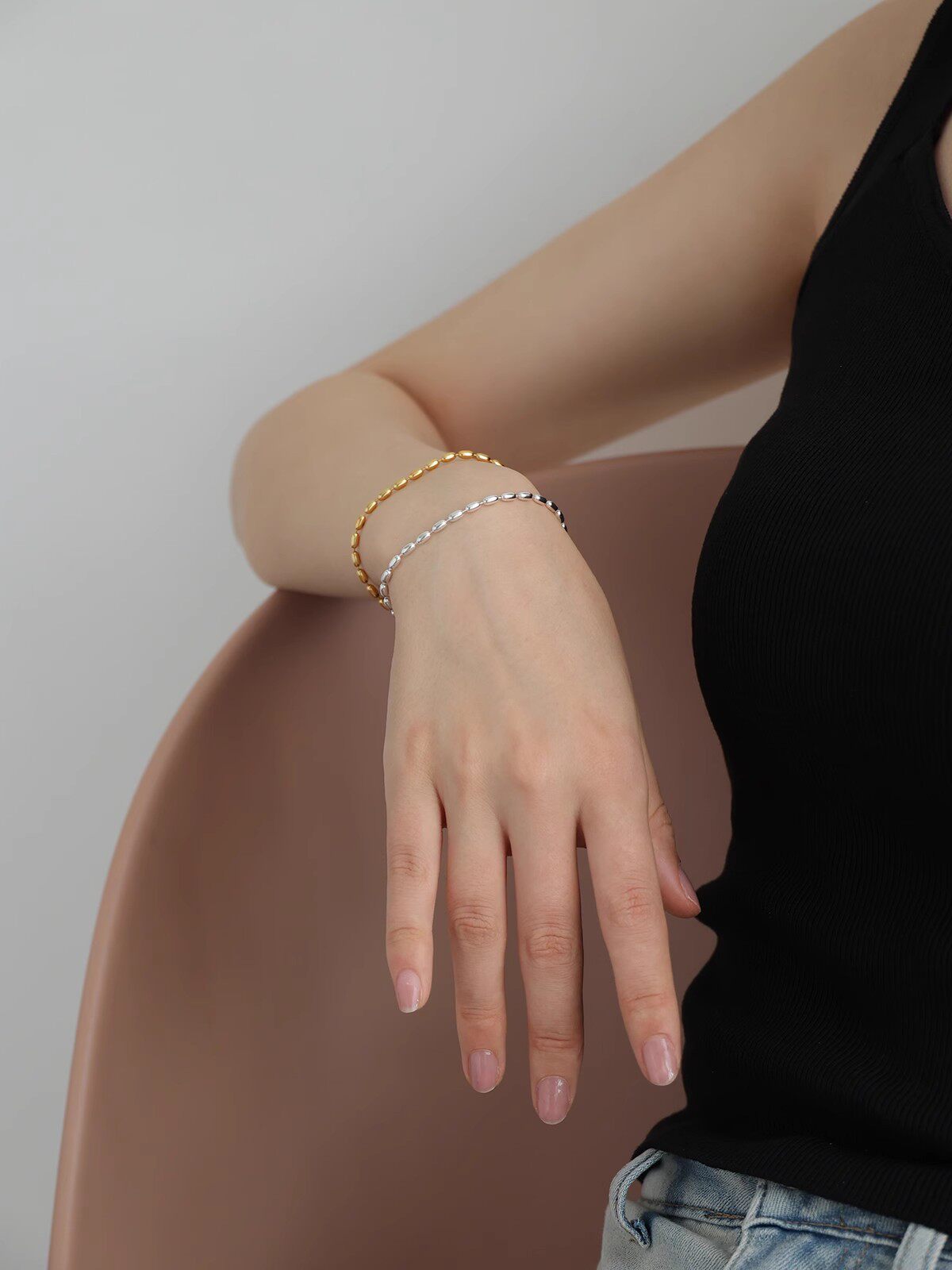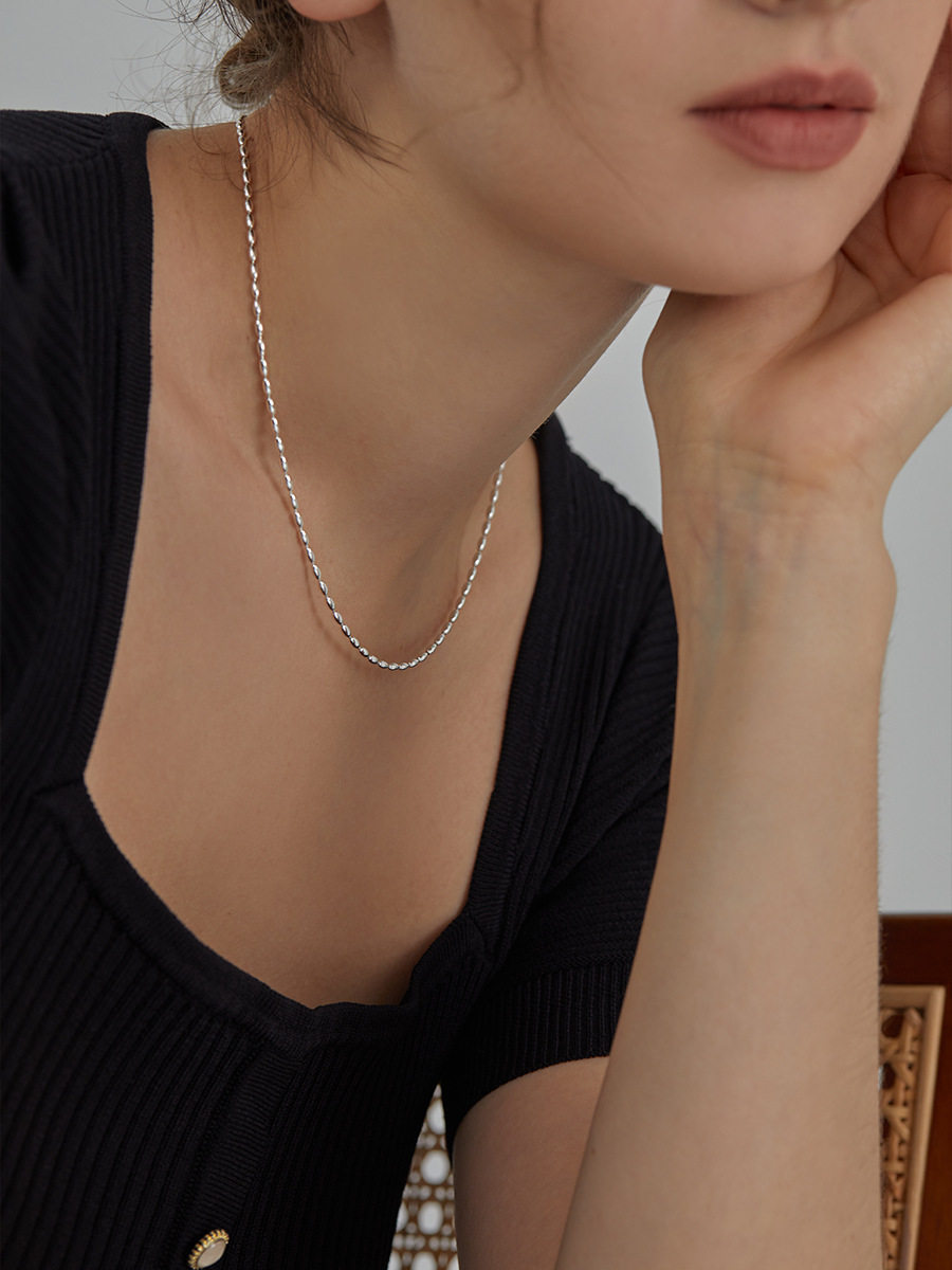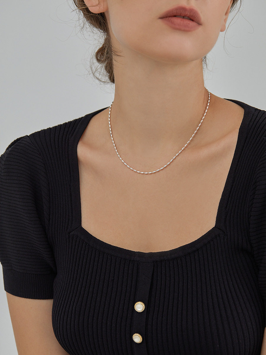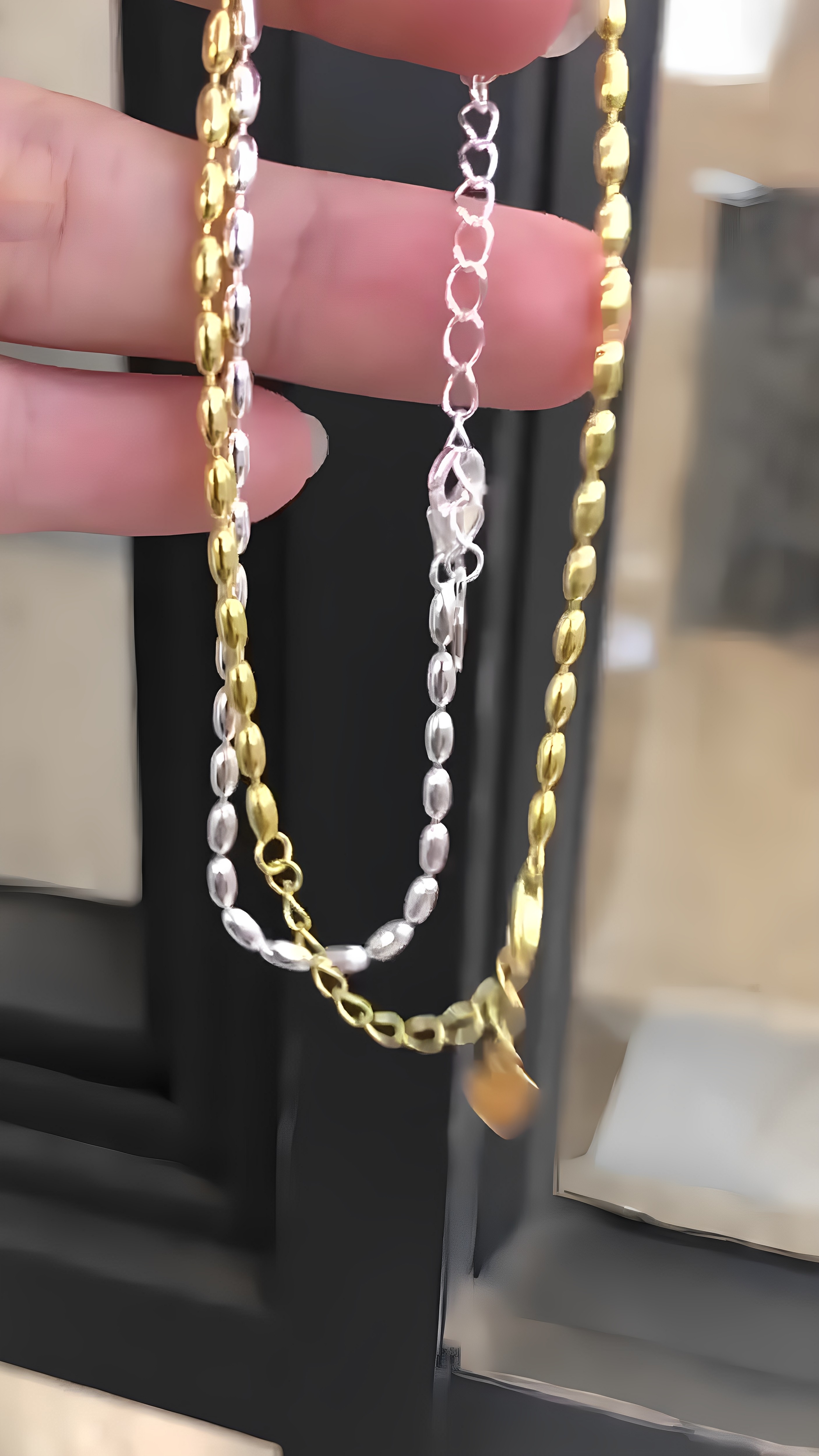 S999 Pure Silver Stacked Rice Bead Olive Bead Necklace for Women, Simple and Versatile Round Bead Sterling Silver Clavicle Chain, Gift for Best Friend