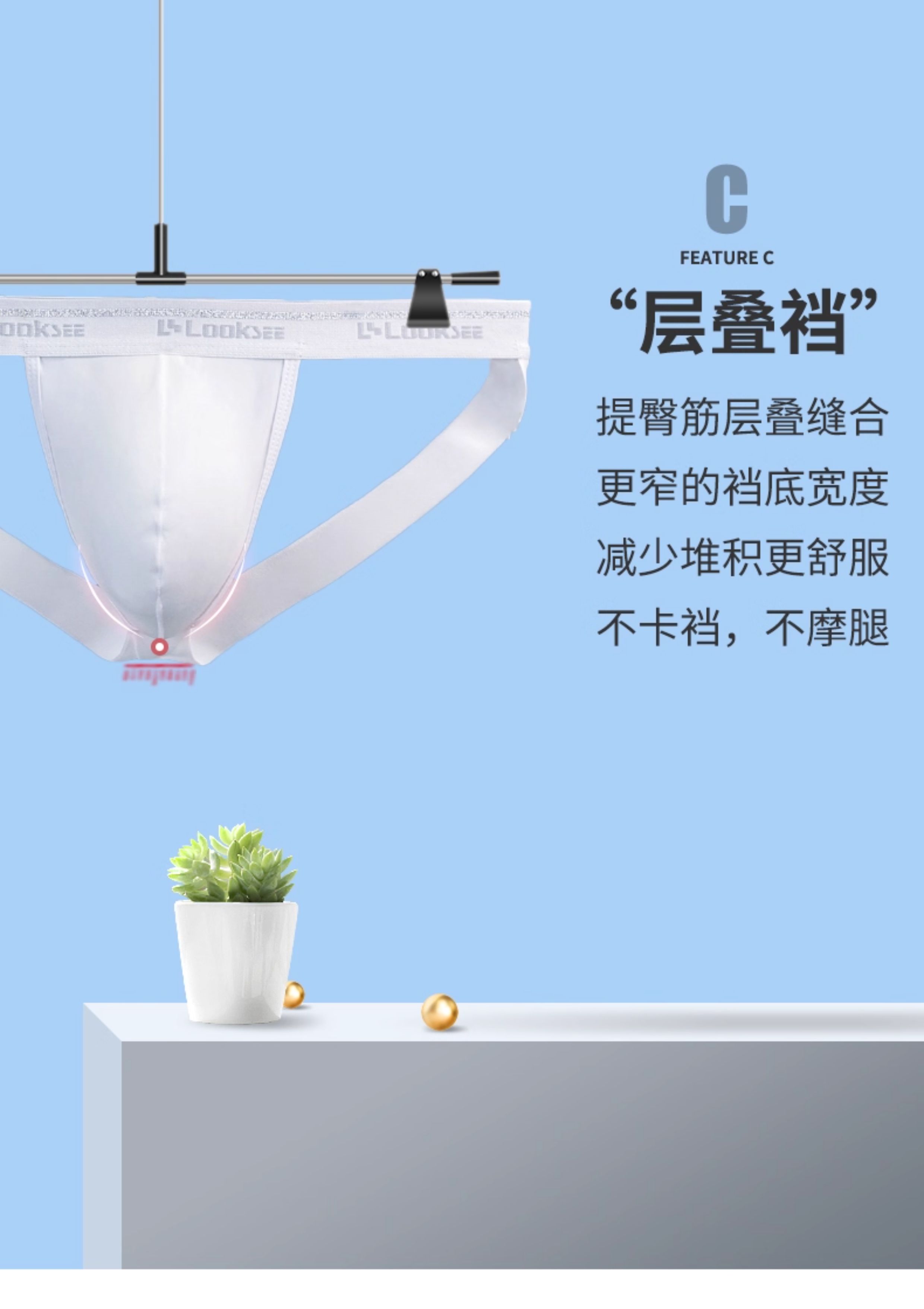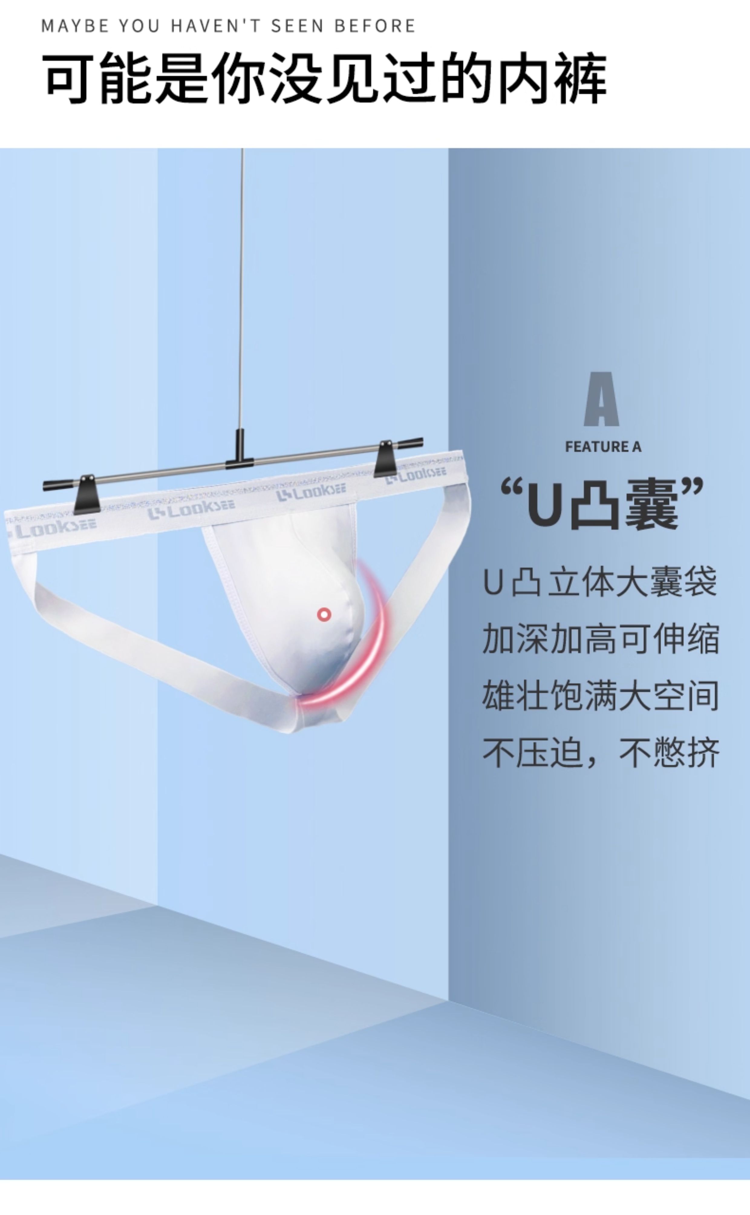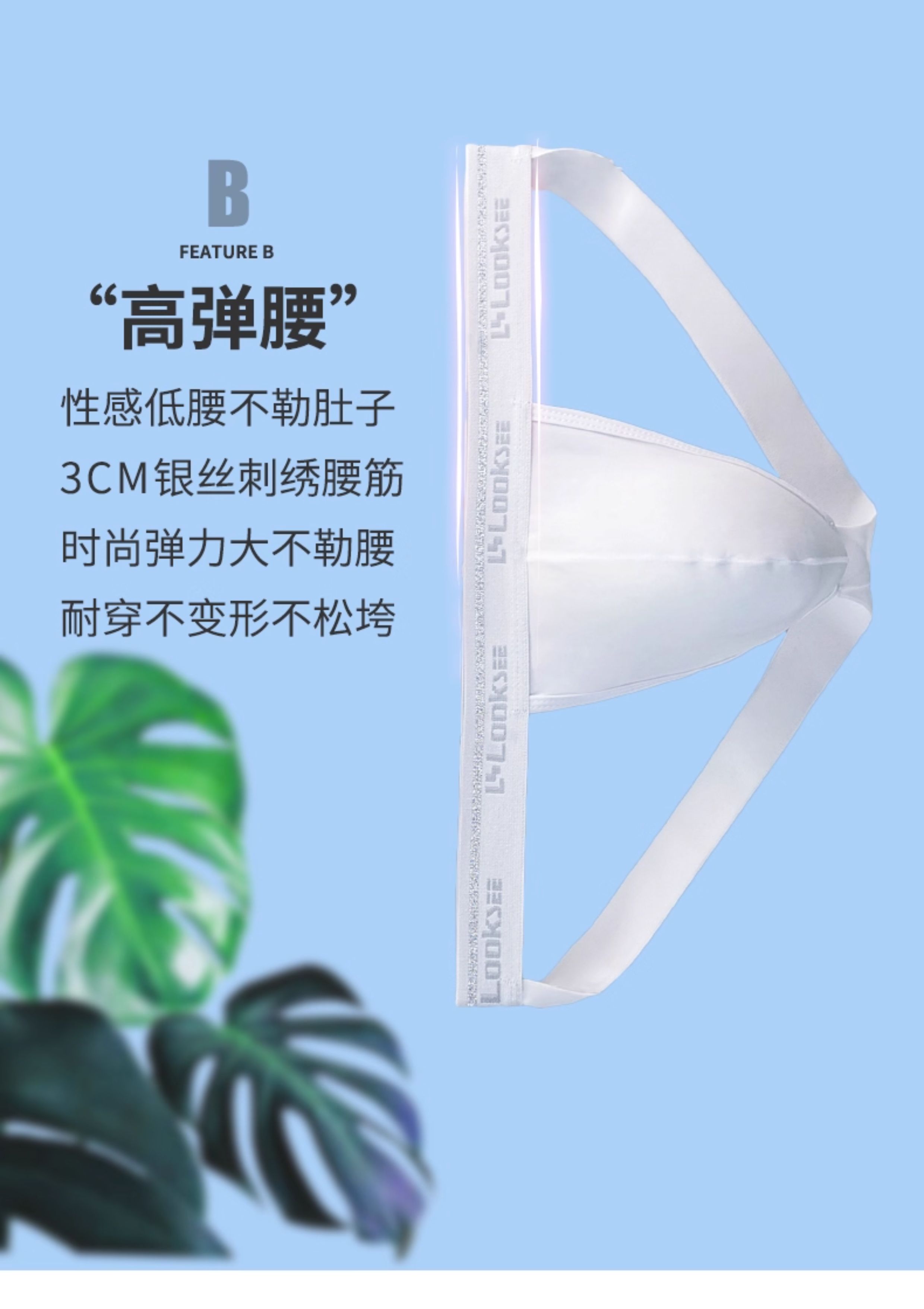 Pure White Ultra-Thin Ice Silk Thong Men's Underwear T-Pants U-Convex Sexy Semi-Transparent Low-Waist Exposed Buttocks Double Thong
