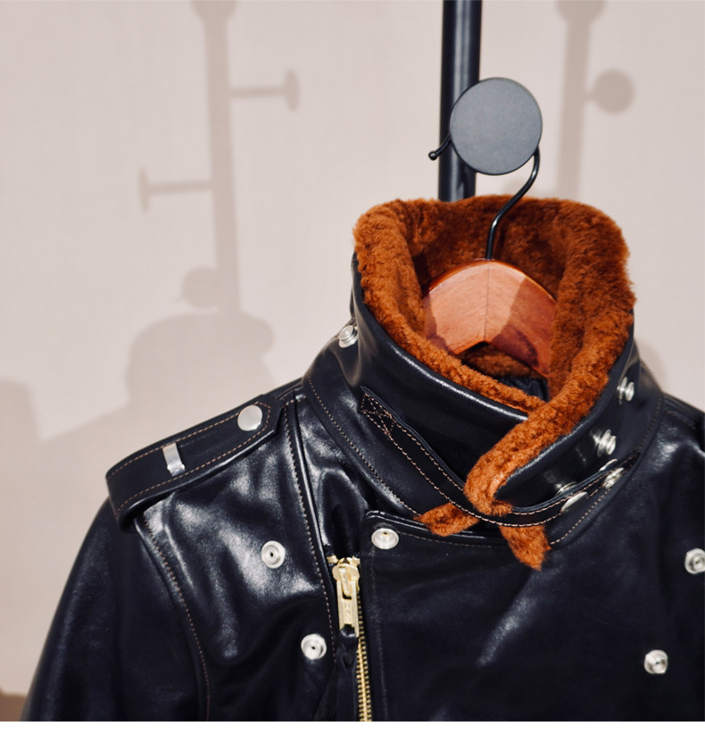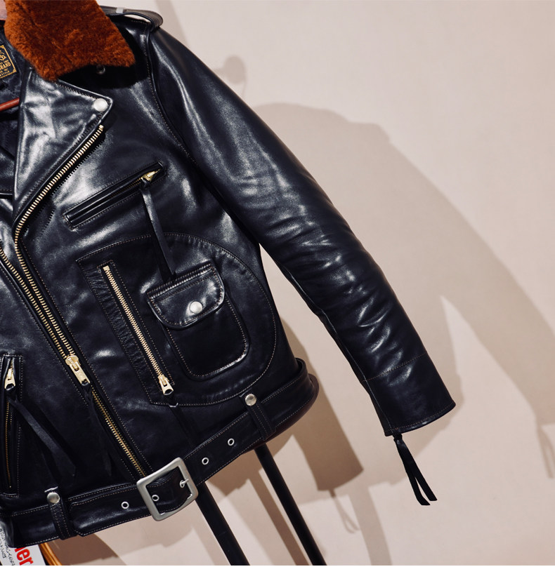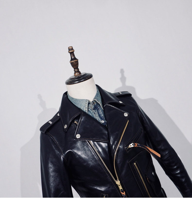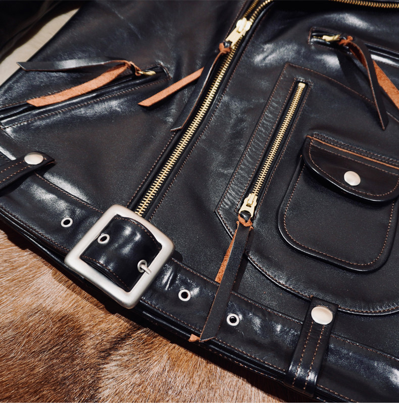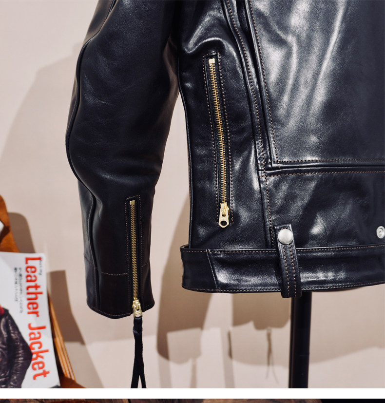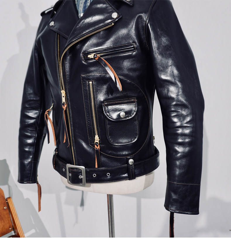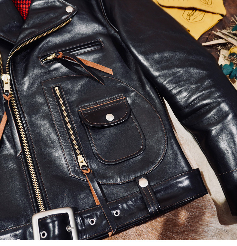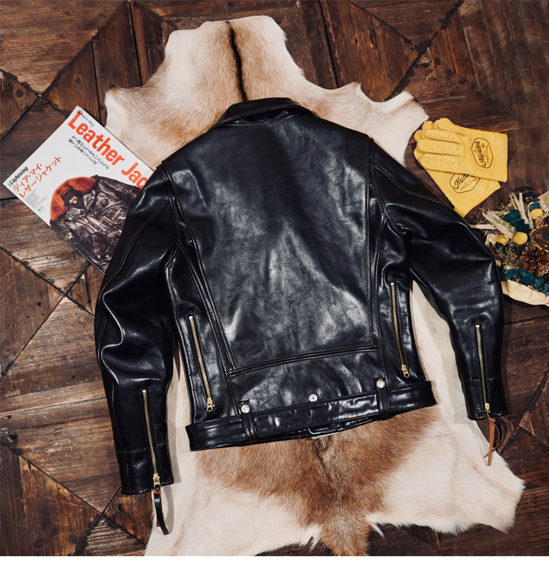 Highly Detailed Replica of the Original Buco Version! Full Vegetable-Tanned Tea Core Horsehide Leather Jacket J24 Diagonal Zipper Biker Jacket Short Style