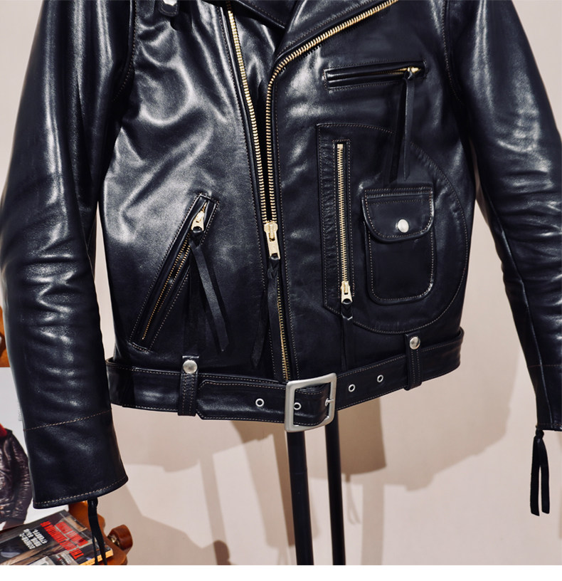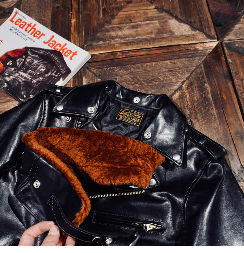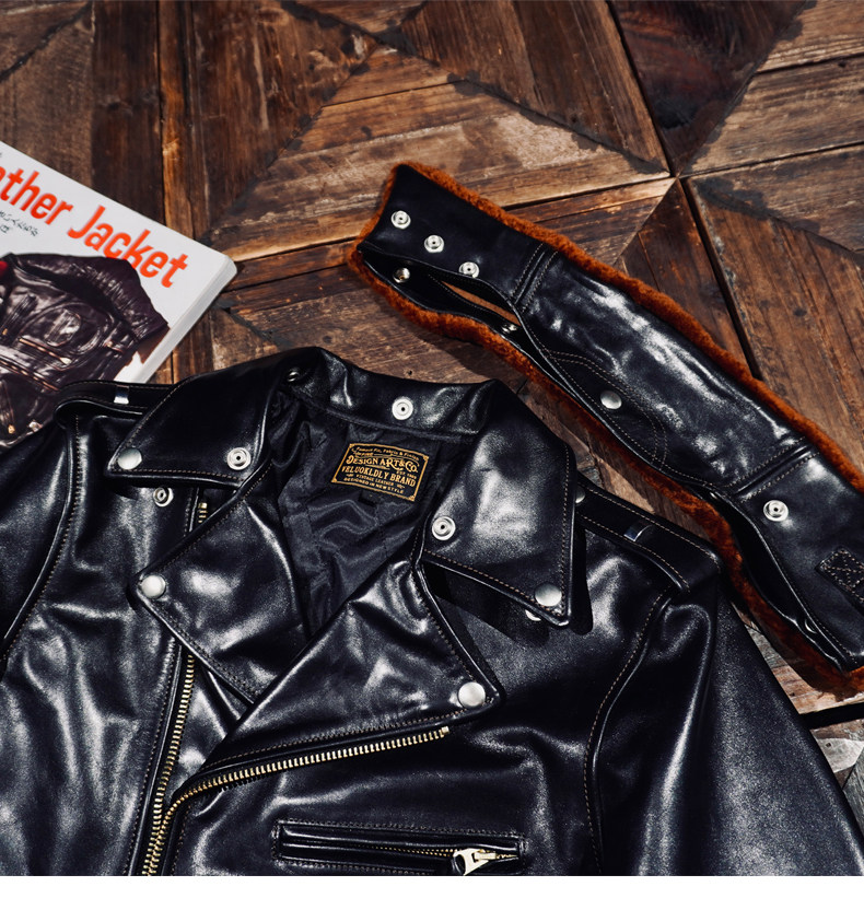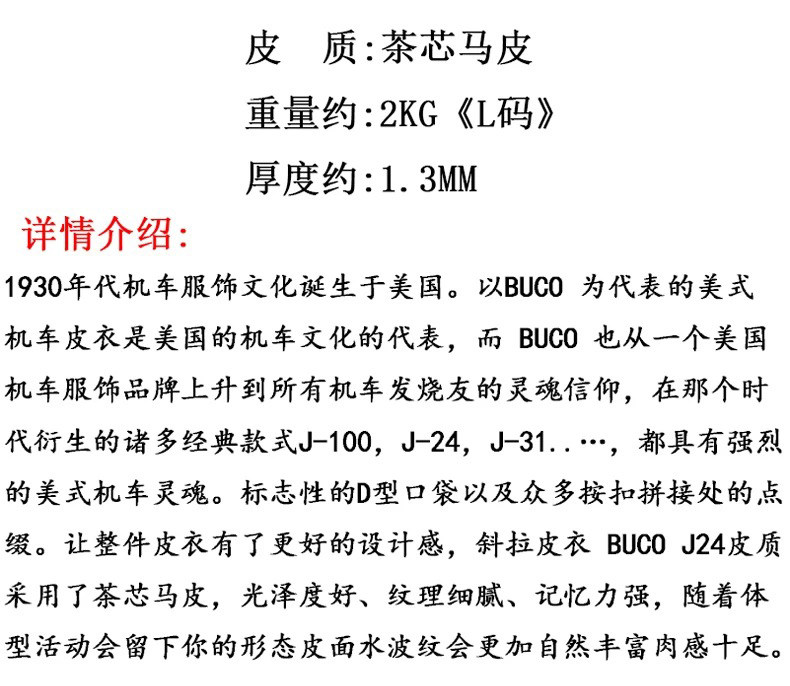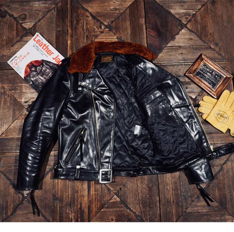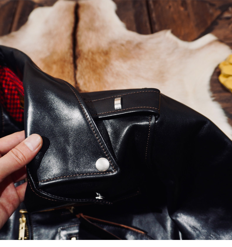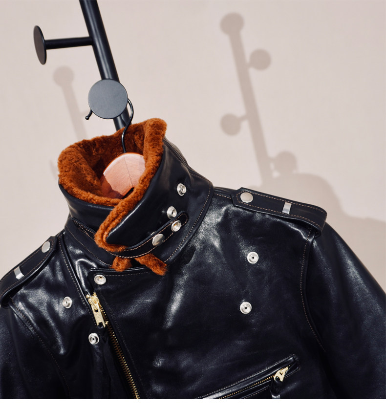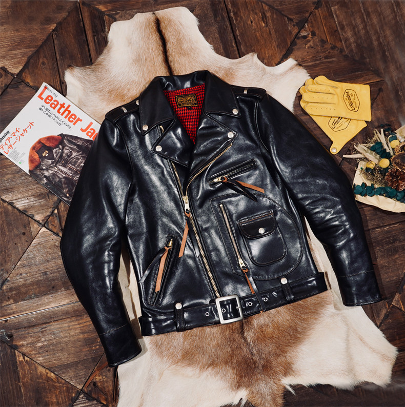 Highly Detailed Replica of the Original Buco Version! Full Vegetable-Tanned Tea Core Horsehide Leather Jacket J24 Diagonal Zipper Biker Jacket Short Style