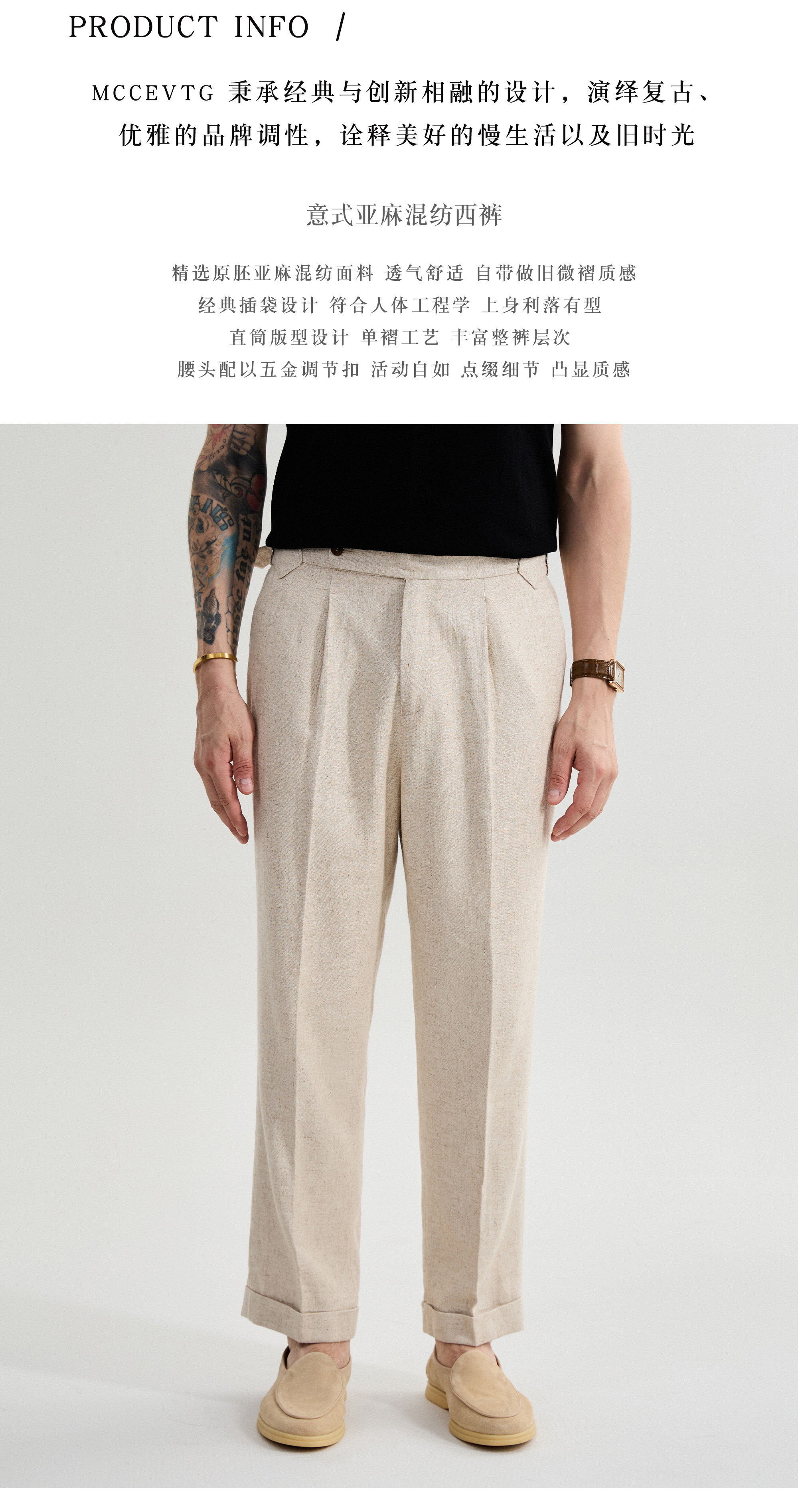 Mccevtg Italian-Style Old Money Linen Blend High-Waisted Men's Vintage Thickened Casual Straight-Leg Pants