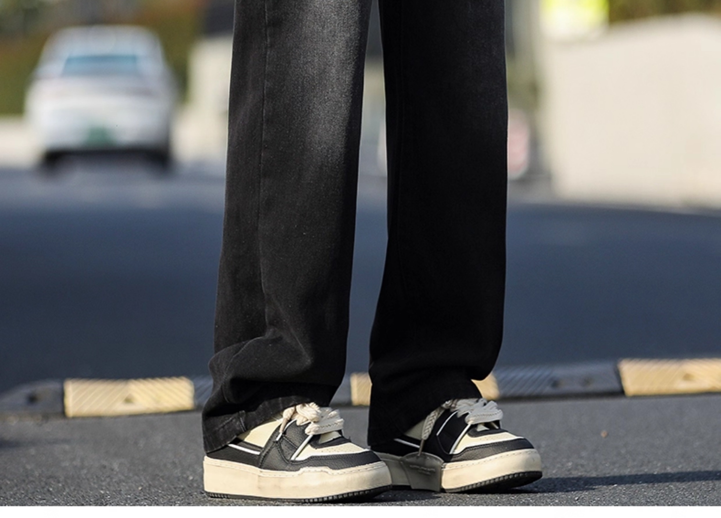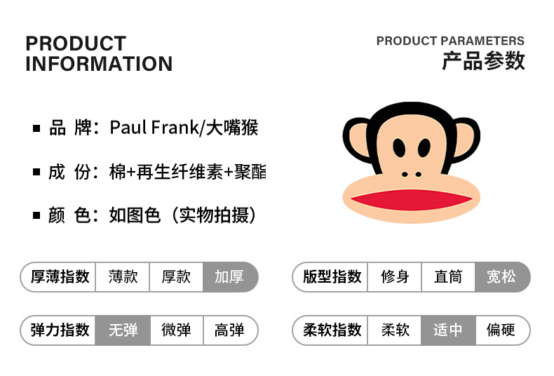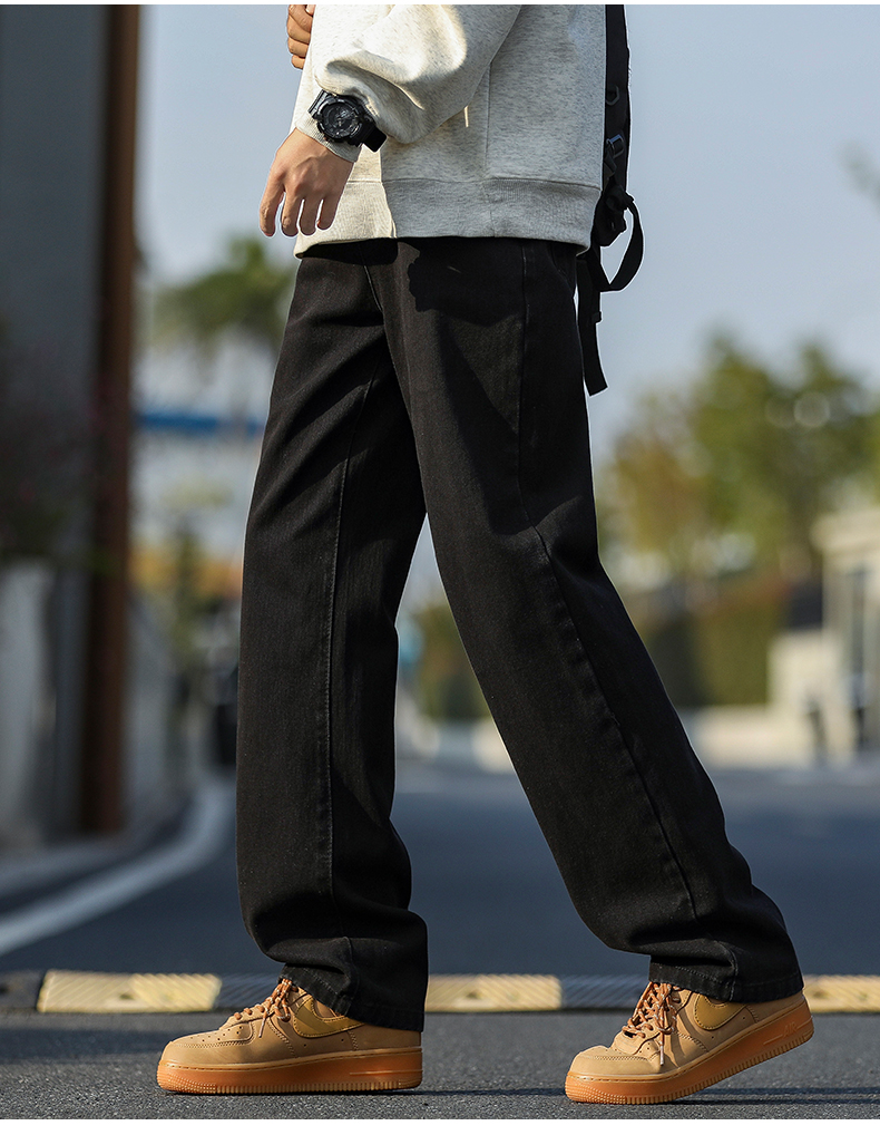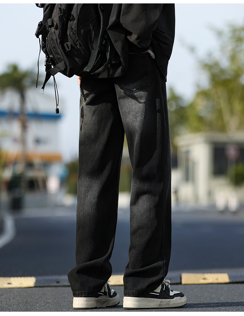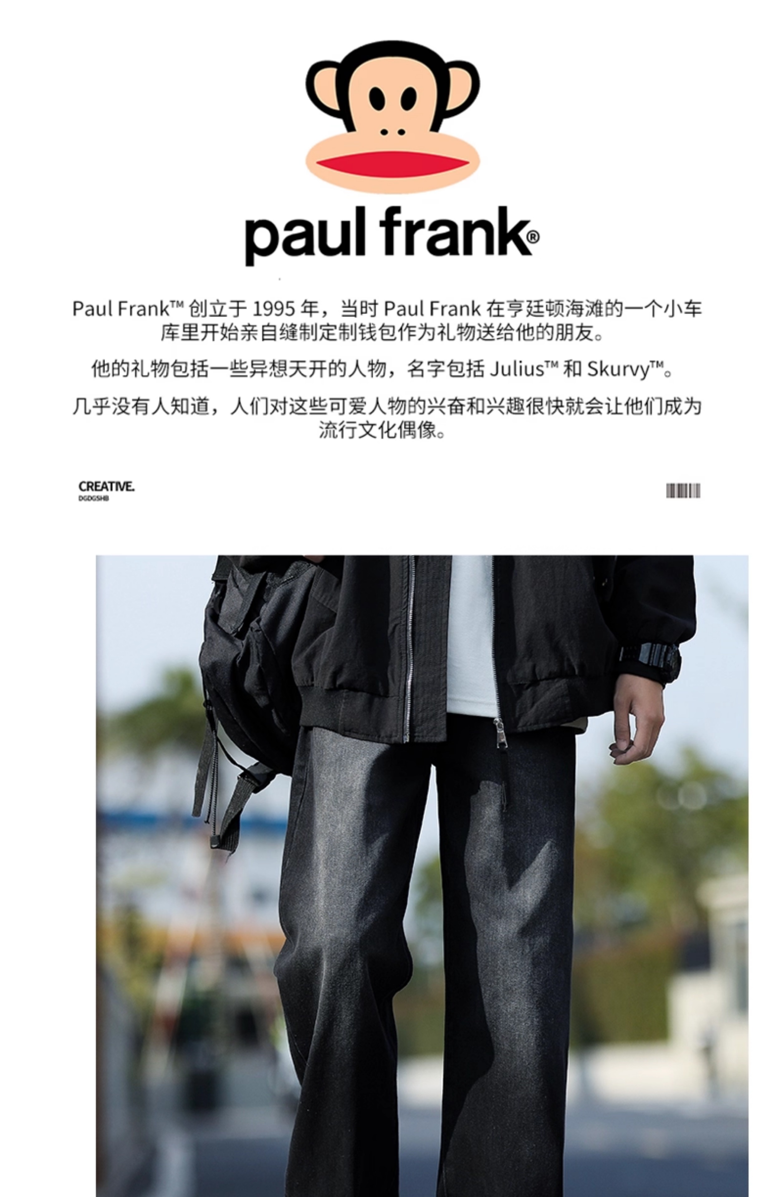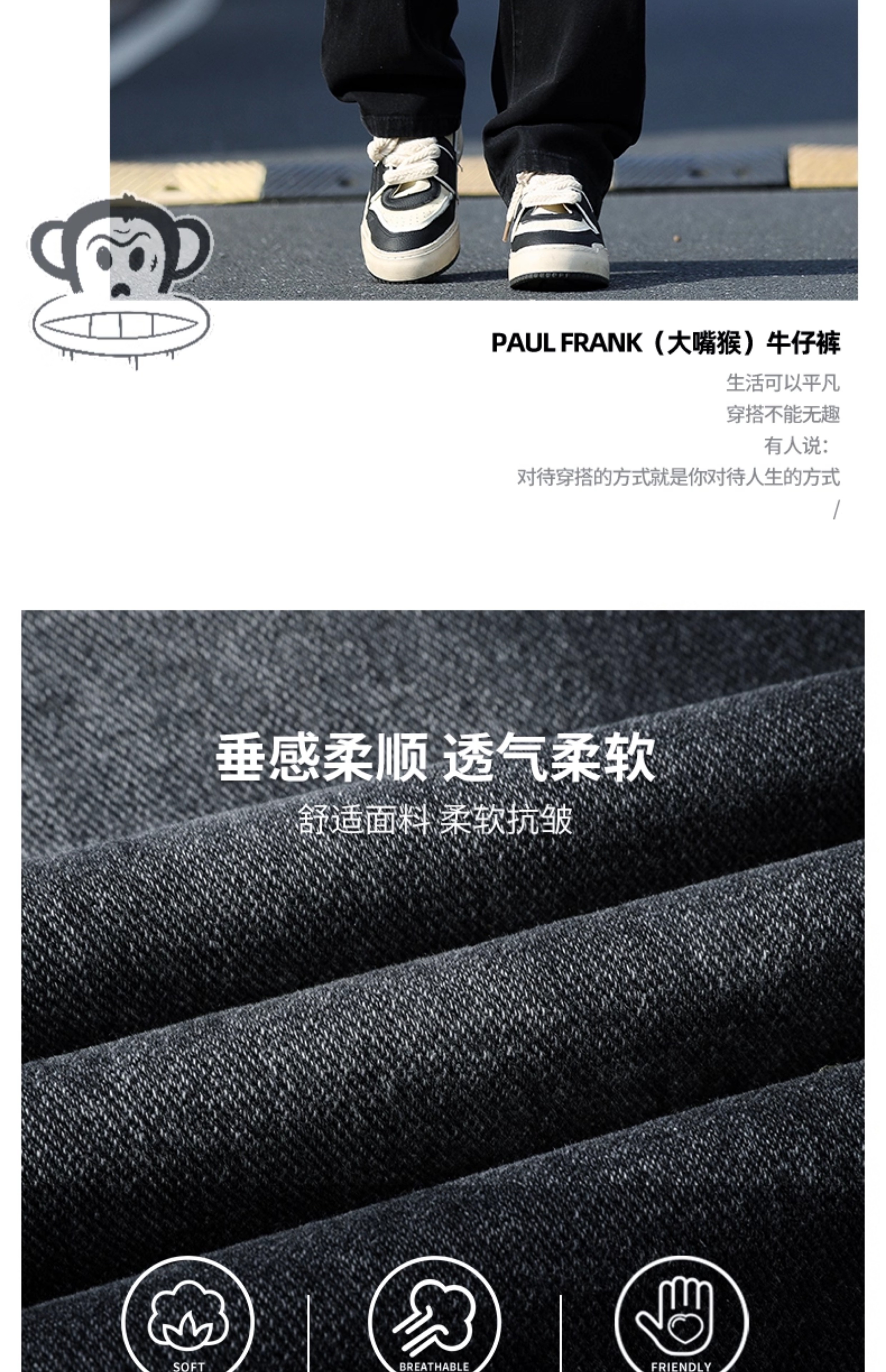 Paulfrank/Big Mouth Monkey Straight-Leg Jeans for Men, American High Street Style, Autumn and Winter Fleece-Lined Black Trendy Brand Loose Pants