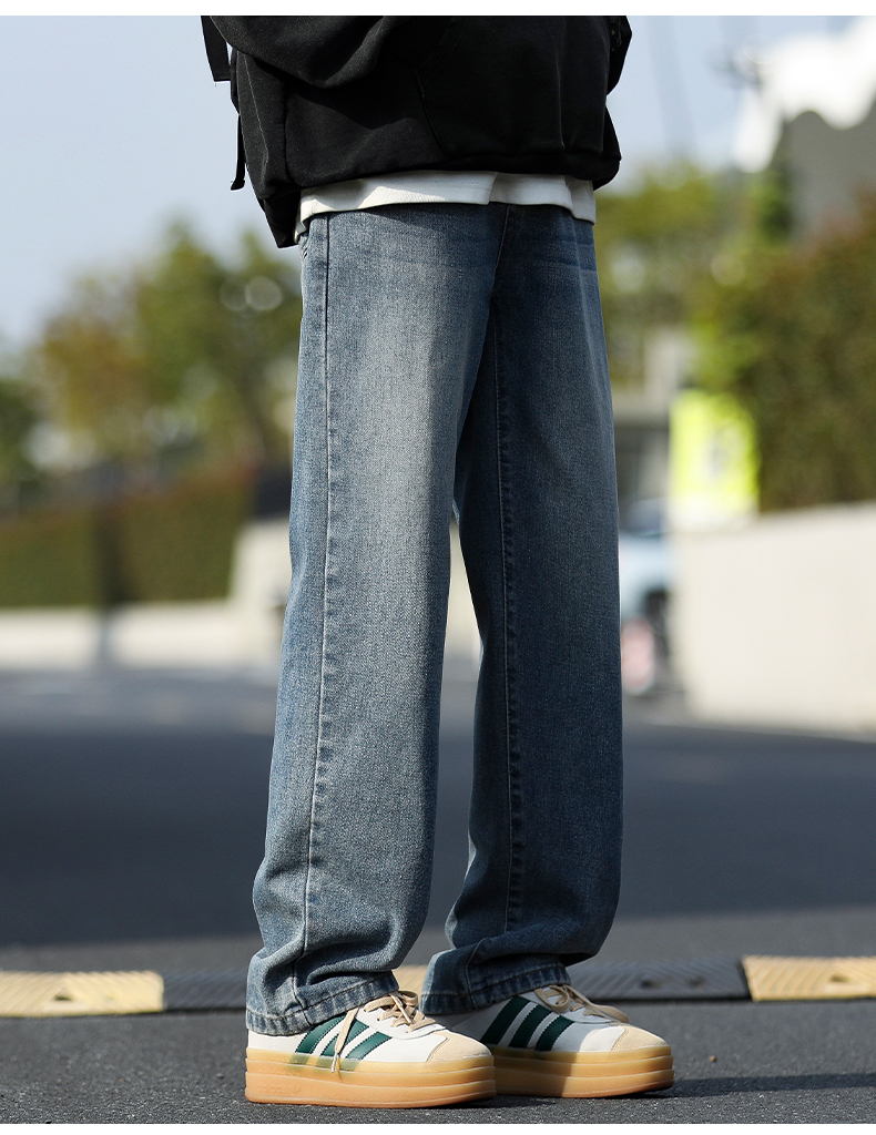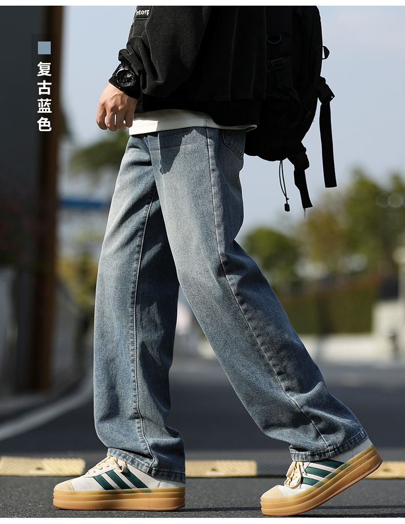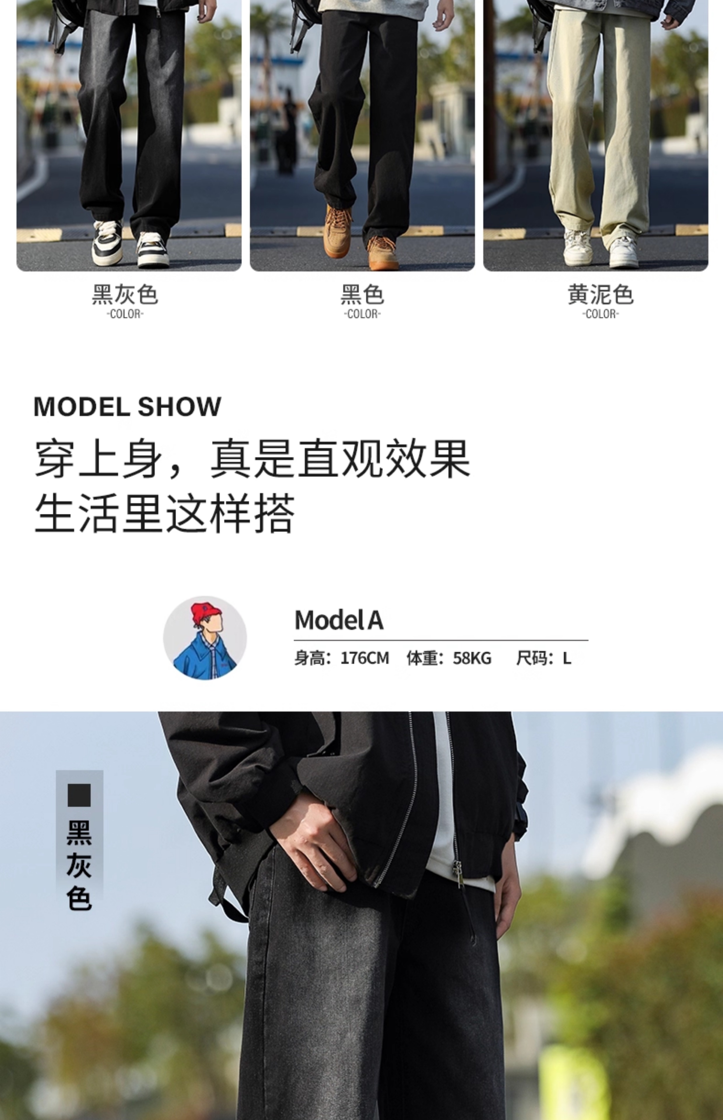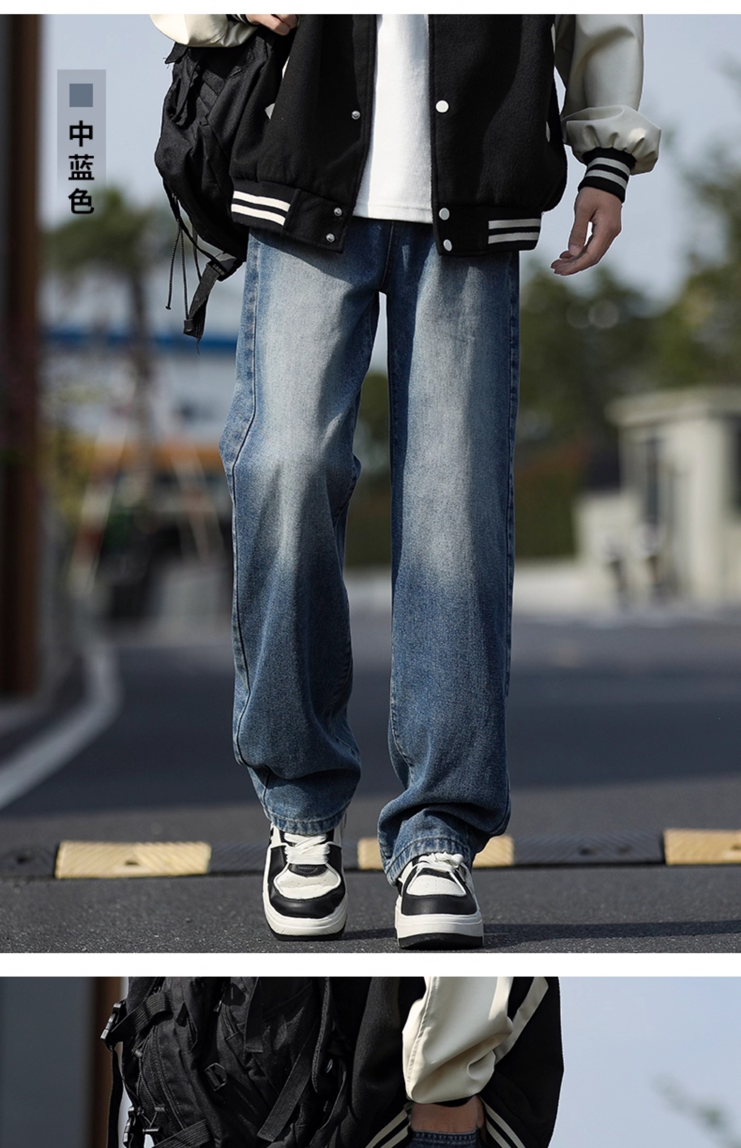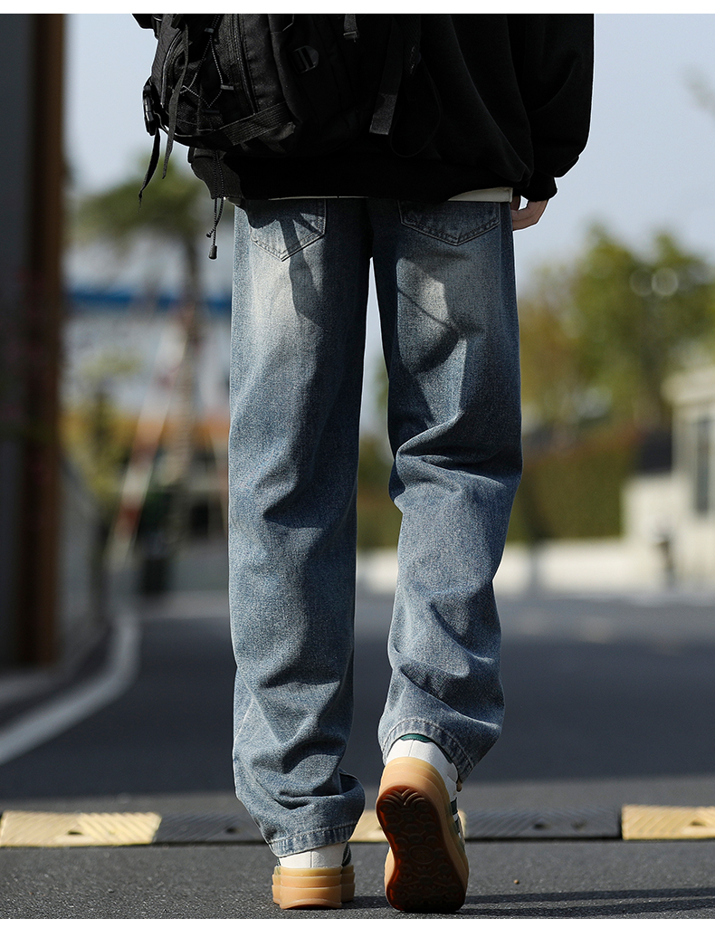 Paulfrank/Big Mouth Monkey Straight-Leg Jeans for Men, American High Street Style, Autumn and Winter Fleece-Lined Black Trendy Brand Loose Pants