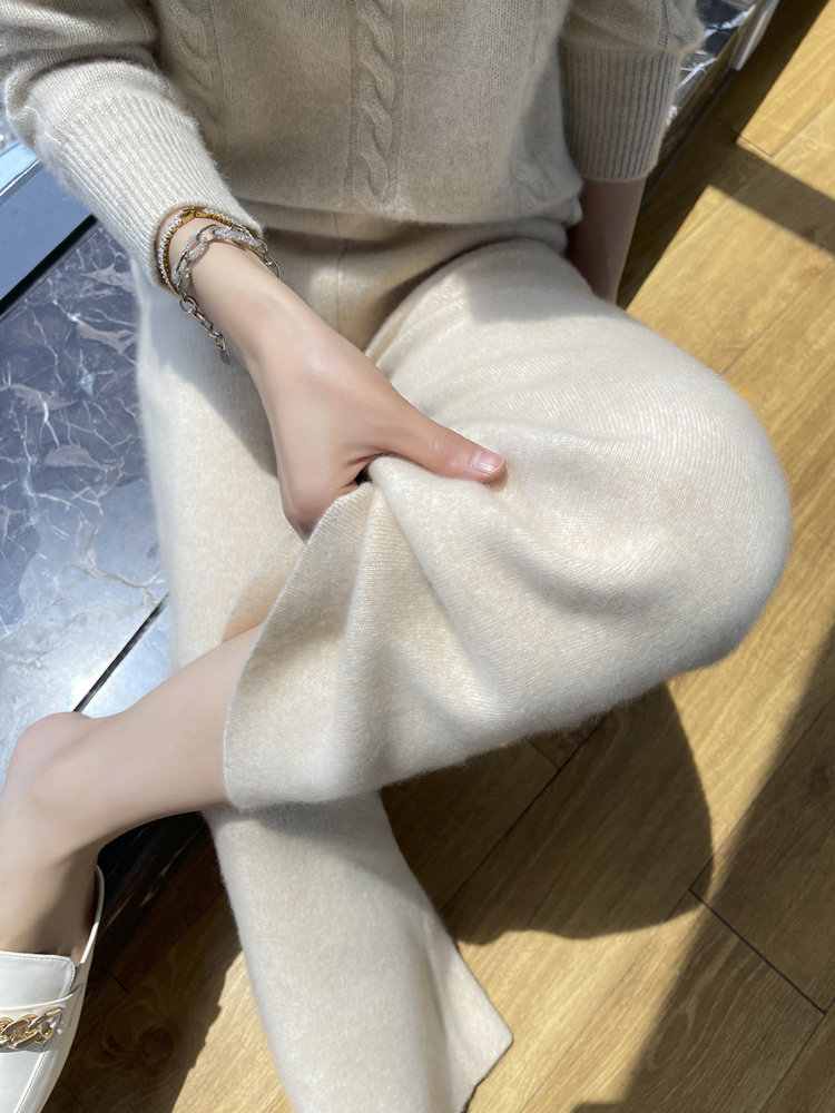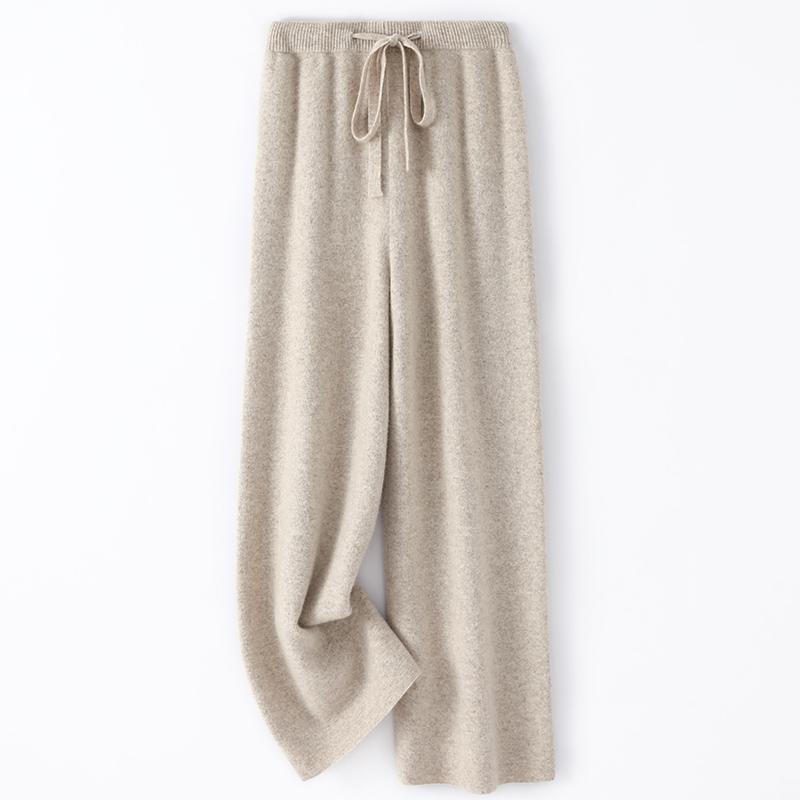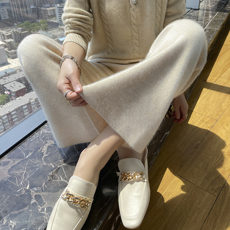 Thick Wool Wide-Leg Pants for Women, Loose and Thick, Autumn and Winter Straight-Leg Floor-Length Drapey Cashmere White Casual Extended Pants