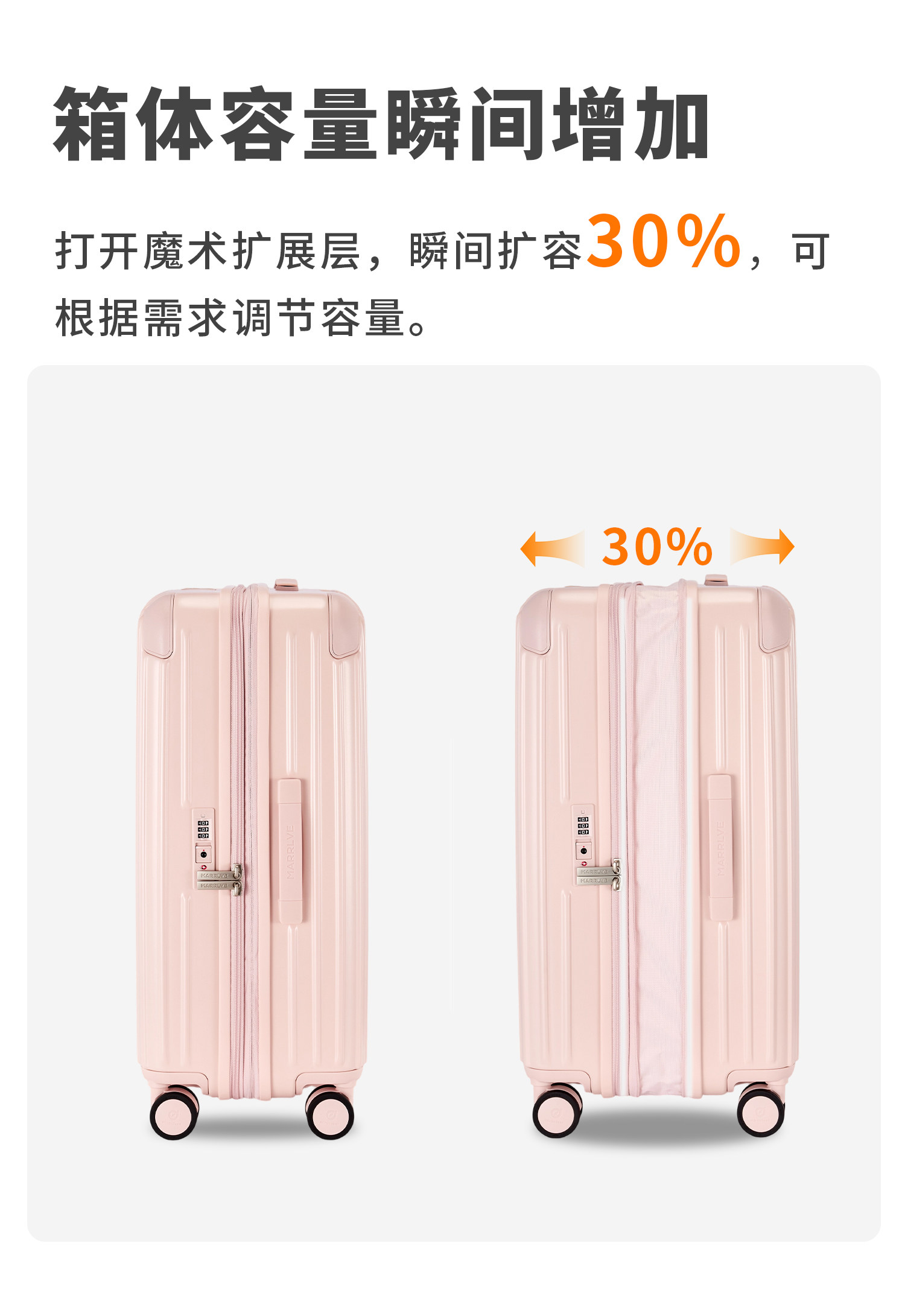 Marrlve【Malve】Expandable Layer Ykk Large-Capacity Pure Pc Sturdy and Durable Trolley Travel Suitcase