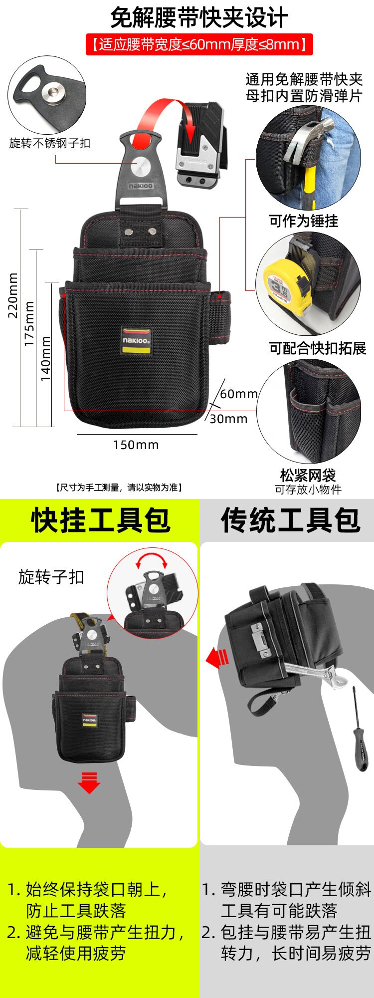 New Rotating Quick-Release Tool Bag, Multi-Functional Electrician's Waist Bag, Weak Current Maintenance Waist Bag