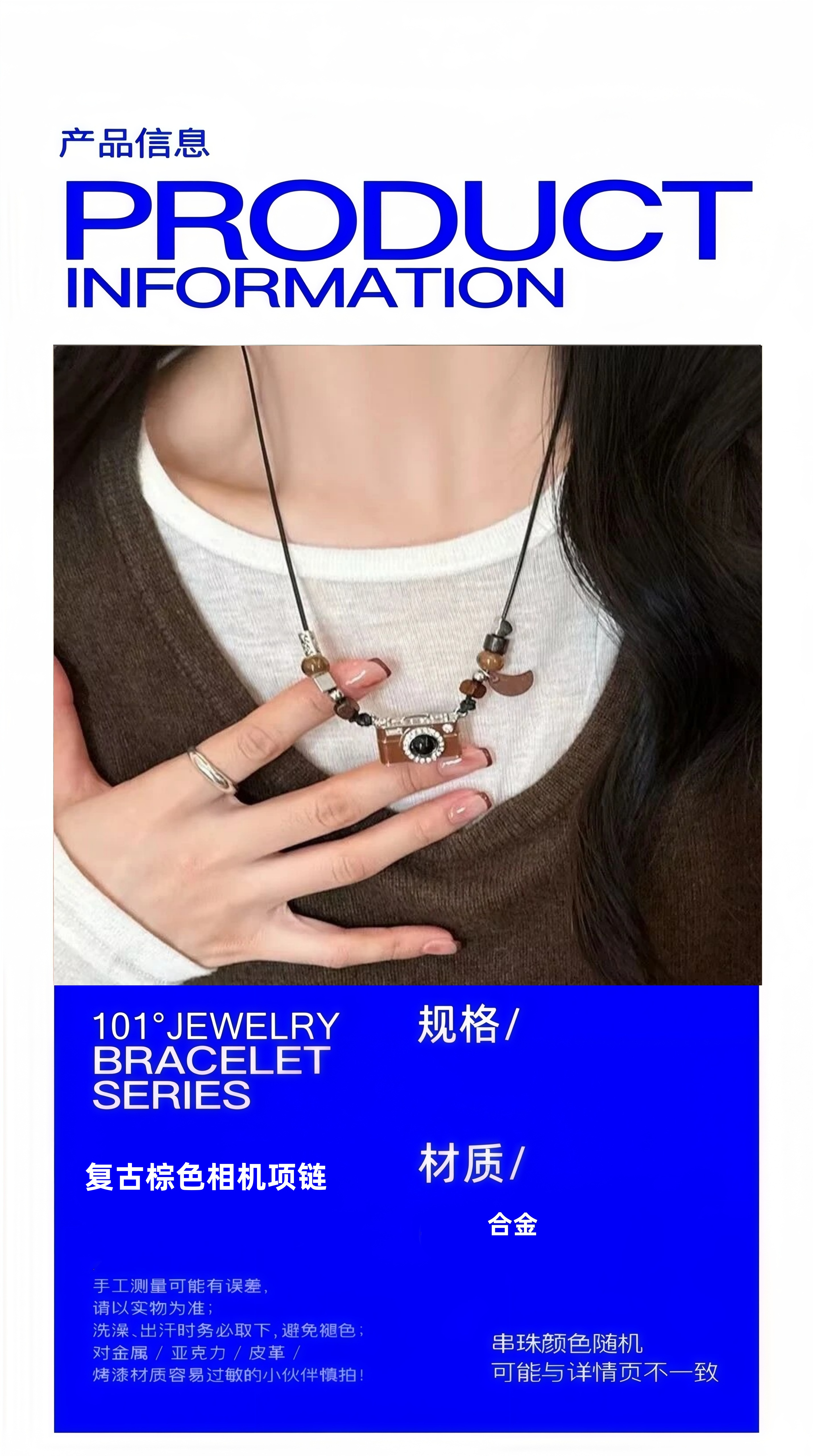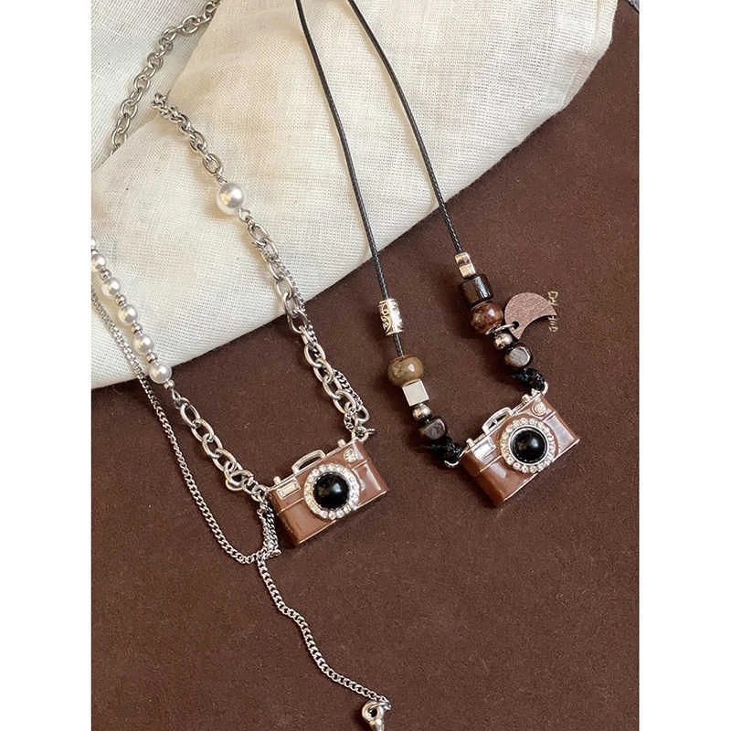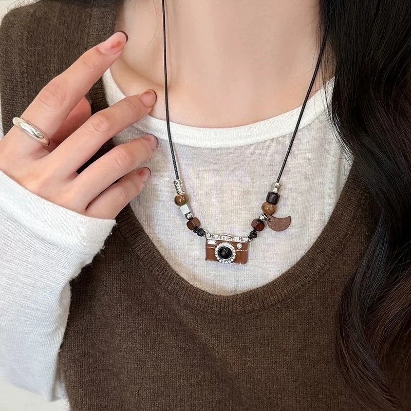 Vintage Brown Camera Pendant Necklace for Women, Niche Personality Sweater Chain, Sweet and Cool Versatile Clavicle Chain Accessory