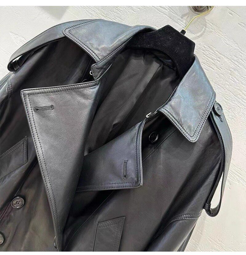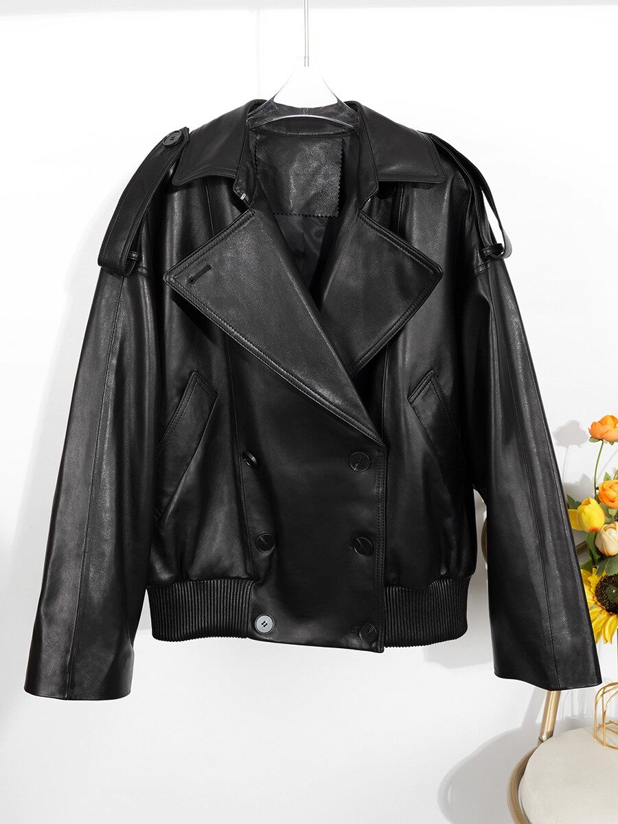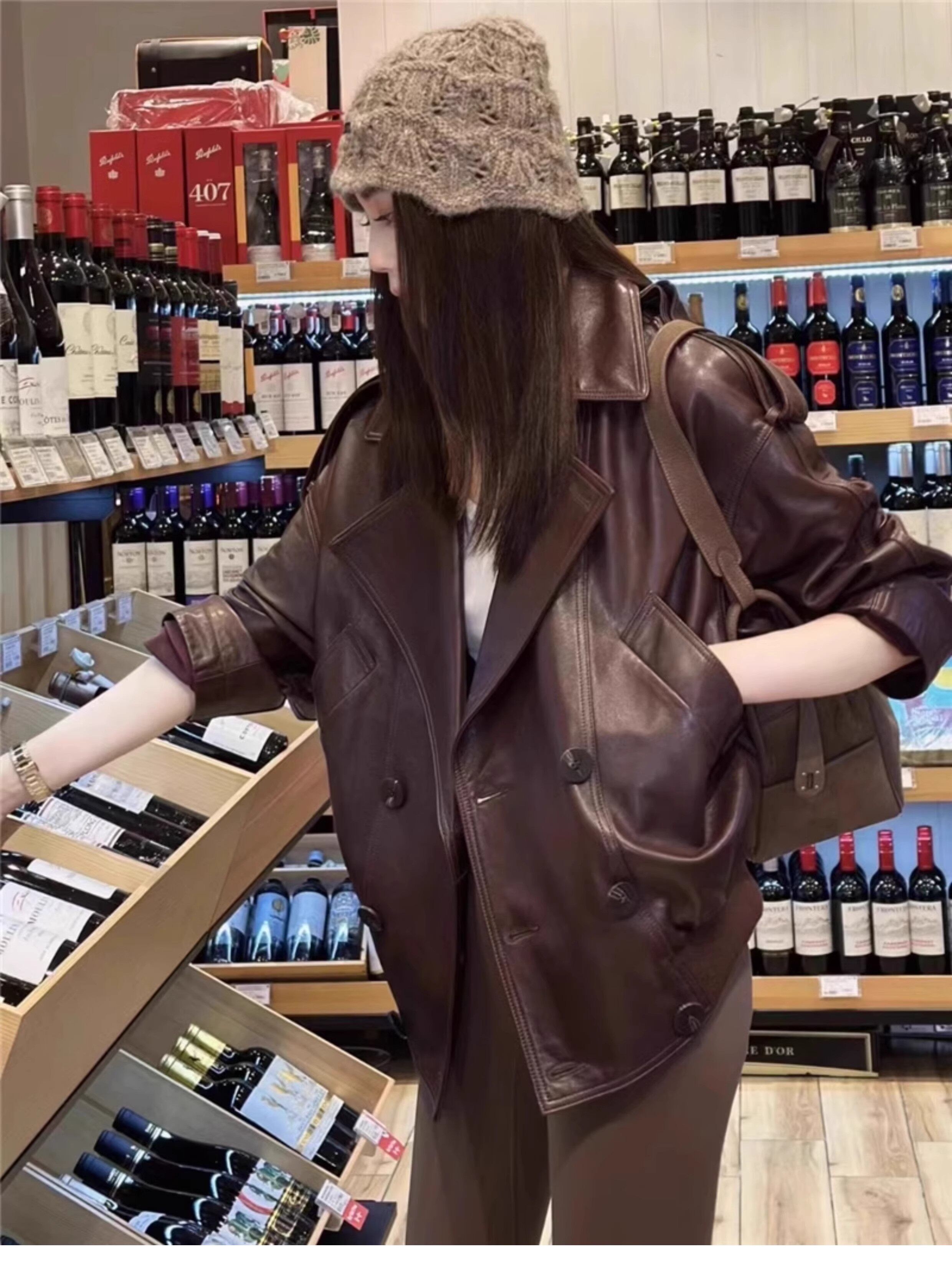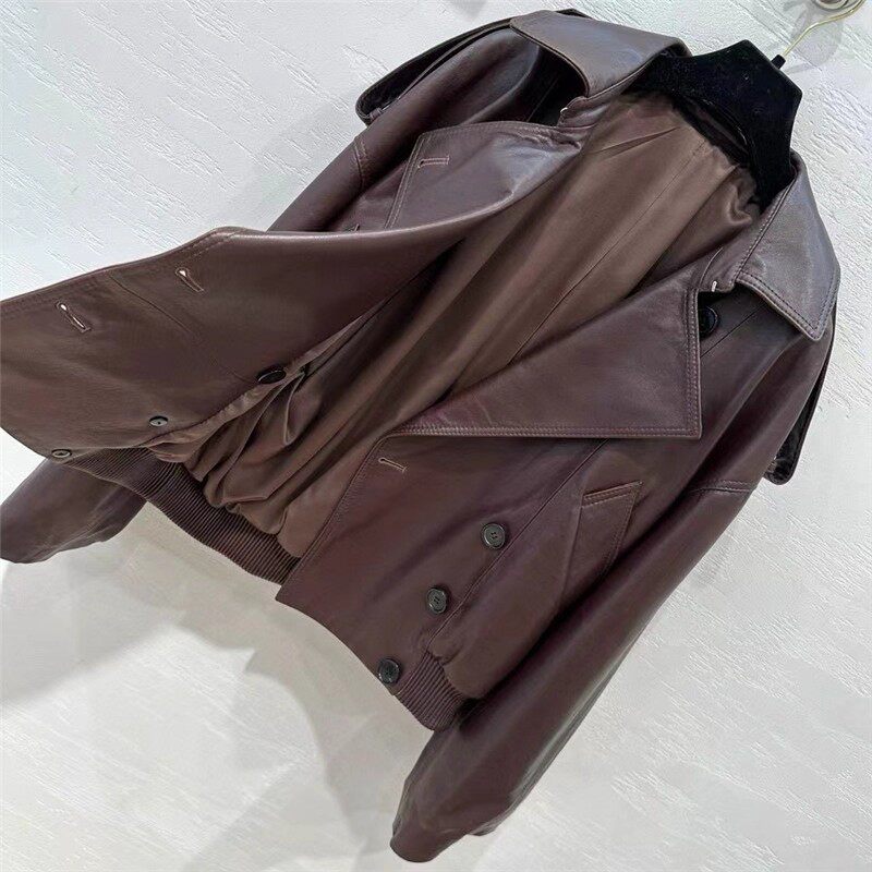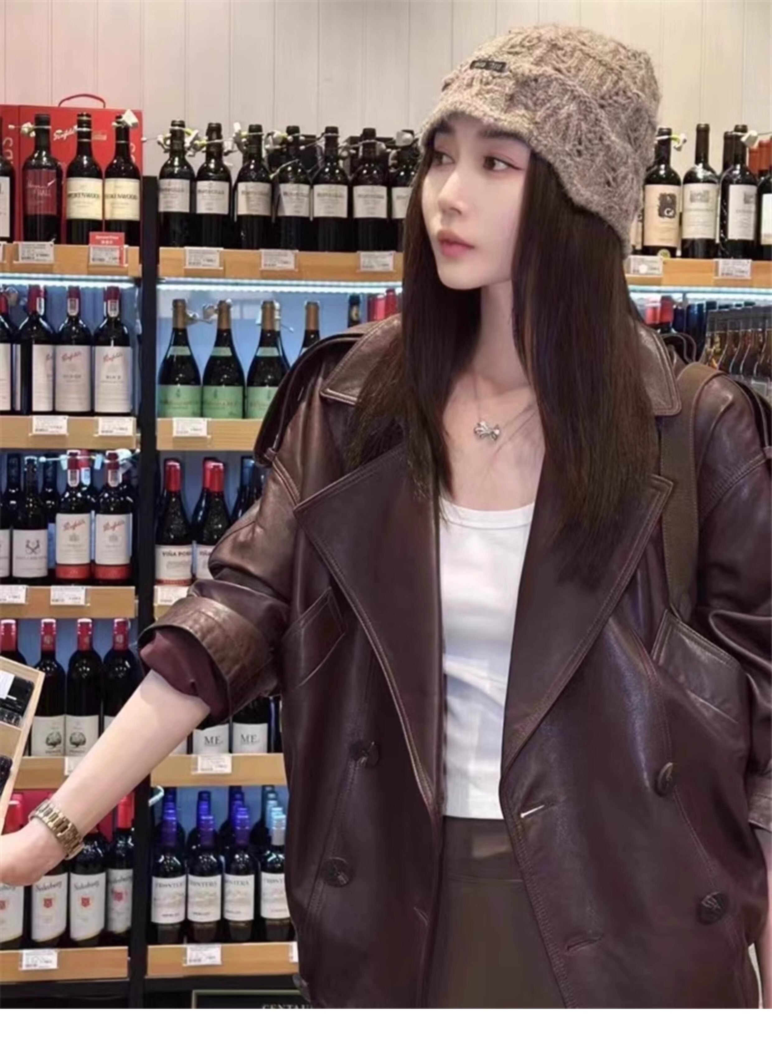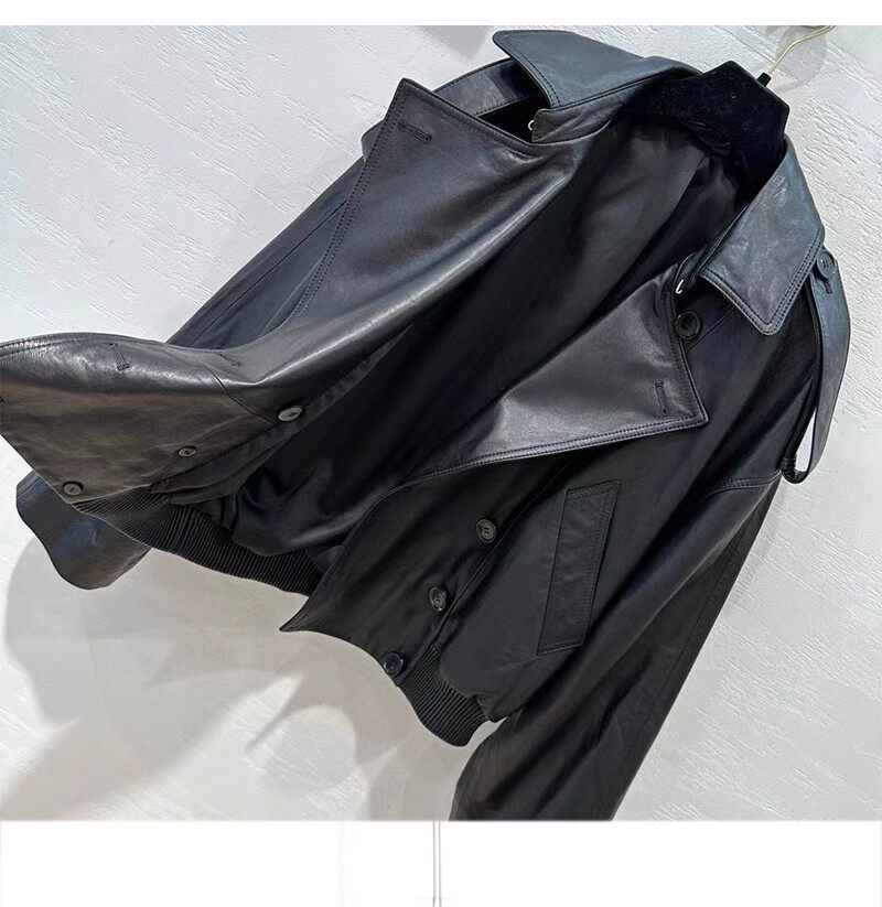 Yang Mi's Same Style Genuine Leather Jacket for Women 2025 New Loose Retro Biker Sheepskin Jacket Short Trench Coat