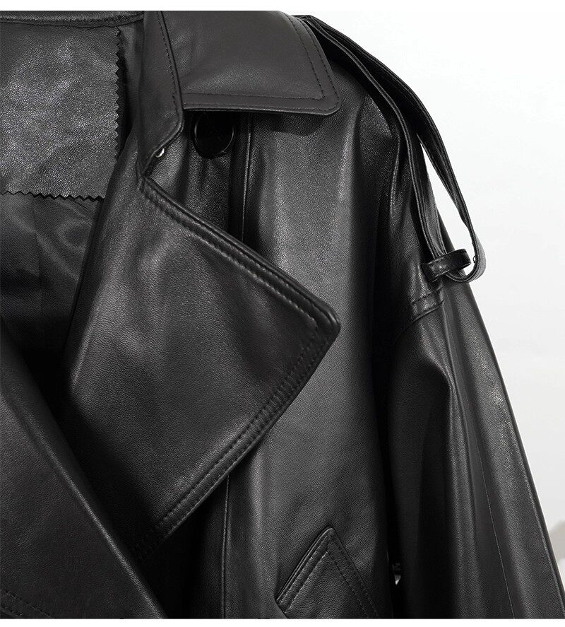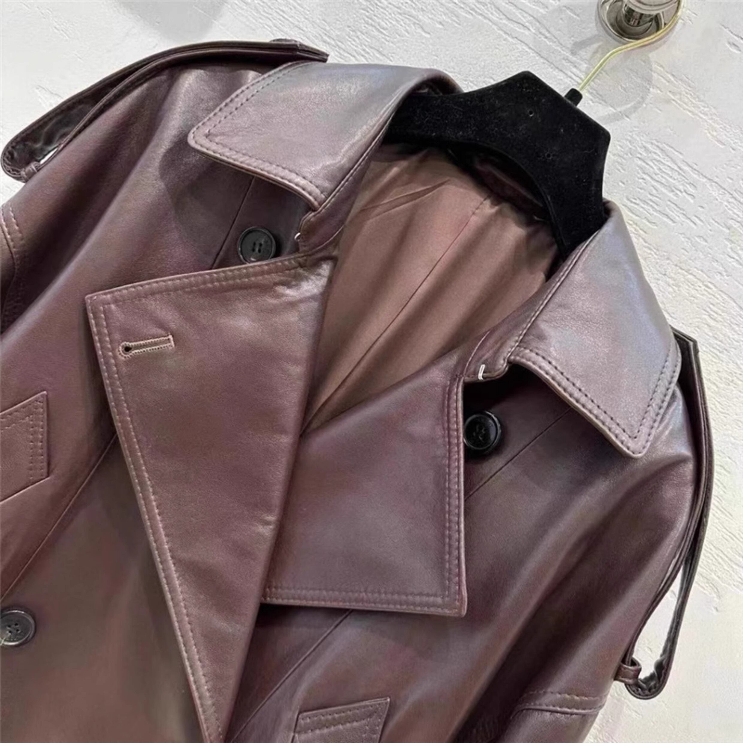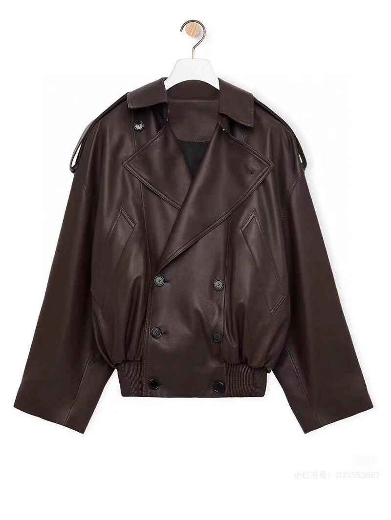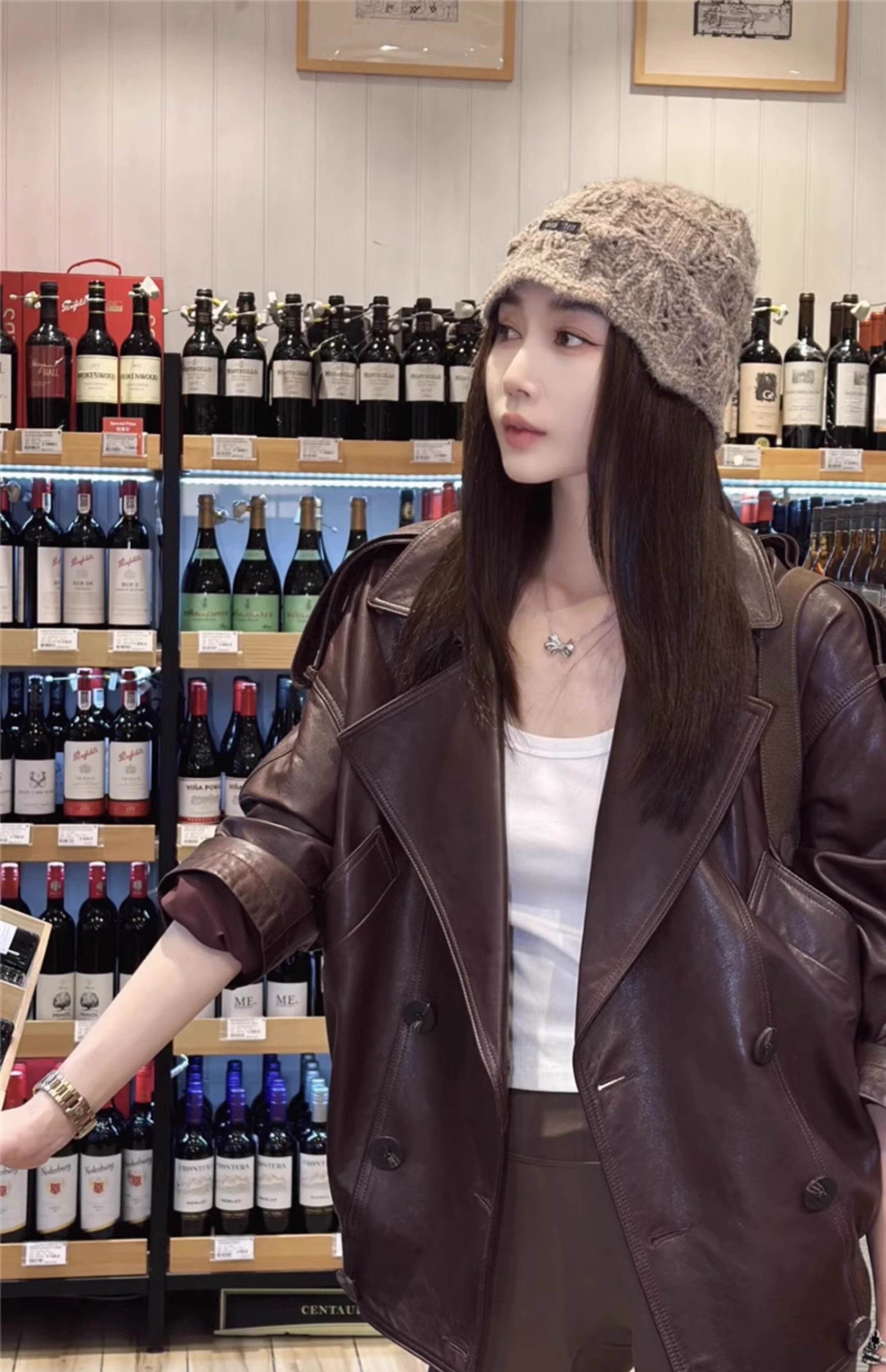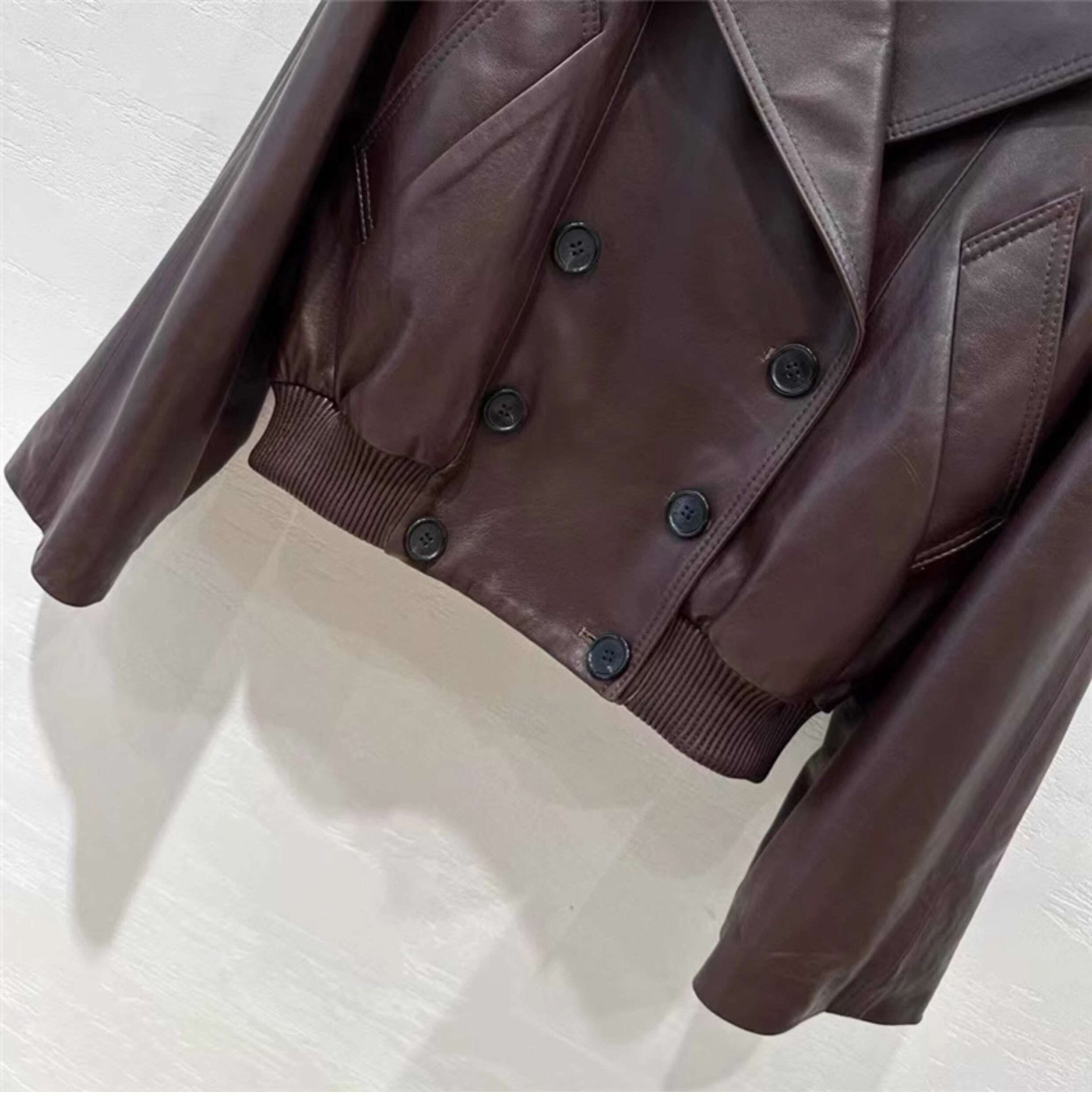 Yang Mi's Same Style Genuine Leather Jacket for Women 2025 New Loose Retro Biker Sheepskin Jacket Short Trench Coat