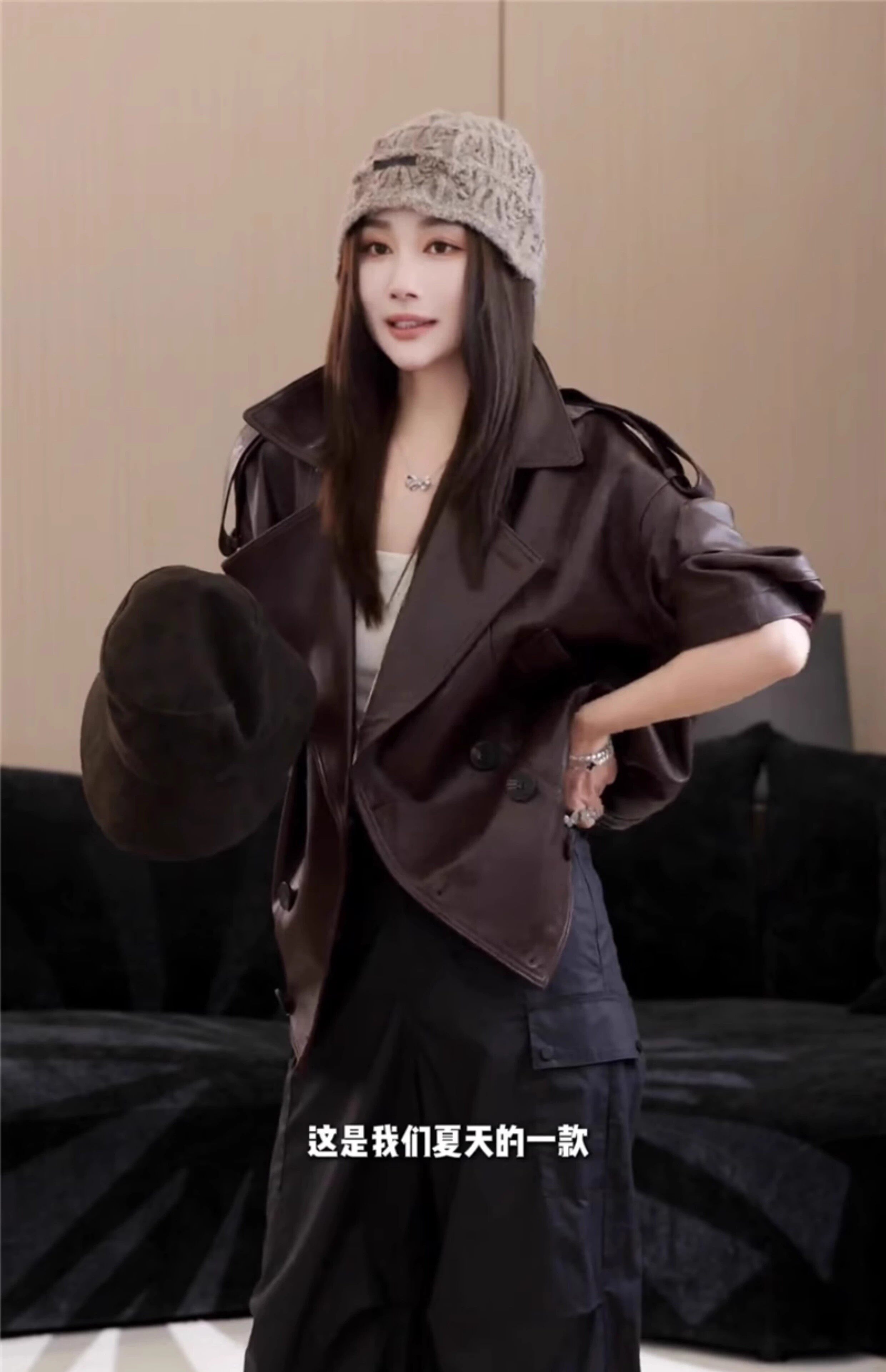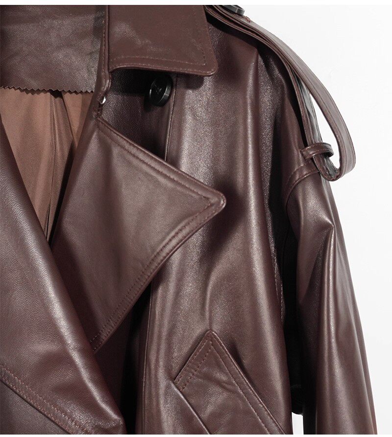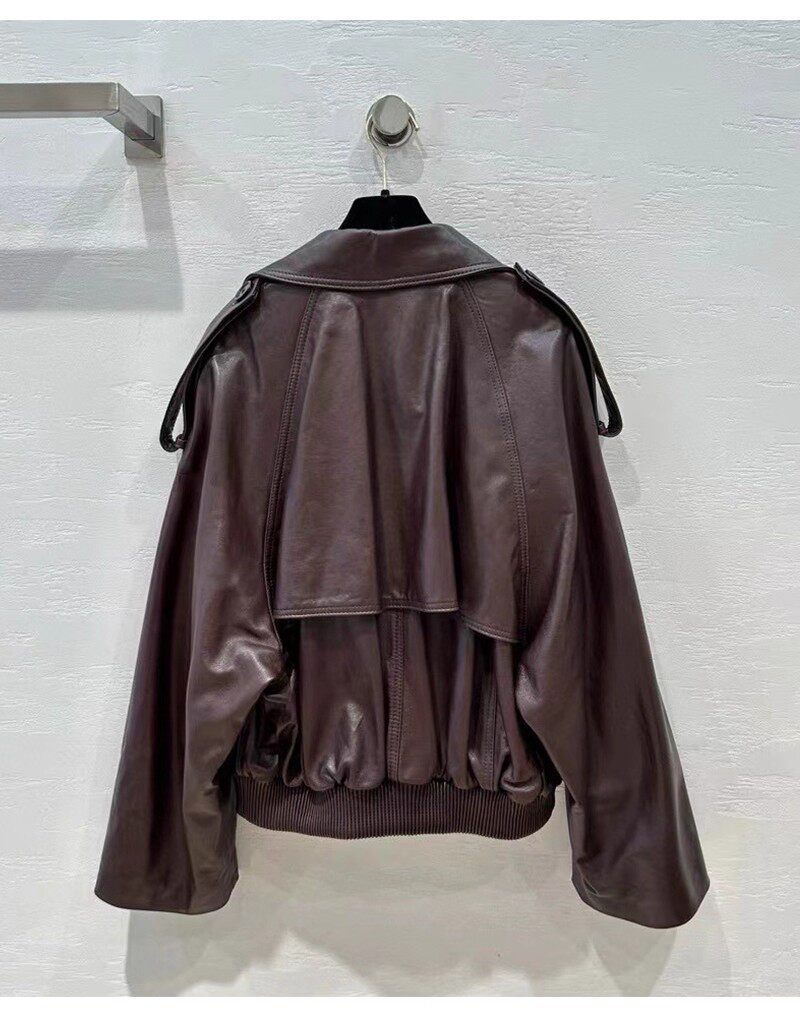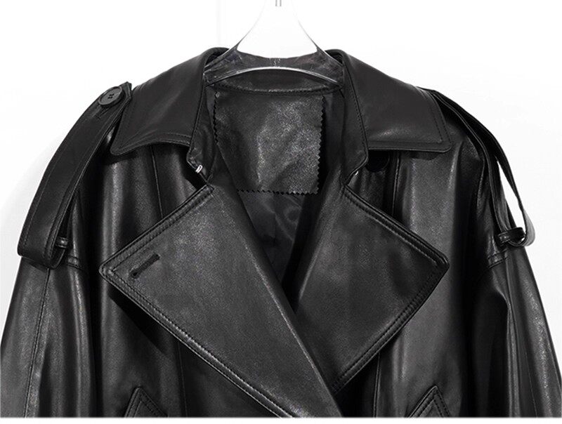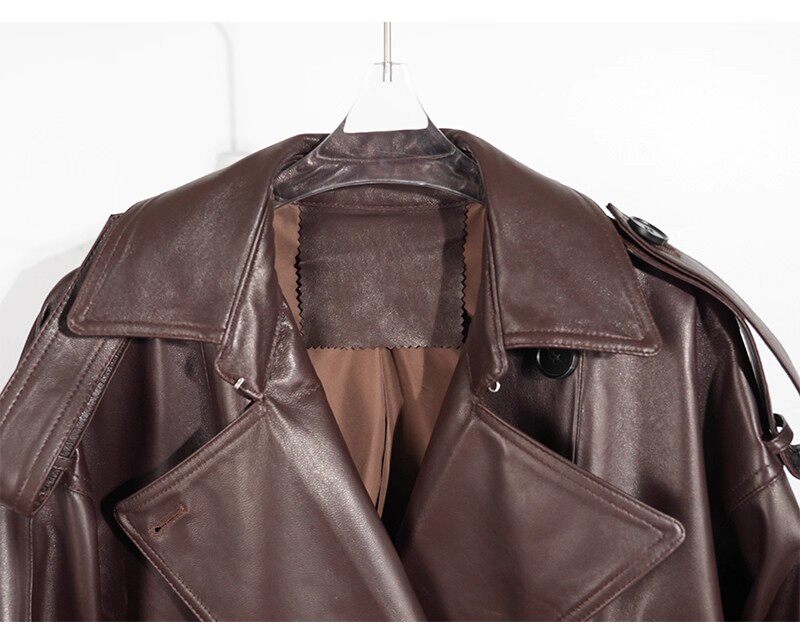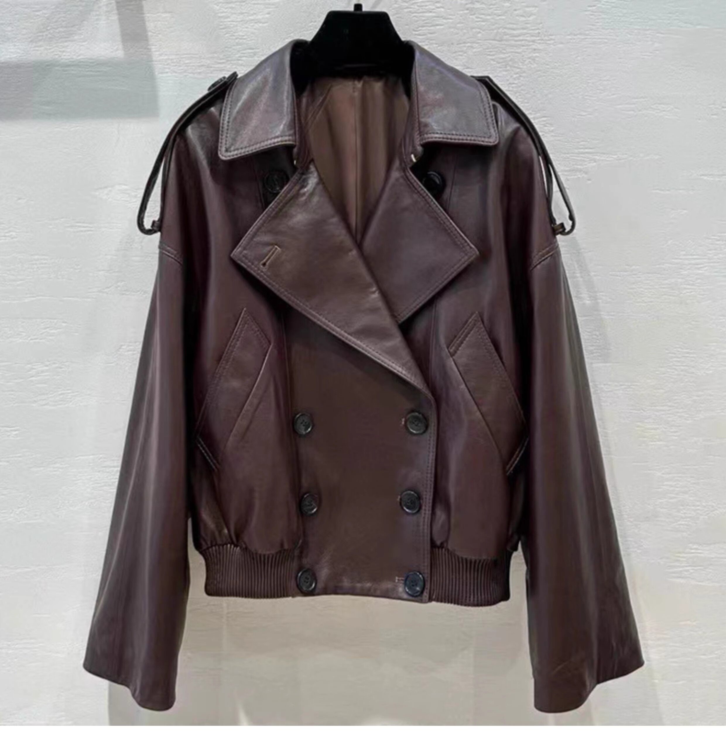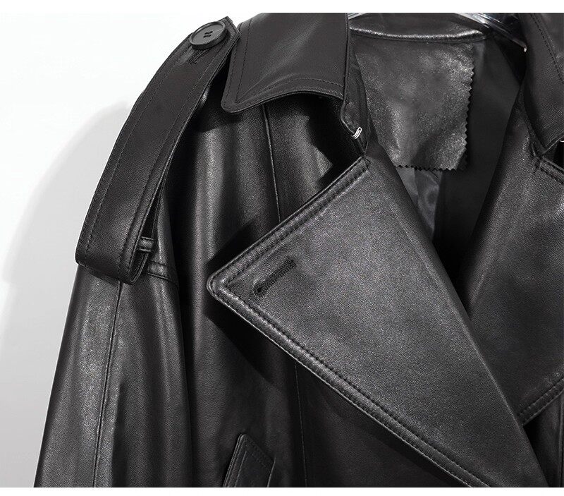 Yang Mi's Same Style Genuine Leather Jacket for Women 2025 New Loose Retro Biker Sheepskin Jacket Short Trench Coat